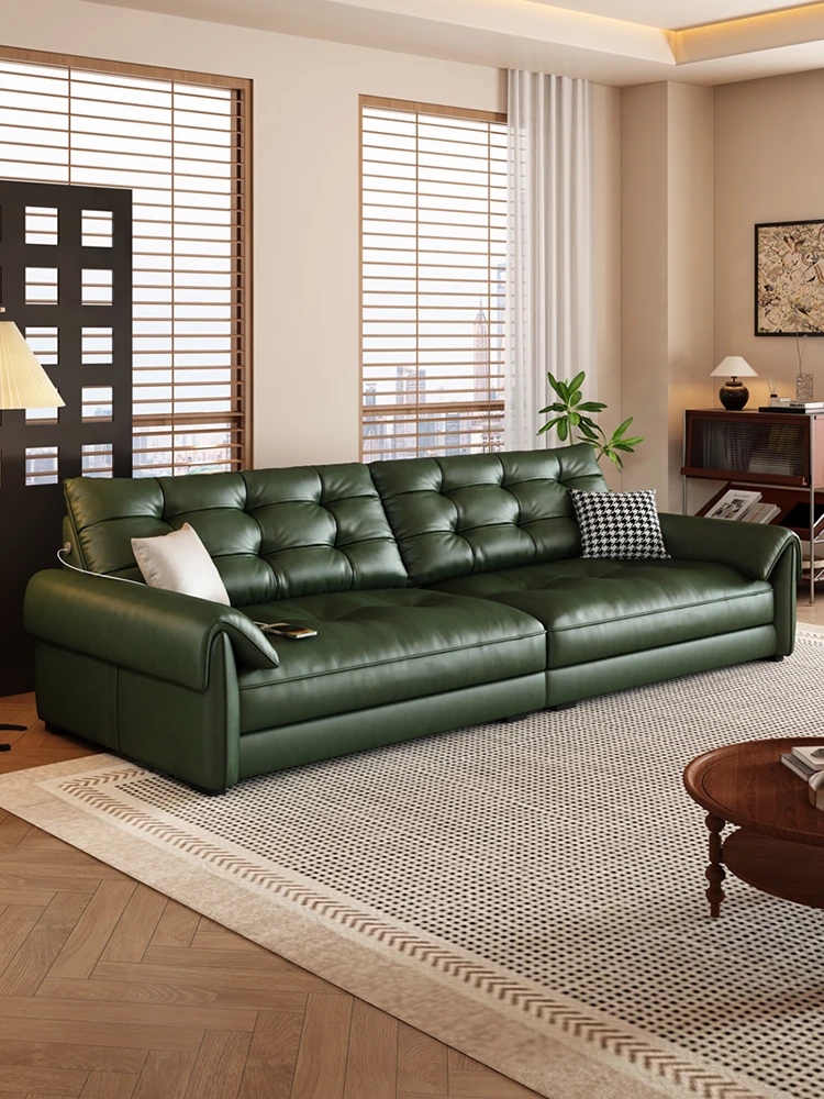 2025 New Vintage Style American Luxury Genuine Leather Sofa for Small Living Rooms - Dark Green Modular Design for Chic Comfort