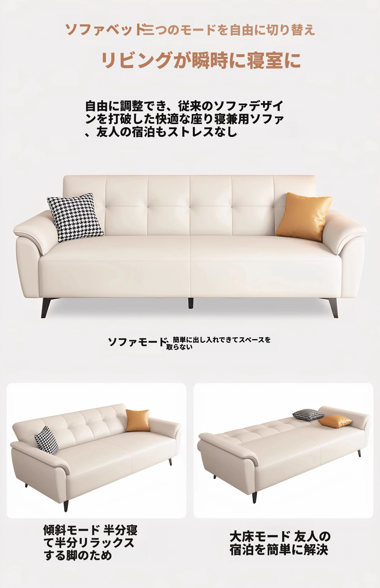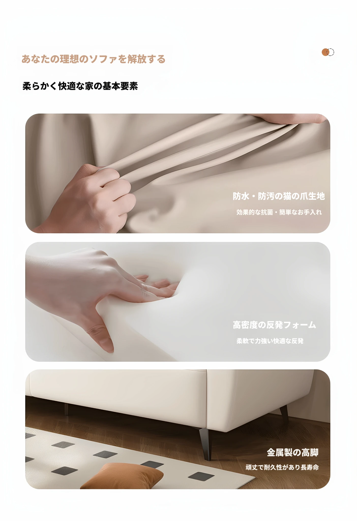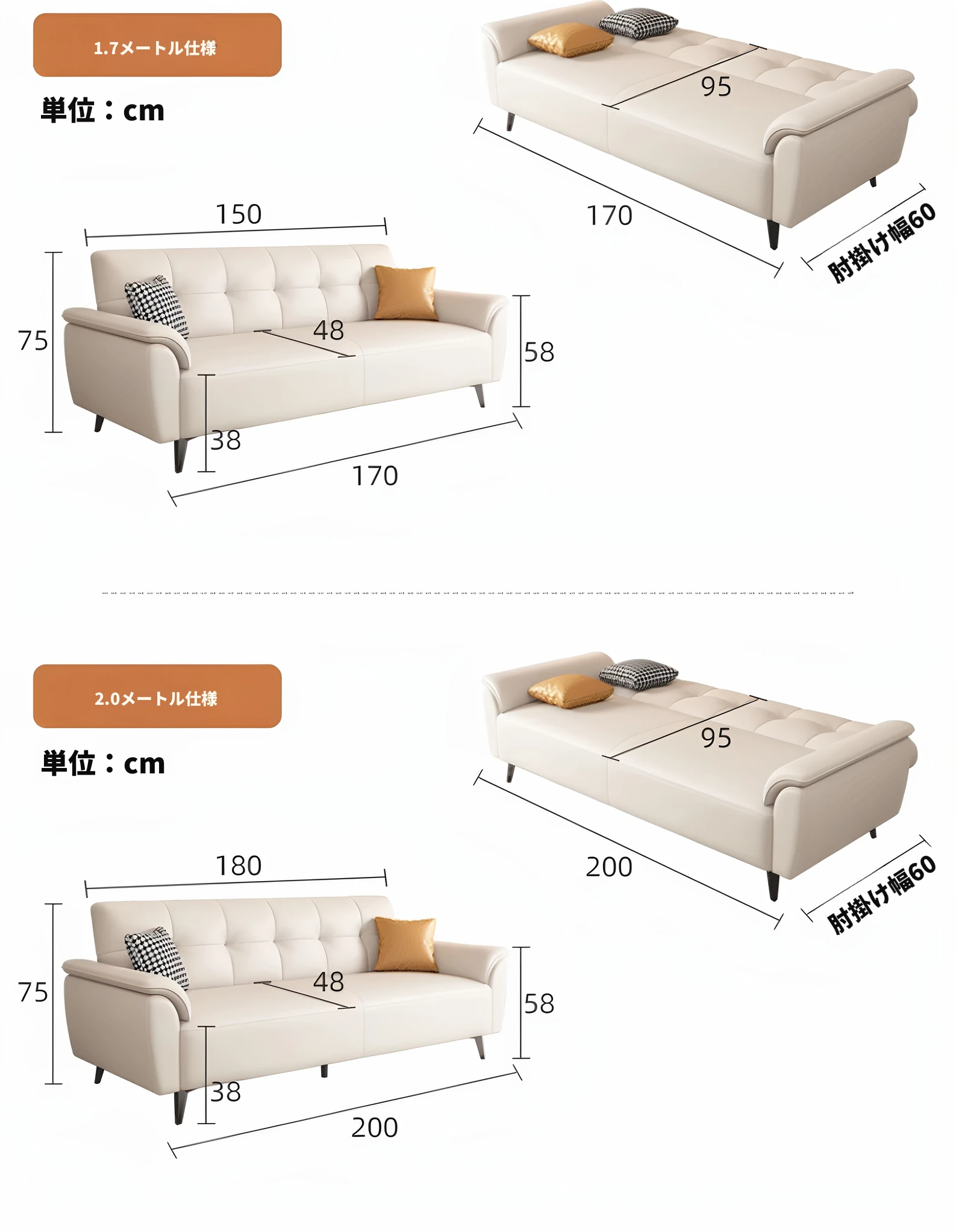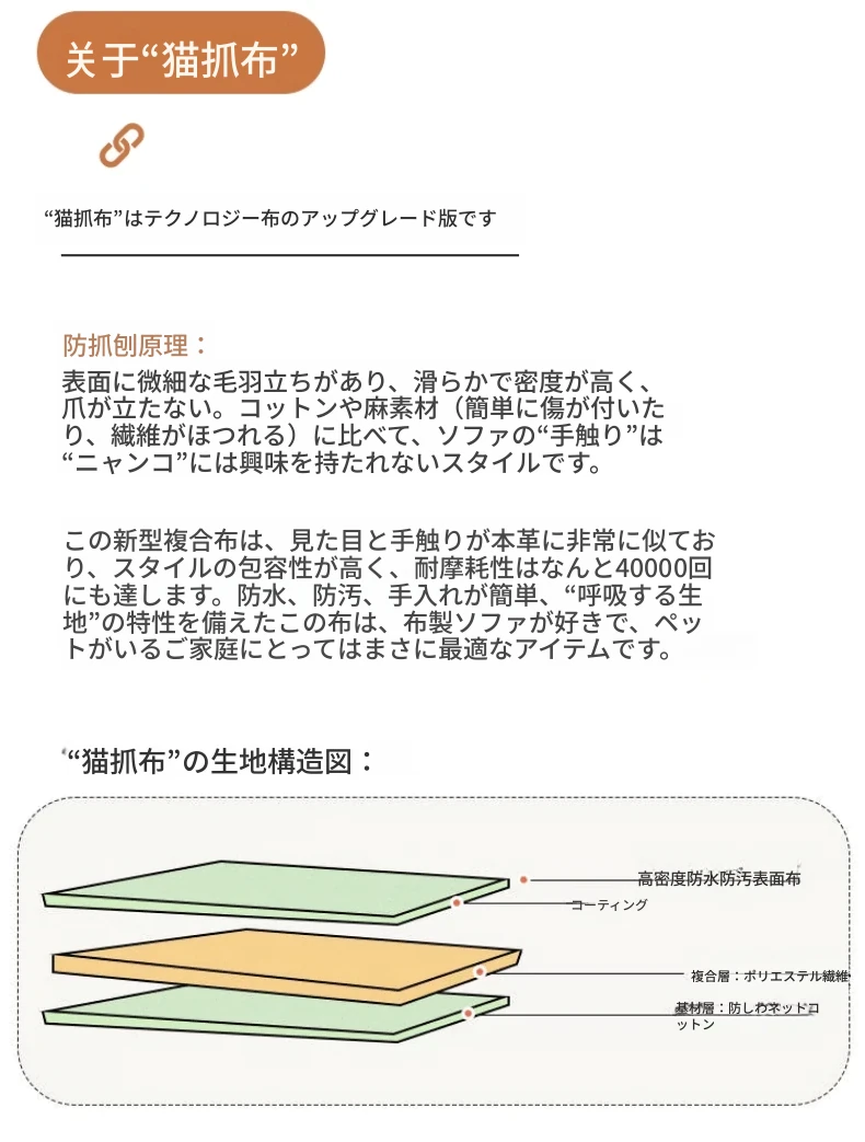三人用 1.7メートル アイボリー【三防キャットクロー皮】スポンジタイプ