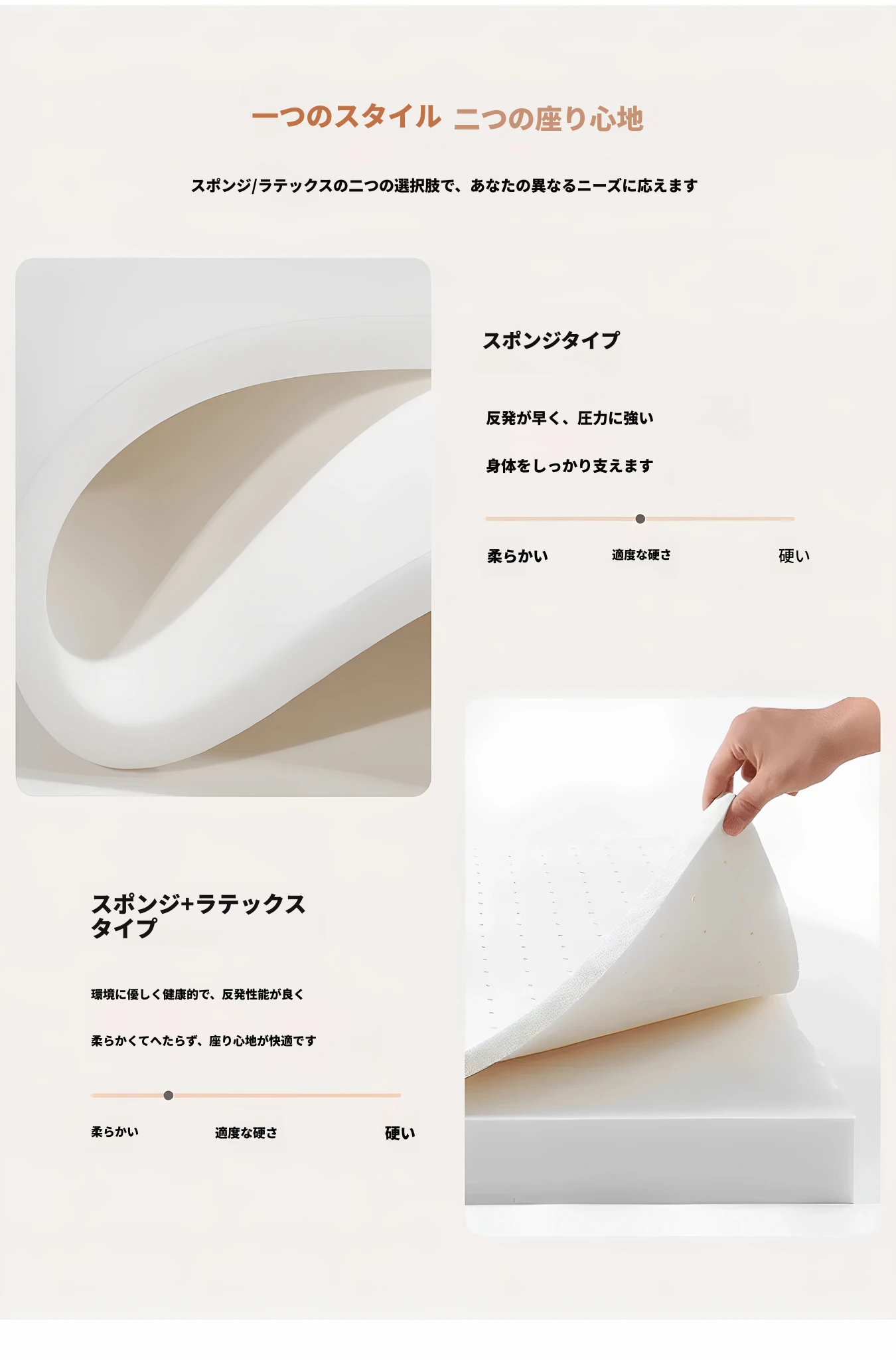 三人用 1.7メートル アイボリー【三防キャットクロー皮】洗えるラテックスタイプ