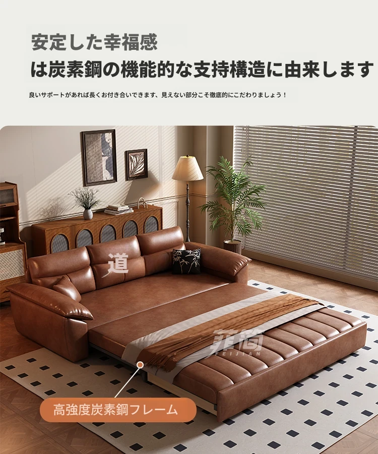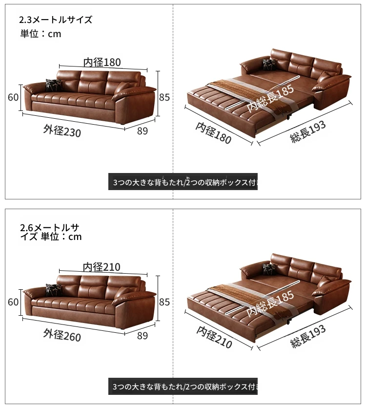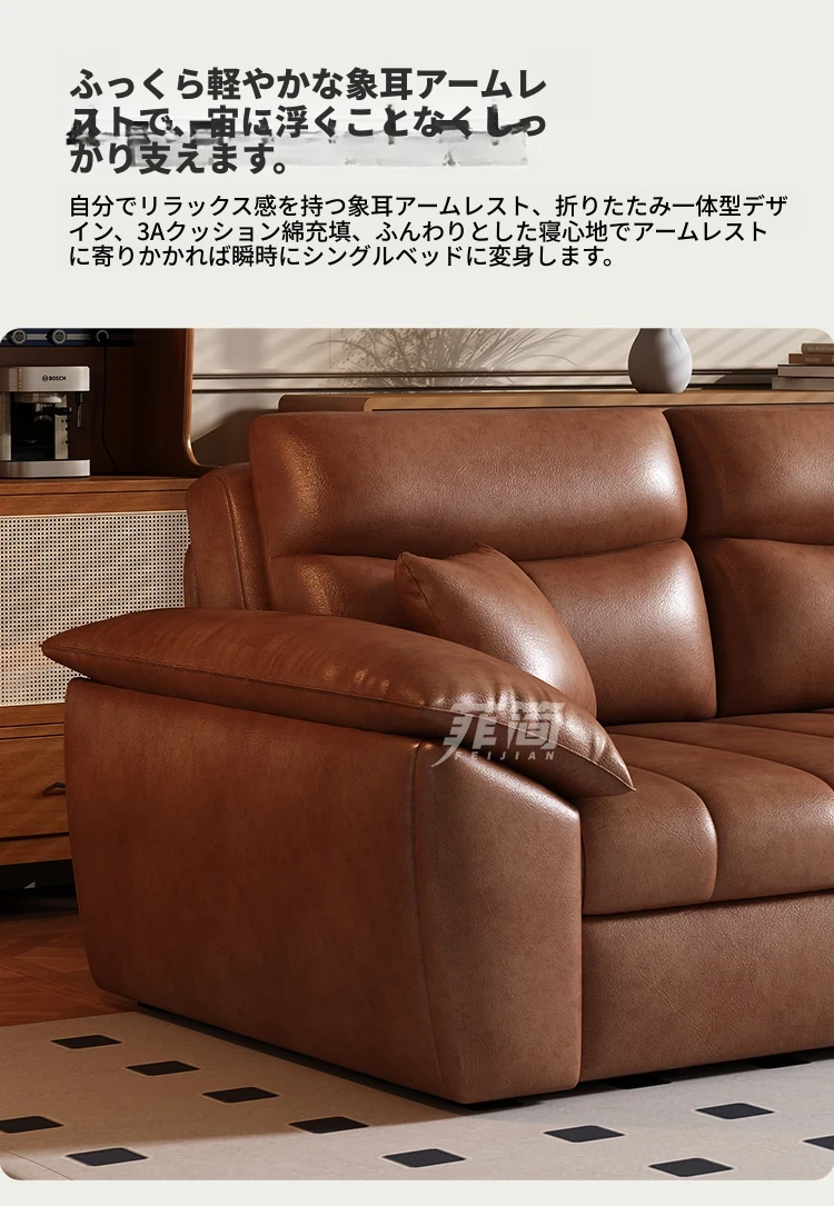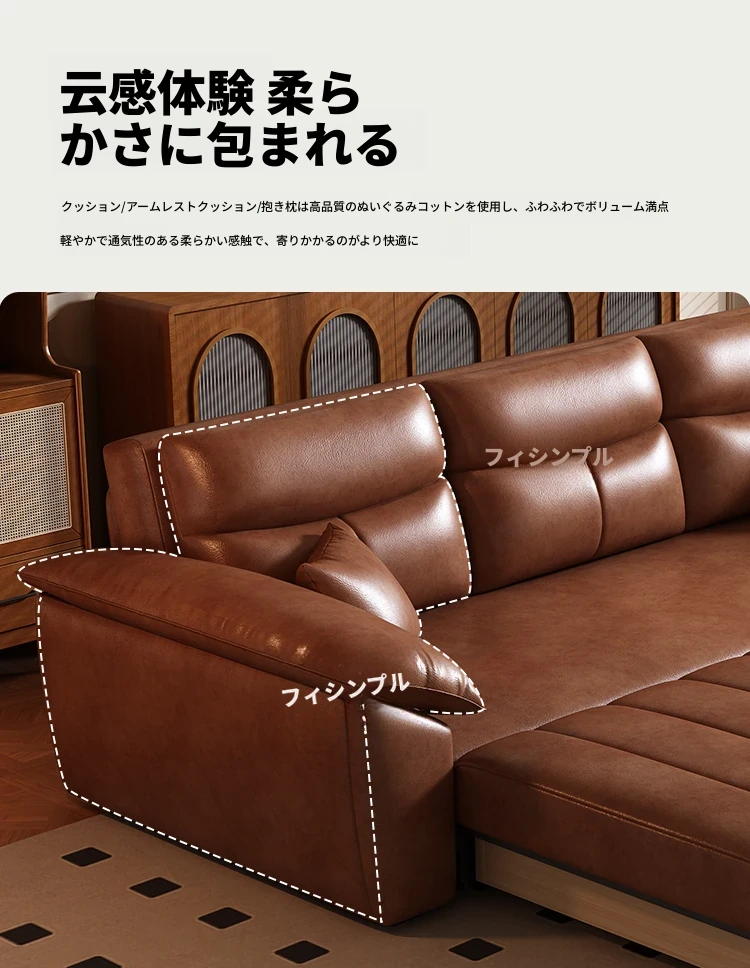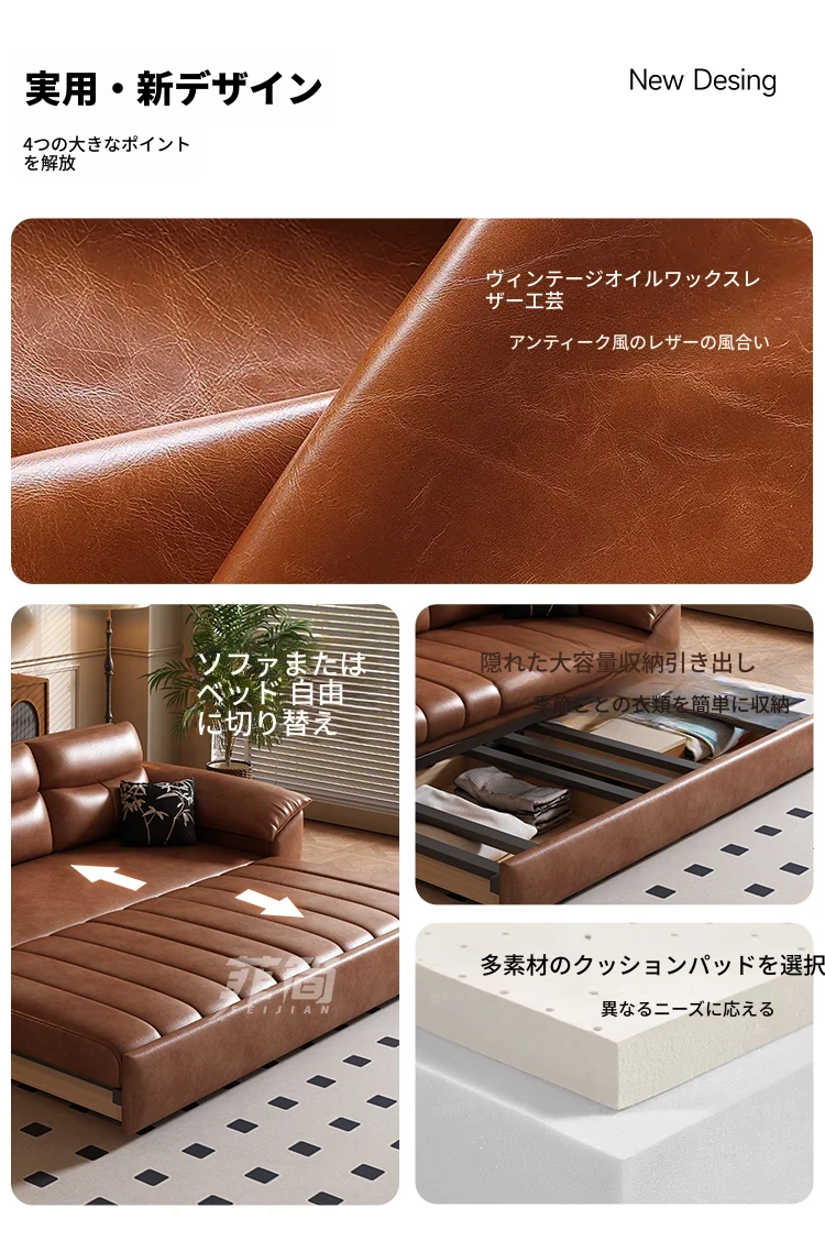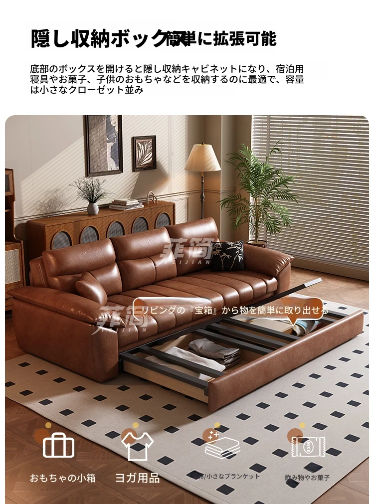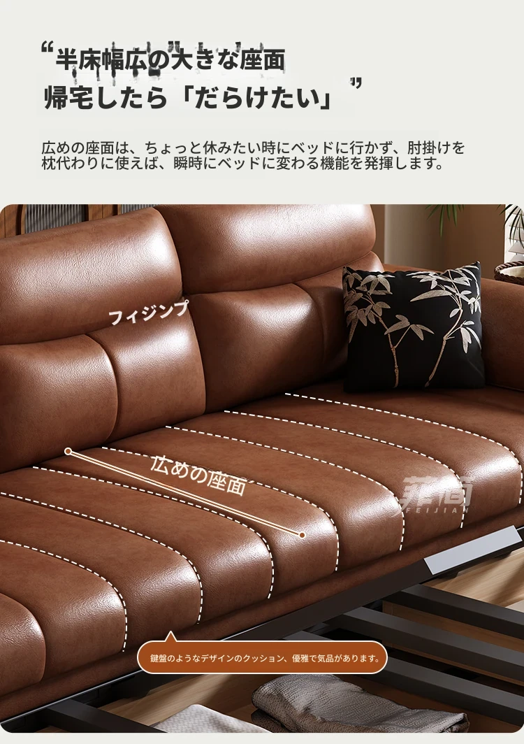 2025年新作!高級リアルレザー使用の木製引き出し式ソファベッド - 折りたたみ2WAYデザインで、リビングにぴったりなスタイリッシュな一体型ソファベッド!快適な寝心地と洗練されたデザインを両立。