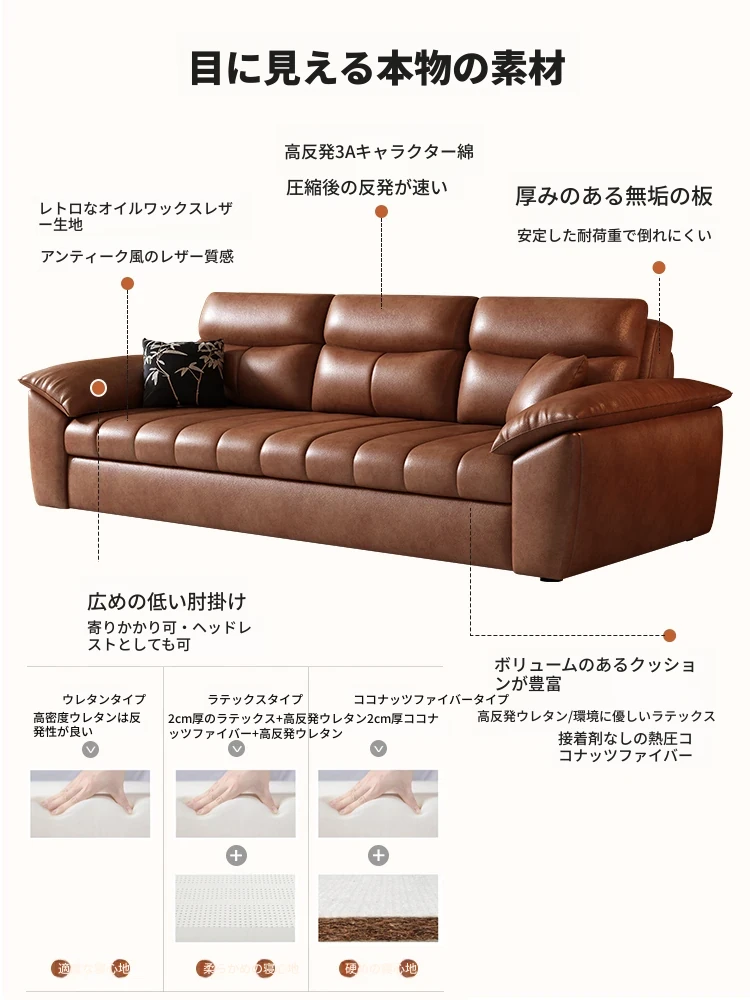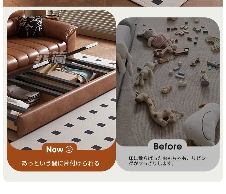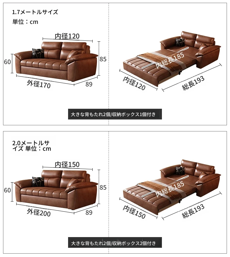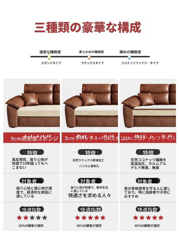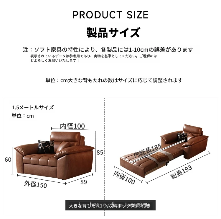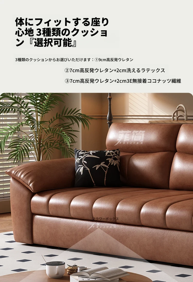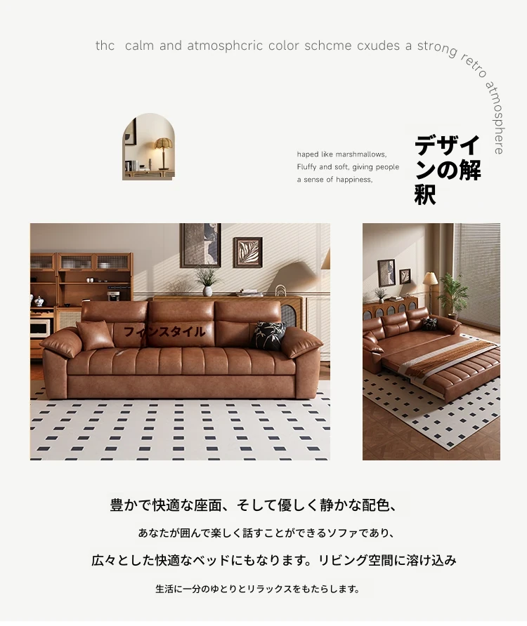 2025年新作!高級リアルレザー使用の木製引き出し式ソファベッド - 折りたたみ2WAYデザインで、リビングにぴったりなスタイリッシュな一体型ソファベッド!快適な寝心地と洗練されたデザインを両立。