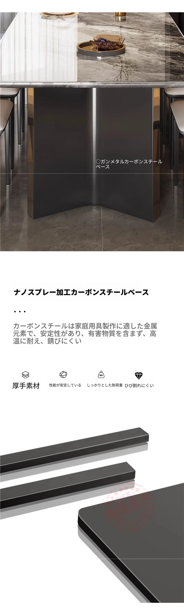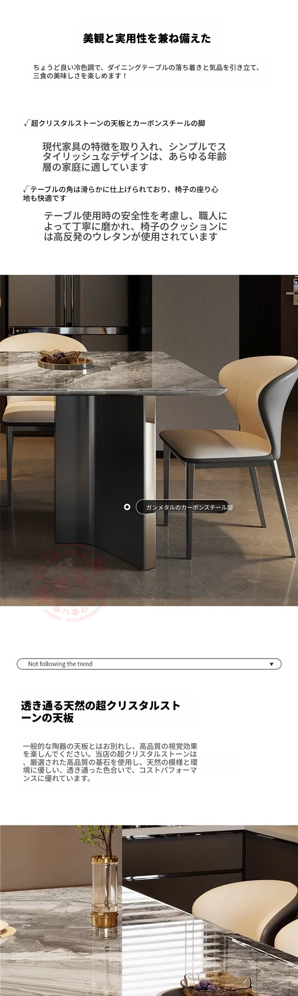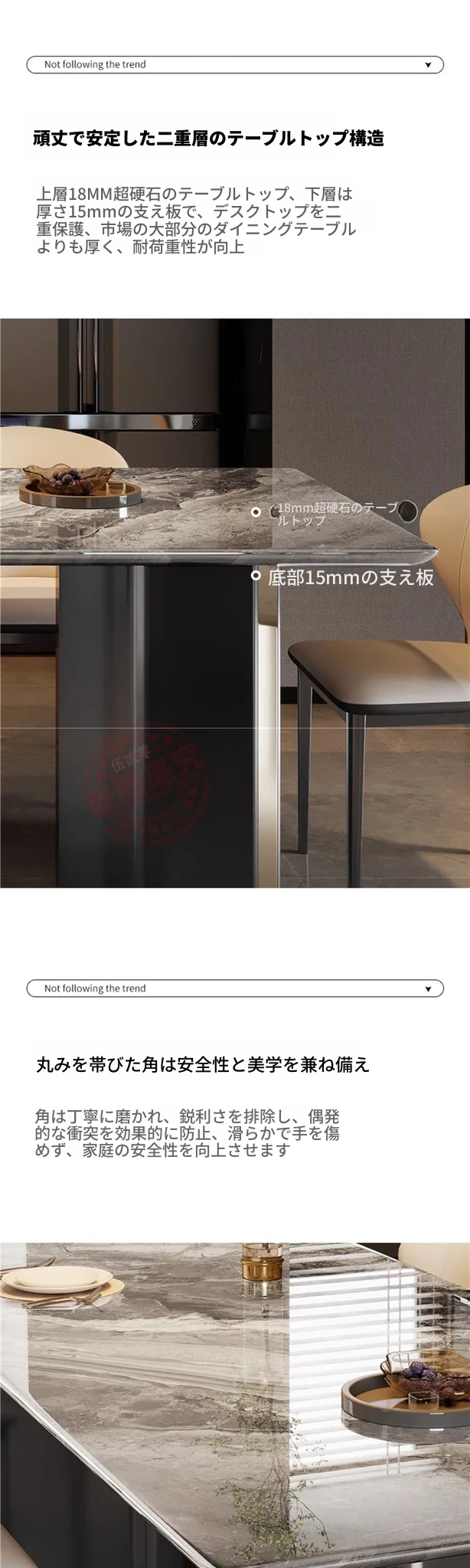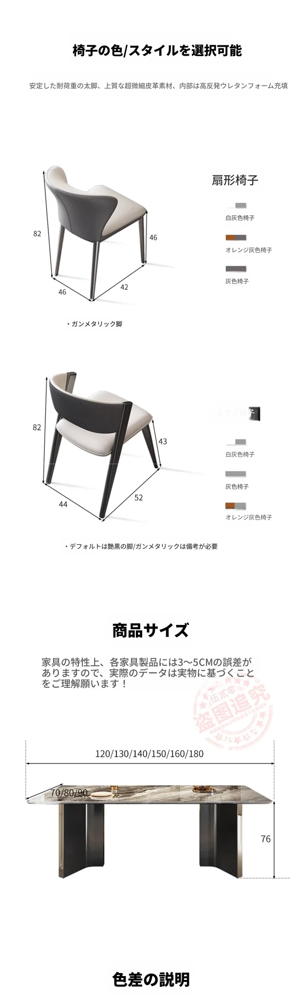 【18mm超晶石】C71#長方形テーブル+6脚キャットスクラッチ皮製ファンシェア 【直角丸み】