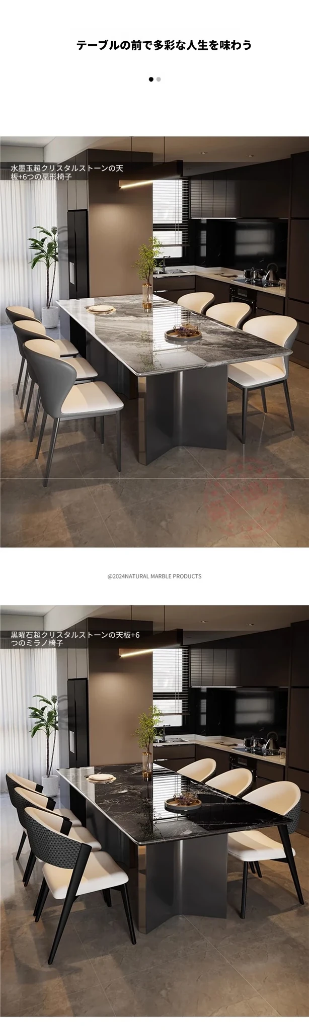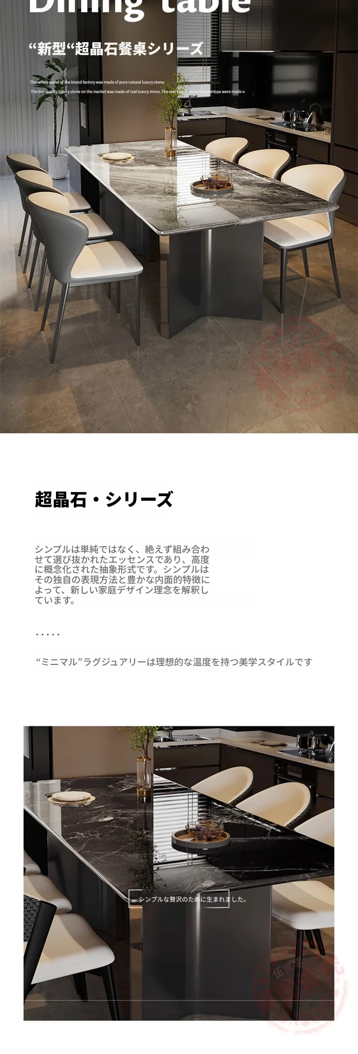 高級ミクロクリスタル石製モダンシンプル長方形ダイニングテーブル - ラグジュアリーな家用超クリスタルストーン、贅沢な石板で作られた食卓。食事のひとときを特別なものに!