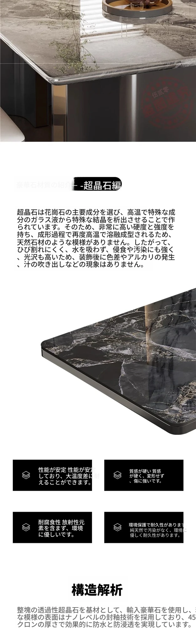【18mm超晶石】C71#長方形テーブル 【直角丸み】
