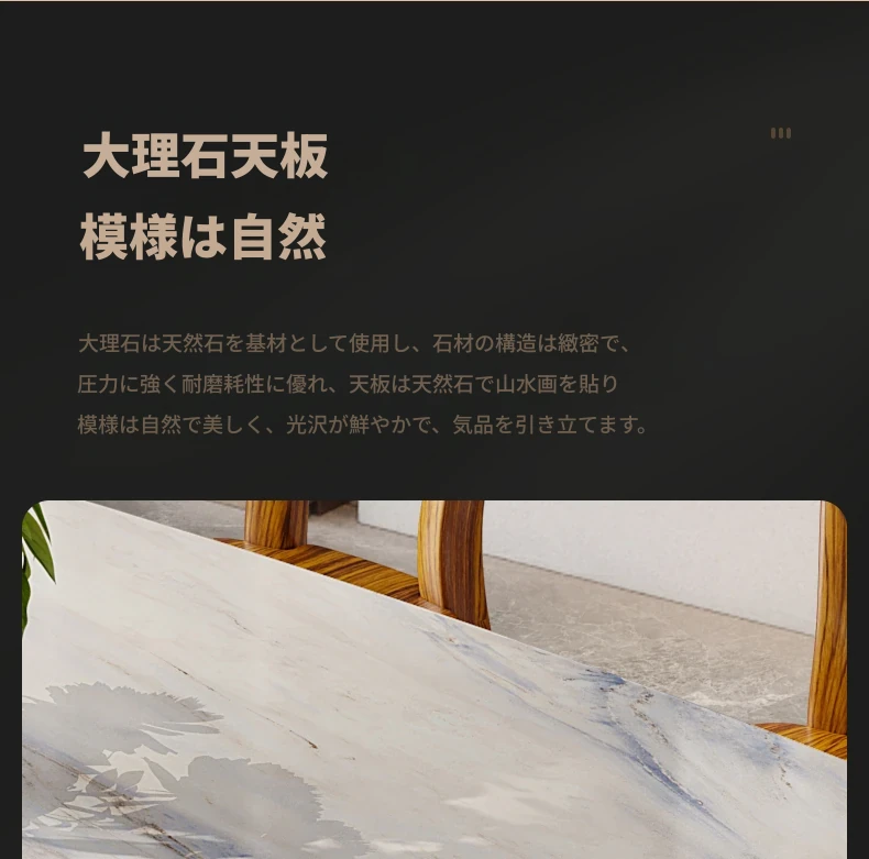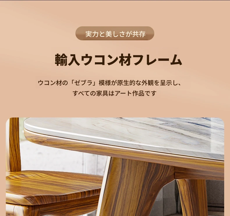 1.5メートル単体テーブル+6椅子【ウッキン木大理石ダイニングテーブル】