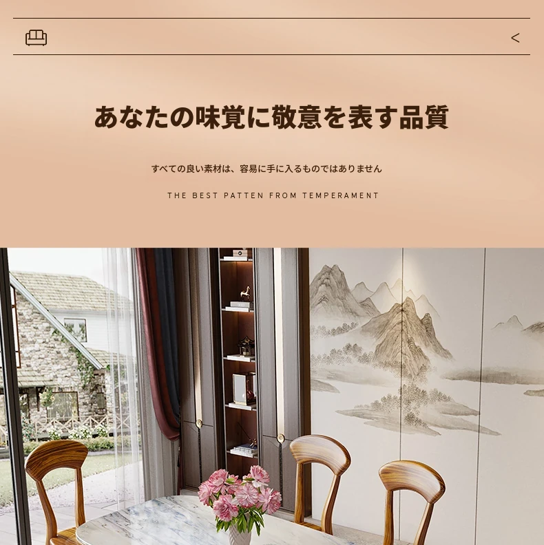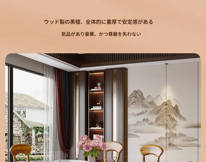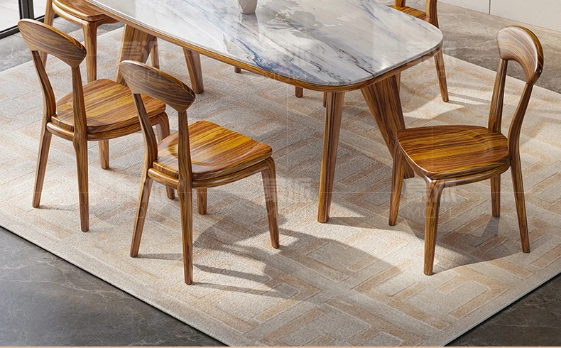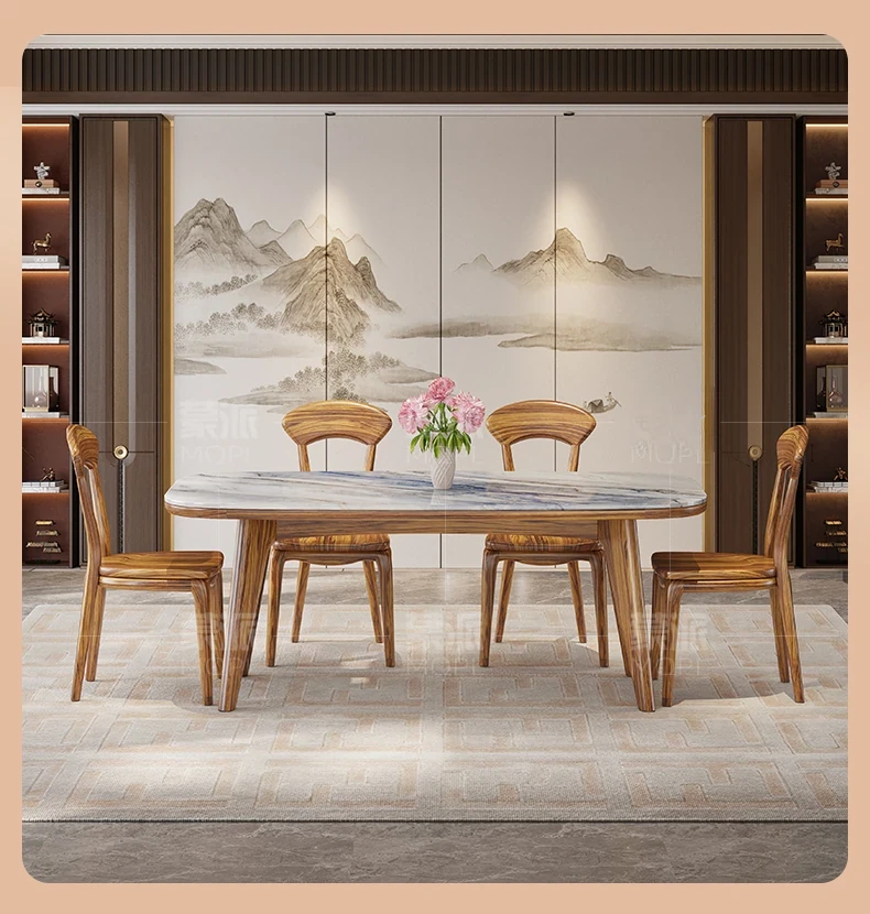 ウコン木の無垢材を使用した新中式大理石長方形ダイニングテーブル – 家庭用のスタイリッシュな食卓セット。優雅なデザインで、温かみのある雰囲気を演出し、食事の時間を特別なものにします。