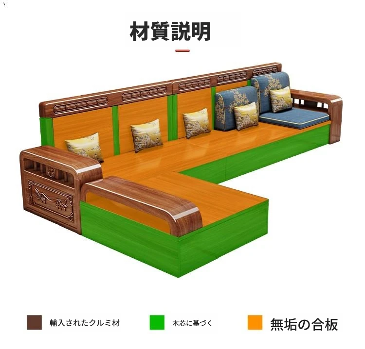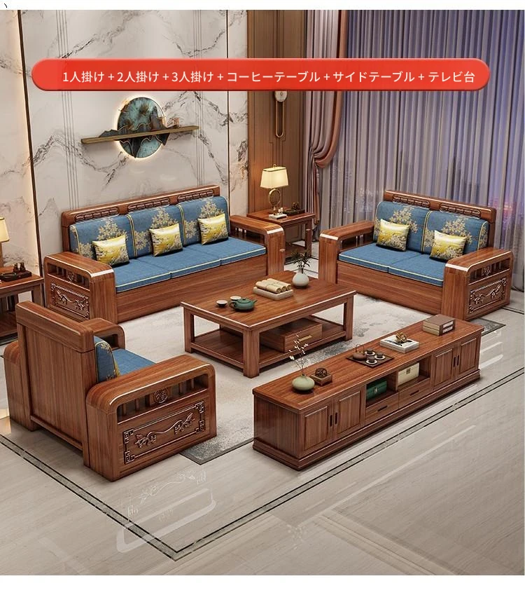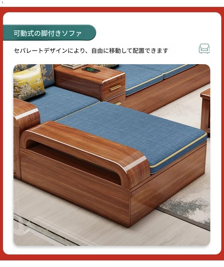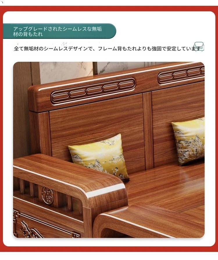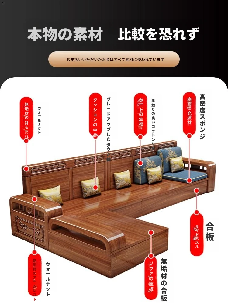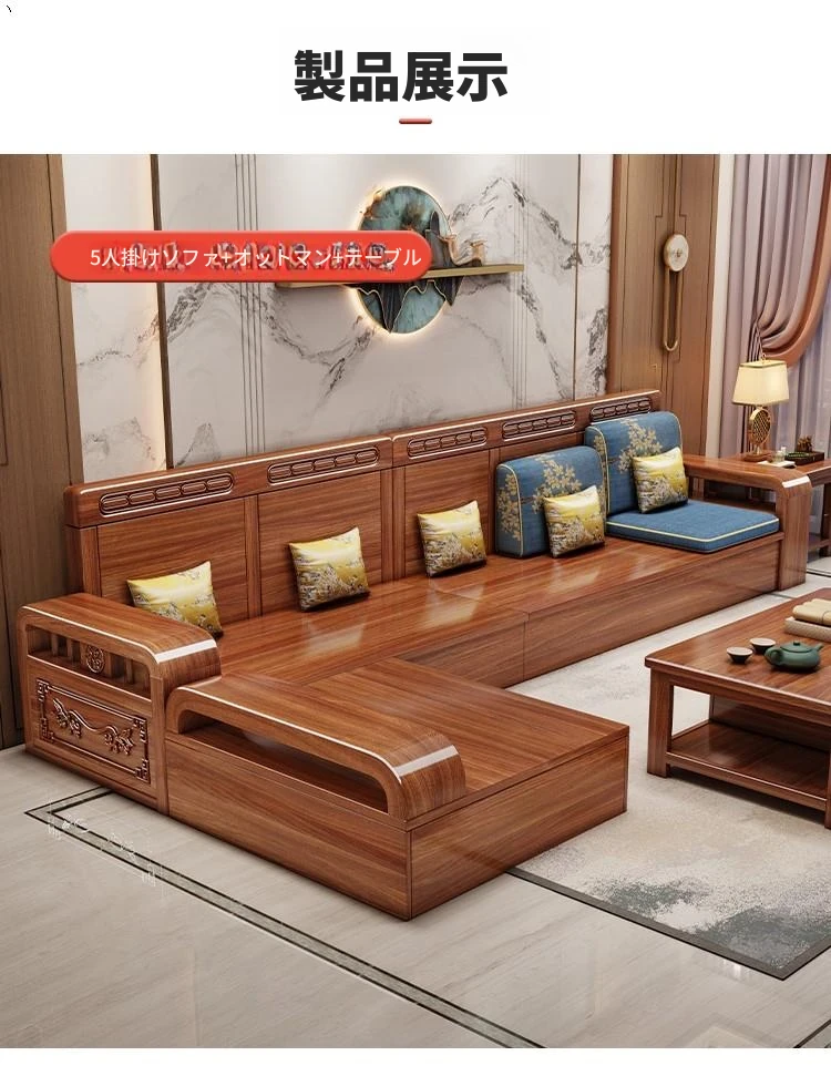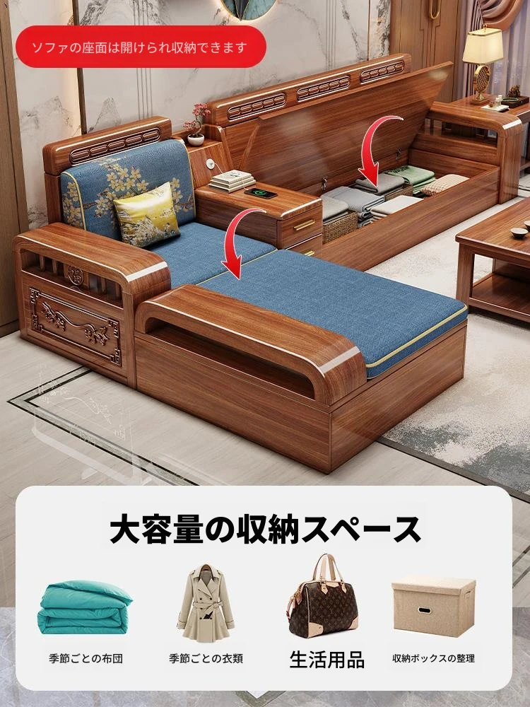 新中式胡桃木製ソファセット - 家庭用・リビングに最適!コンパクトな中小型住宅向け、冬夏両用の収納付きソファで、スタイリッシュな空間を演出します。
