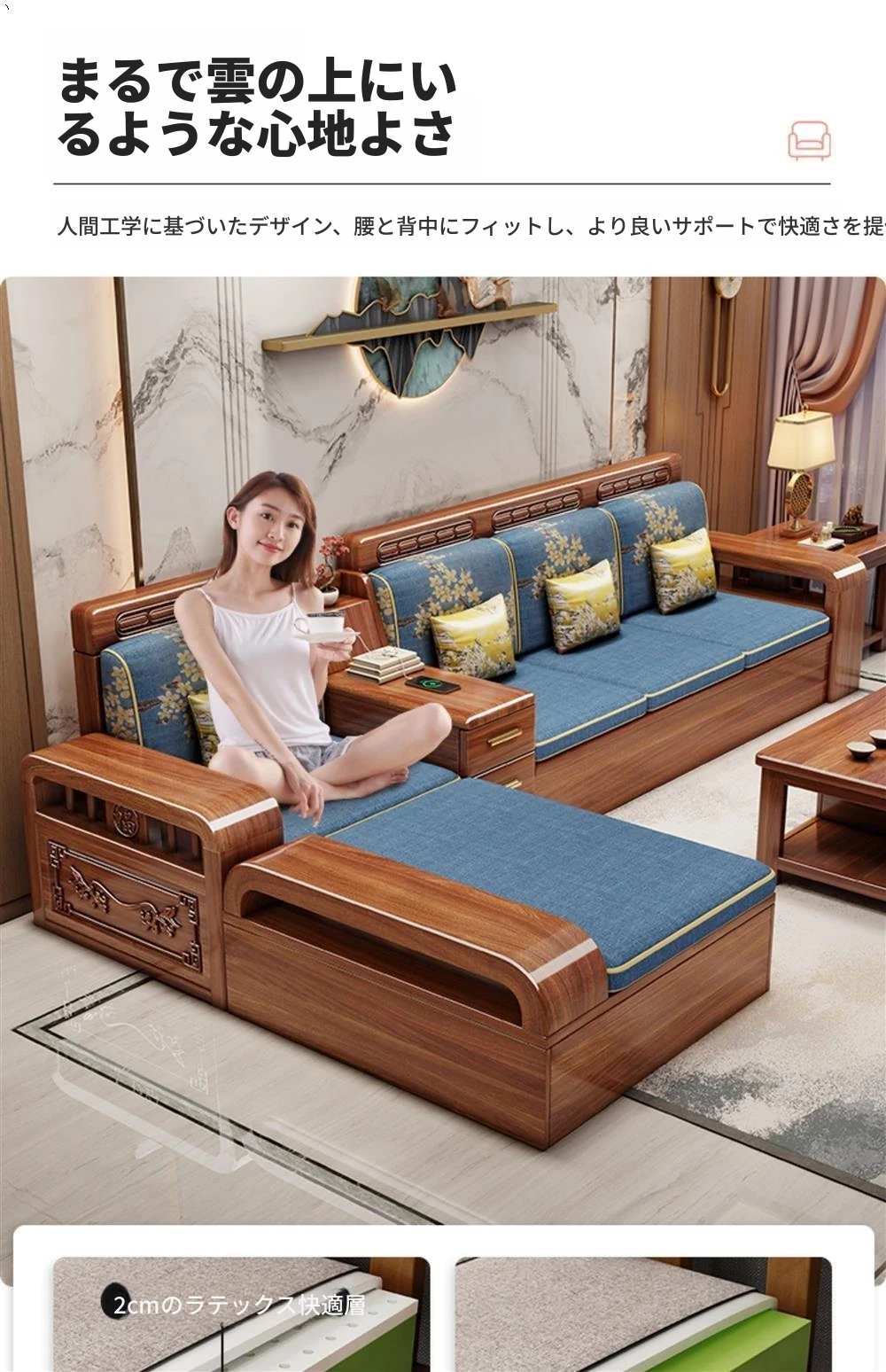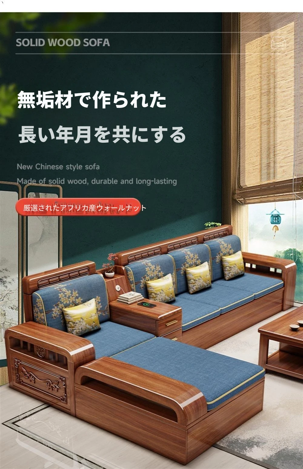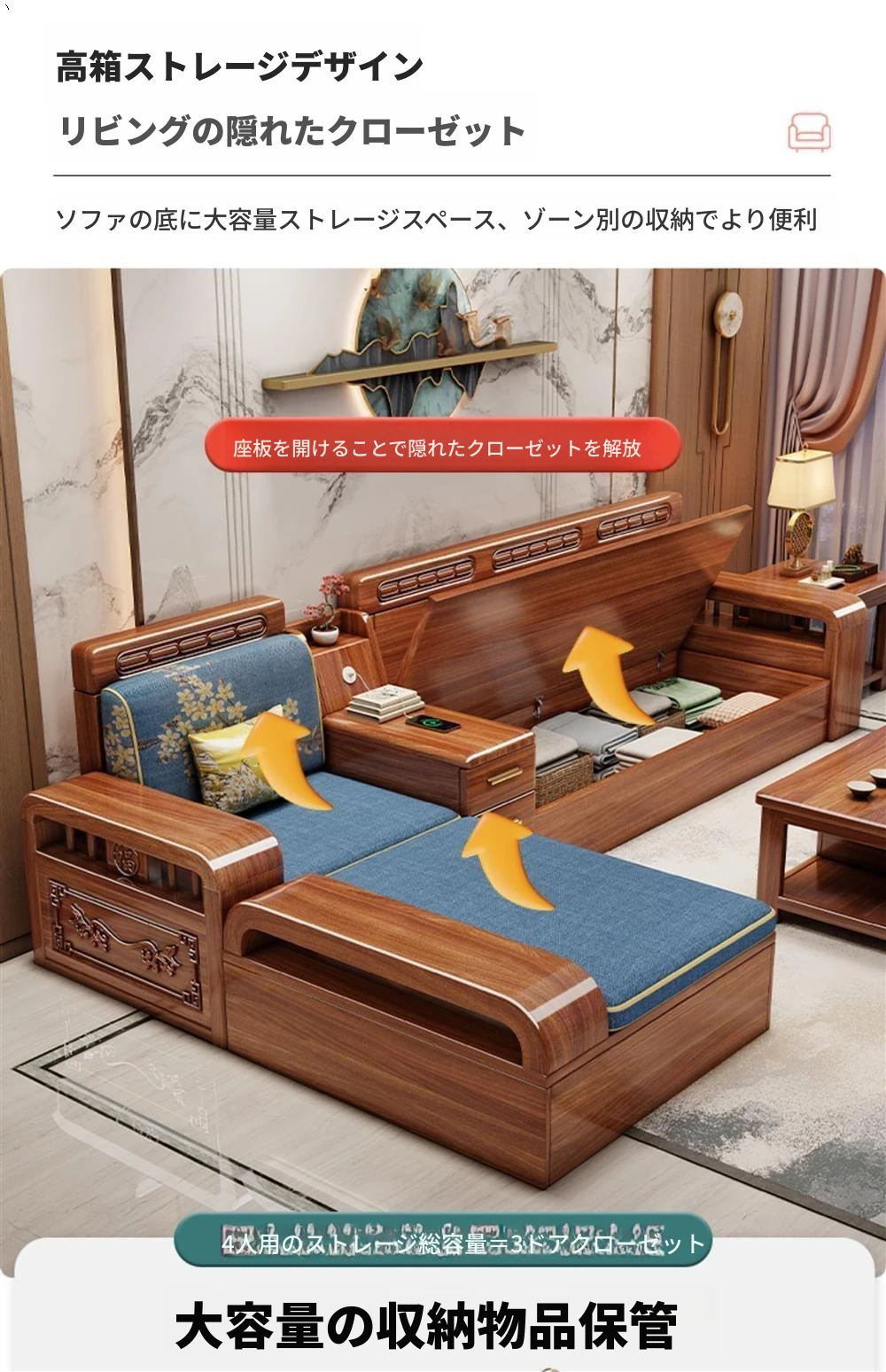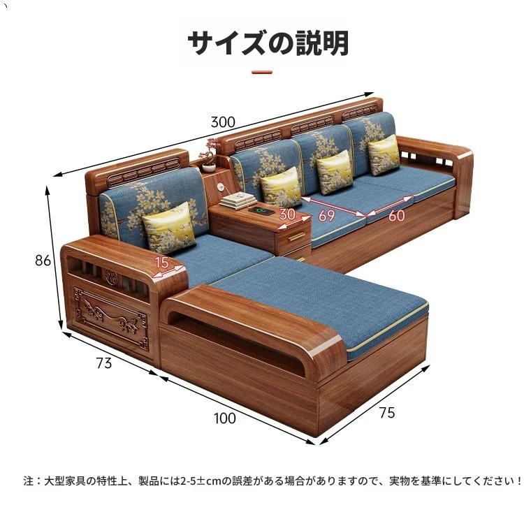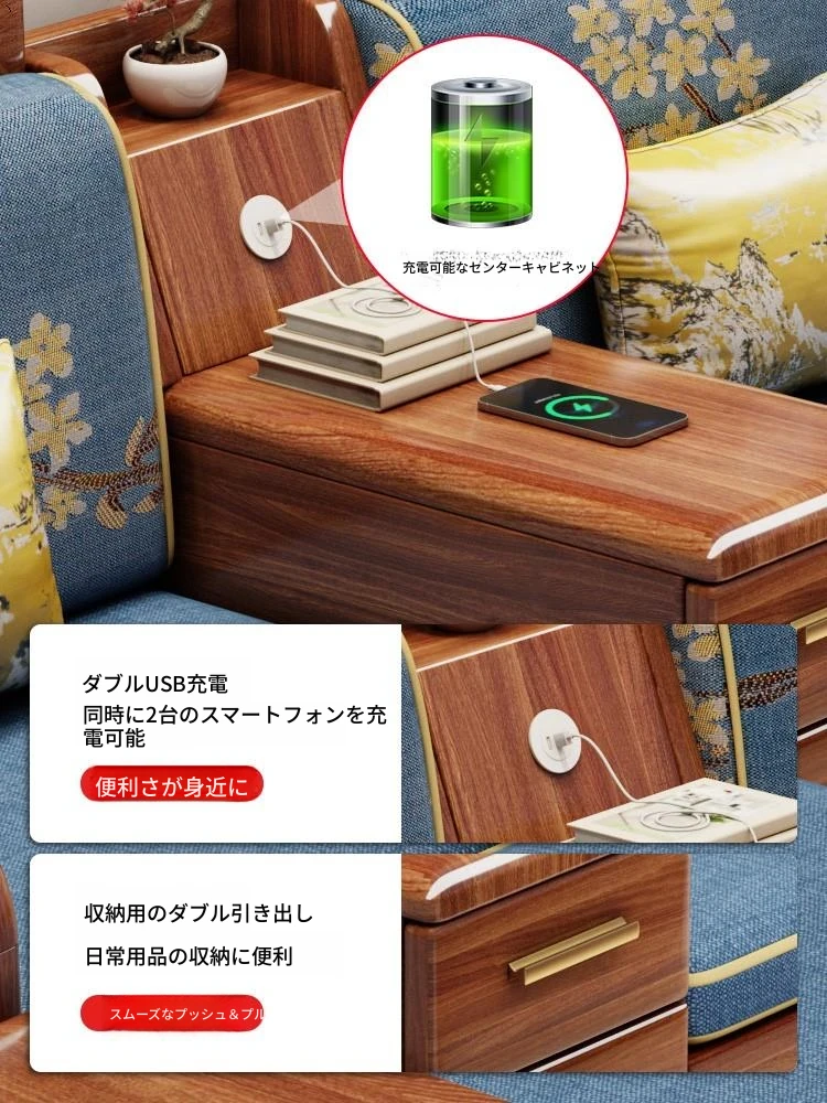 新中式胡桃木製ソファセット - 家庭用・リビングに最適!コンパクトな中小型住宅向け、冬夏両用の収納付きソファで、スタイリッシュな空間を演出します。