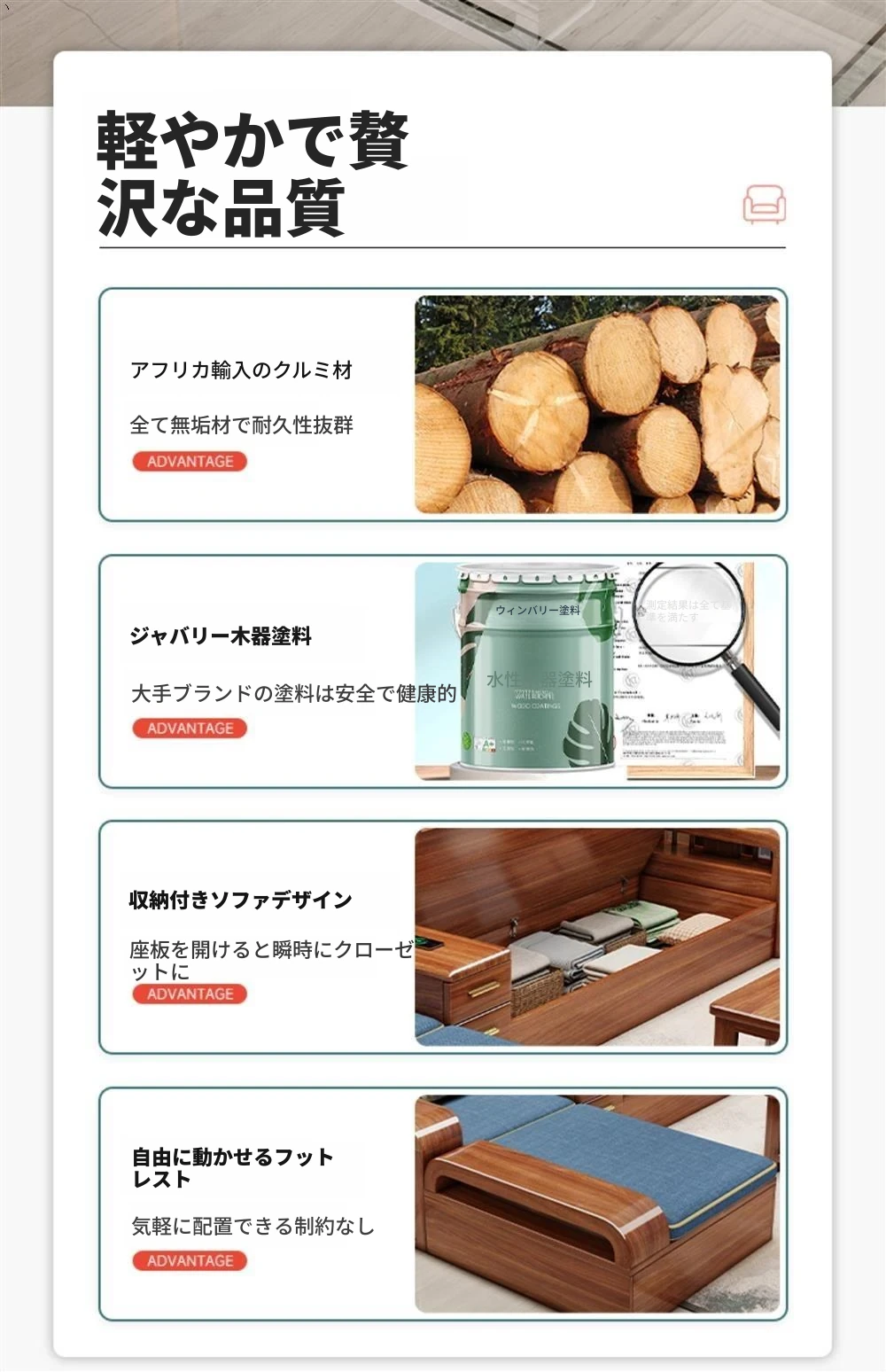 【赤字セール】4人掛け+貴妃ソファ+コーヒーテーブル(ラテックスバージョンアップグレード)
