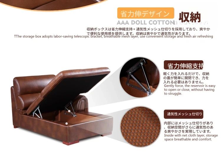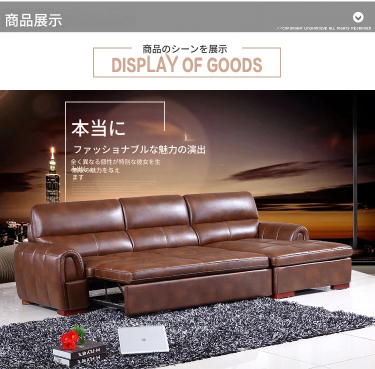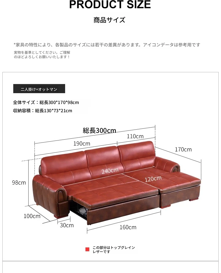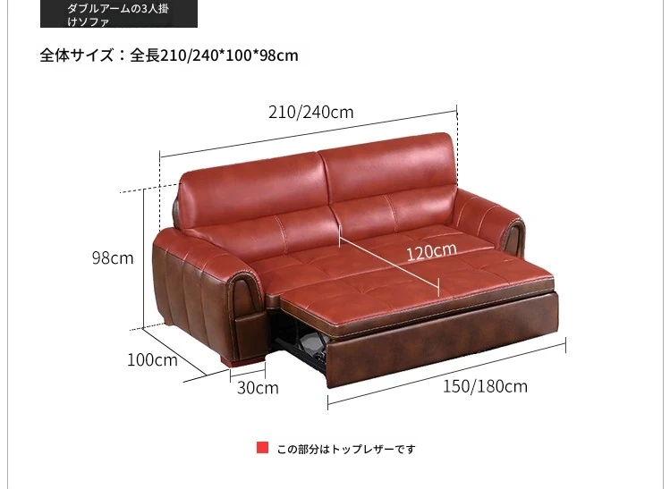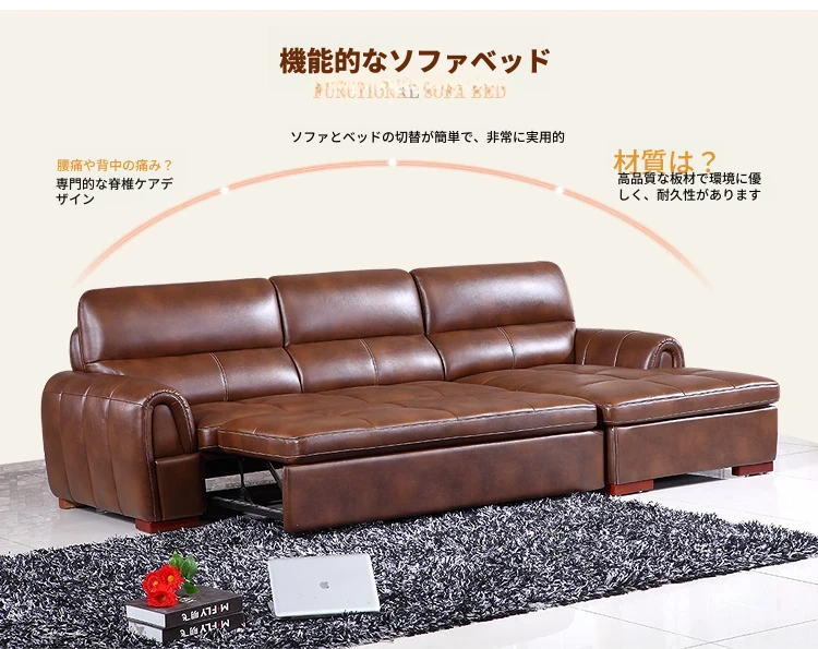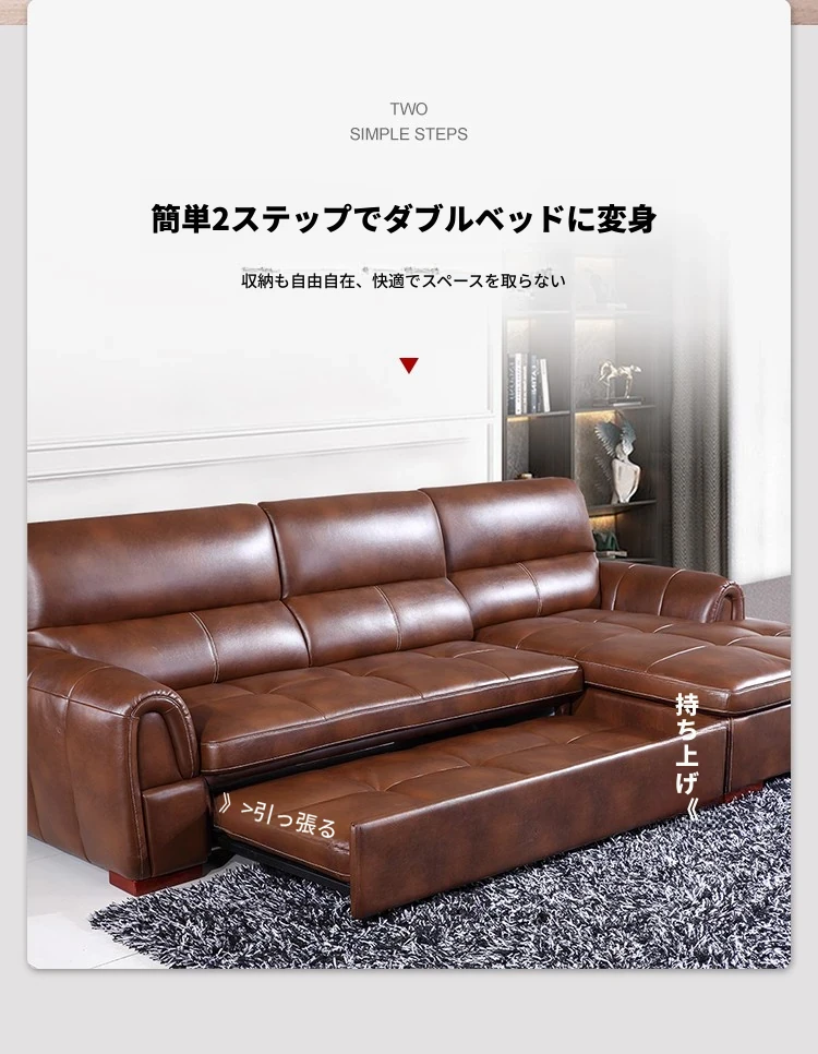 本革ソファベッド 折りたたみ式 リビング・アパート用 二人用 多機能 三人掛け 小型住宅に最適 フェイスタイプコーナー レザー仕上げ