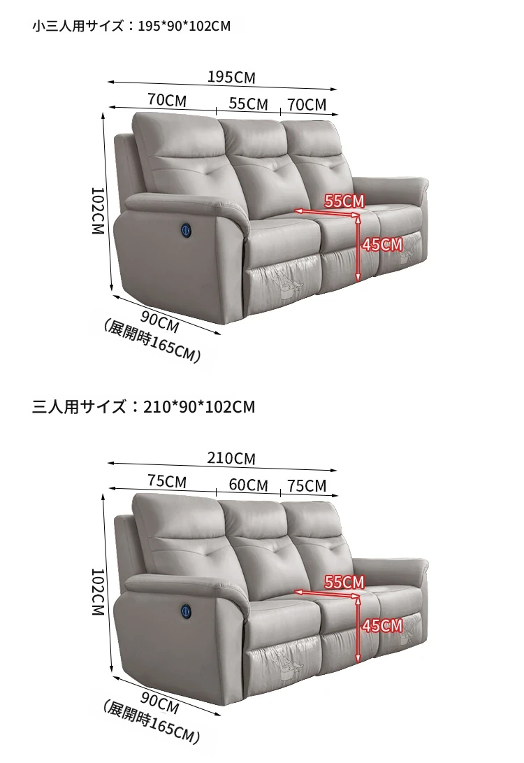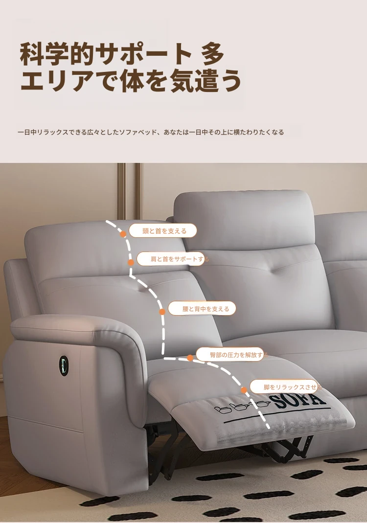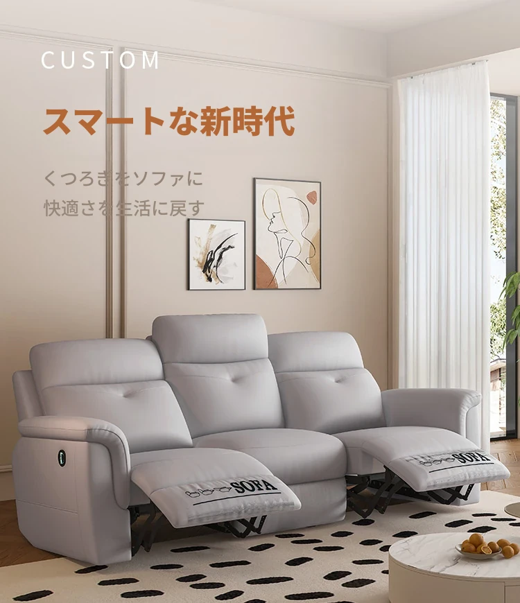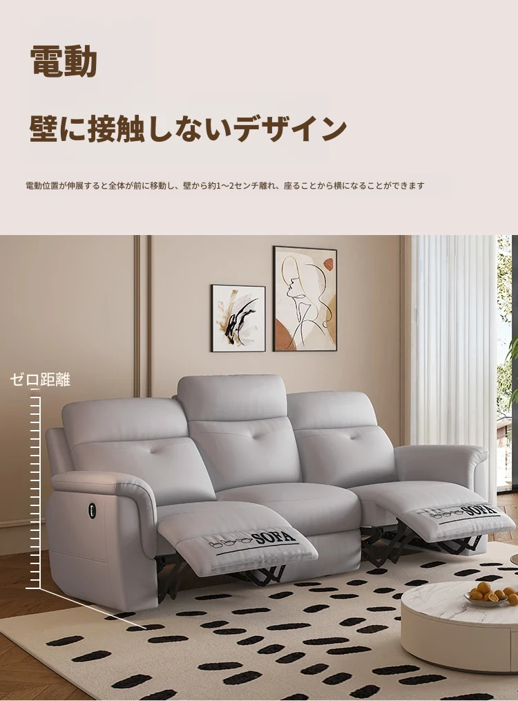 [香港送料無料] コンパクトな空間に最適!本革電動3人掛けソファ 多機能リクライニングシートで快適なリビングを実現!