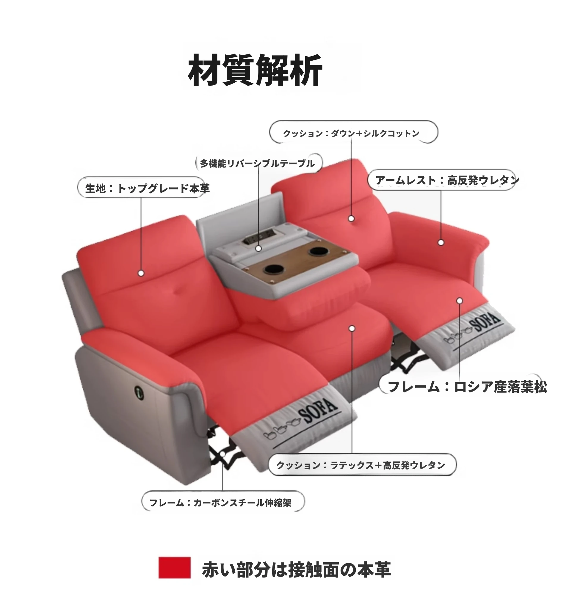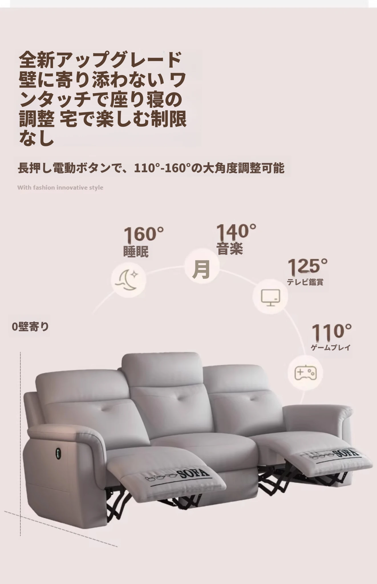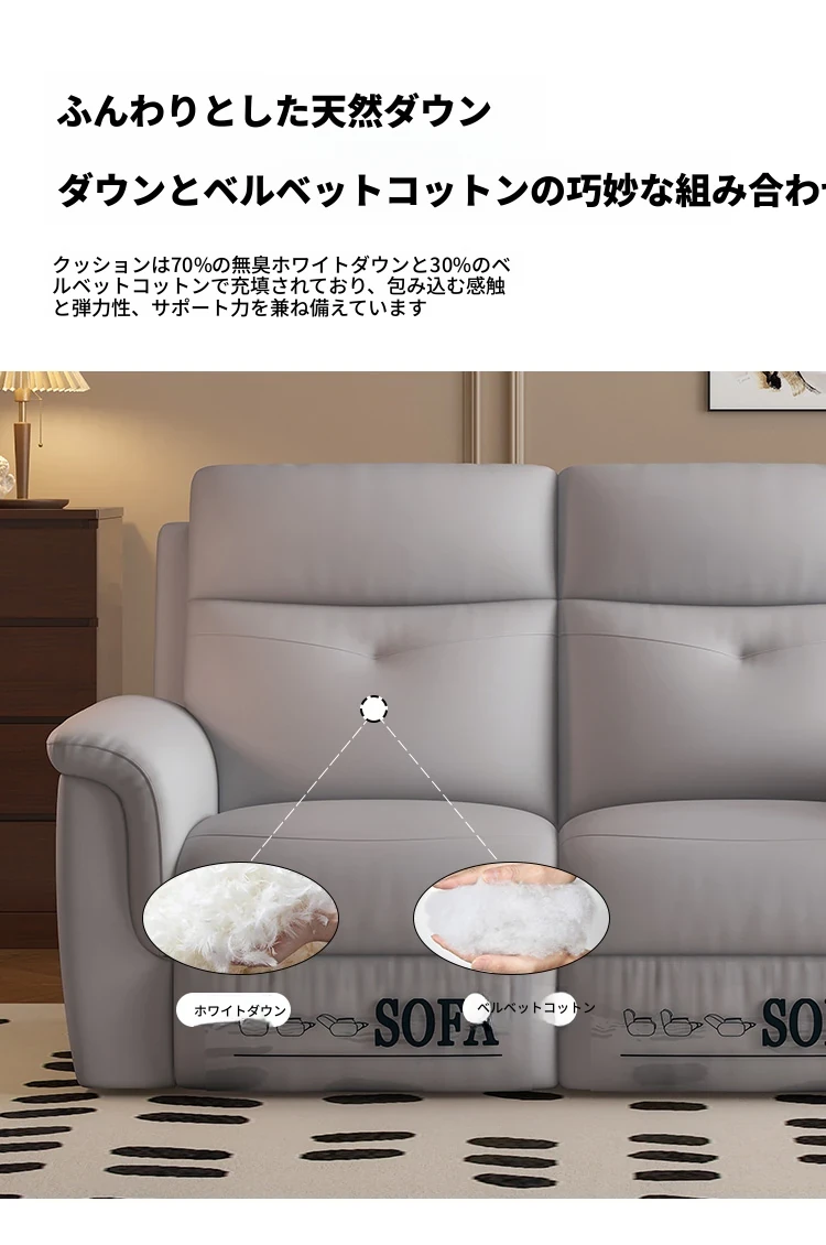 [香港送料無料] コンパクトな空間に最適!本革電動3人掛けソファ 多機能リクライニングシートで快適なリビングを実現!