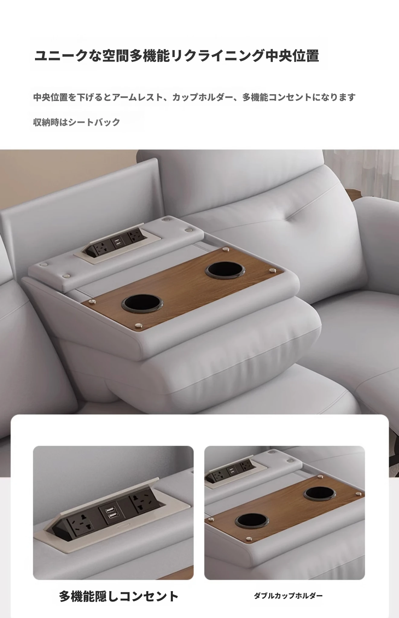 195cm【三人】両側電動USB+リクライニングテーブル【アップグレードラテックスモデル】 壁に接触しない