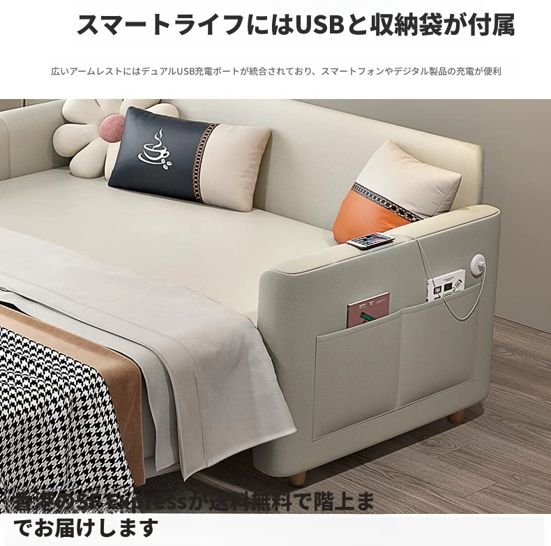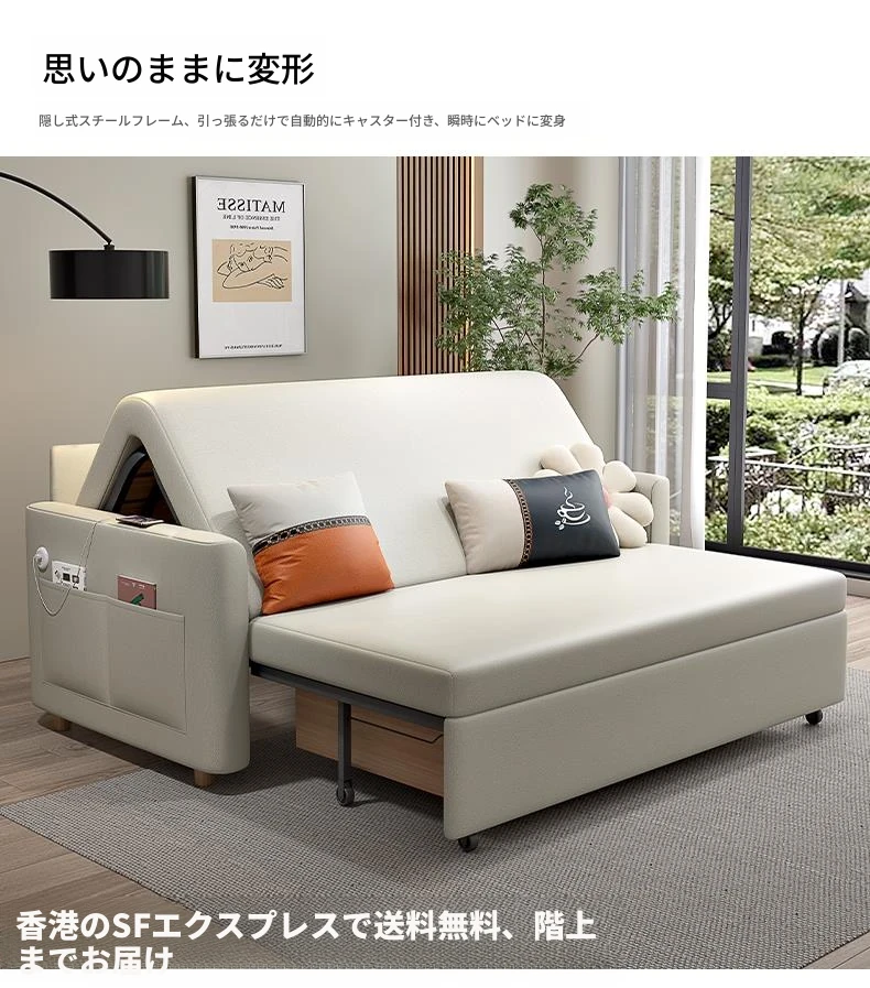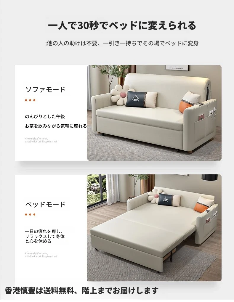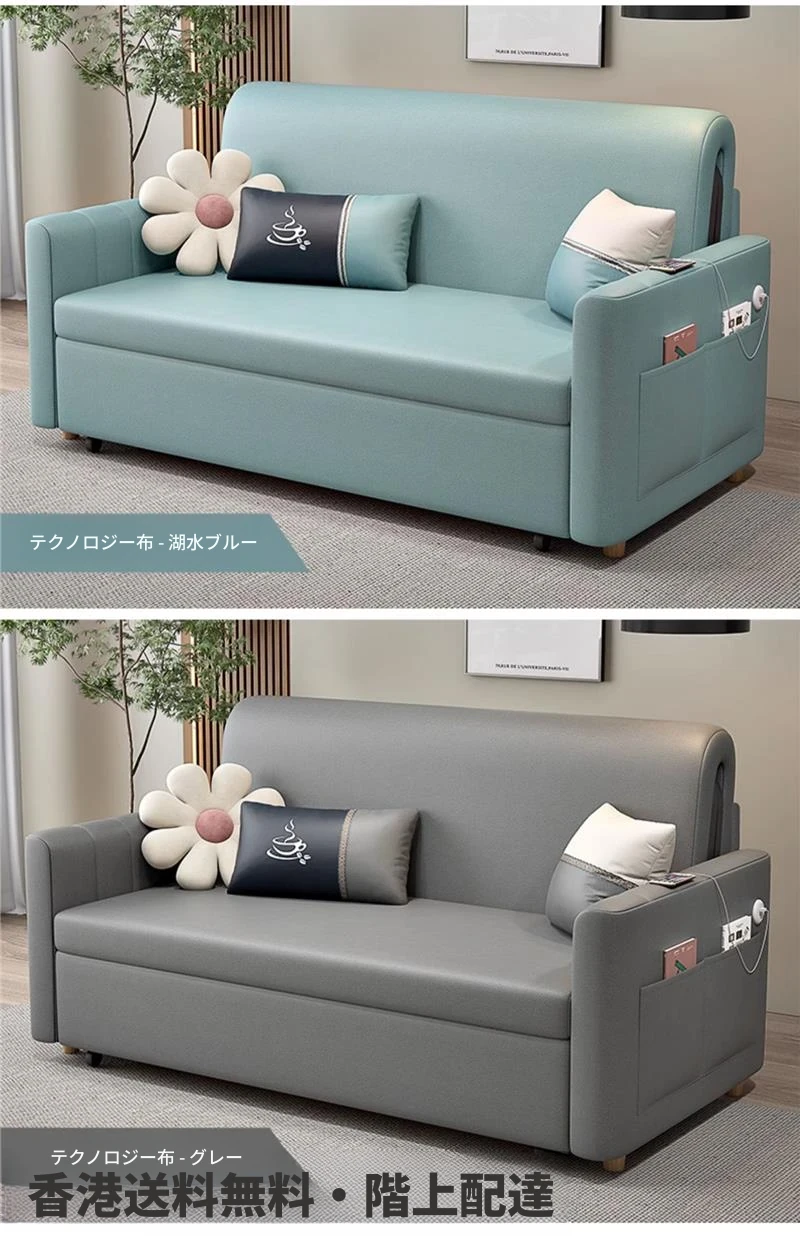 【香港送料無料】簡単折りたたみソファベッド!多機能USBポート付き、リビングやバルコニーに最適な省スペースデザイン!小さなお部屋にぴったりの便利アイテム!