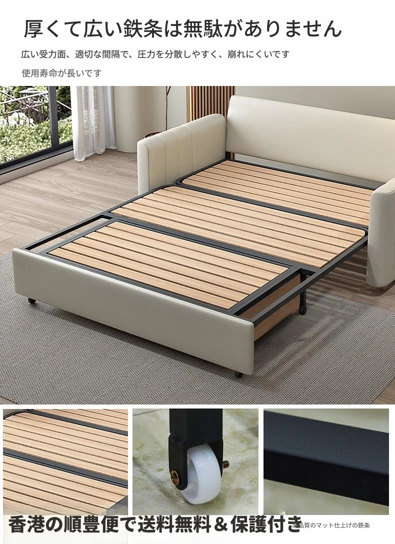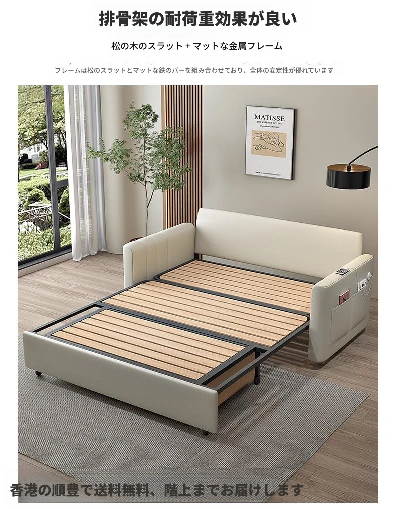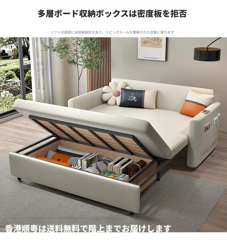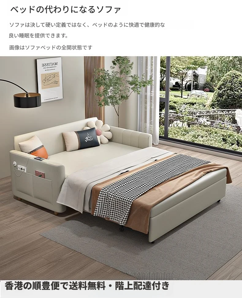 【香港送料無料】簡単折りたたみソファベッド!多機能USBポート付き、リビングやバルコニーに最適な省スペースデザイン!小さなお部屋にぴったりの便利アイテム!