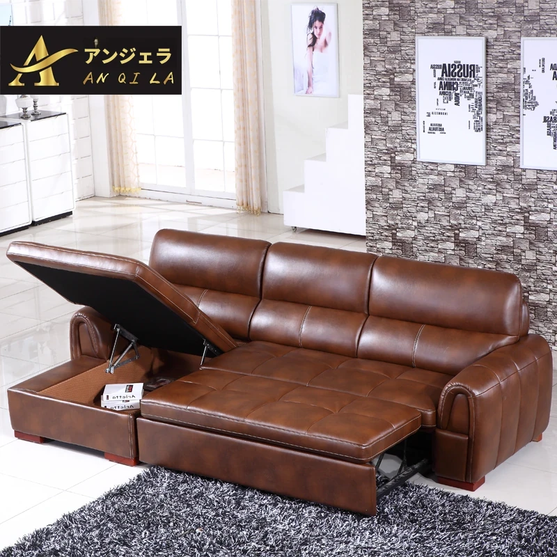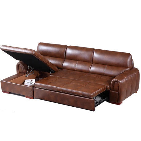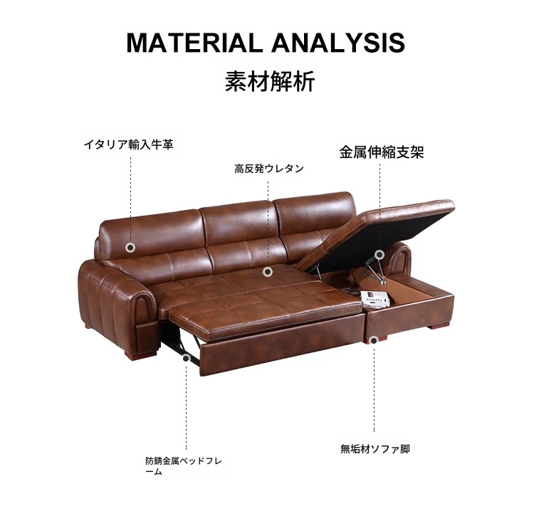 本革使用の高級レザーソファ!リビングにぴったりの多機能ソファベッド。大きな部屋にも小さな部屋にも対応可能なコーナーソファで、快適さとスタイルを両立!
