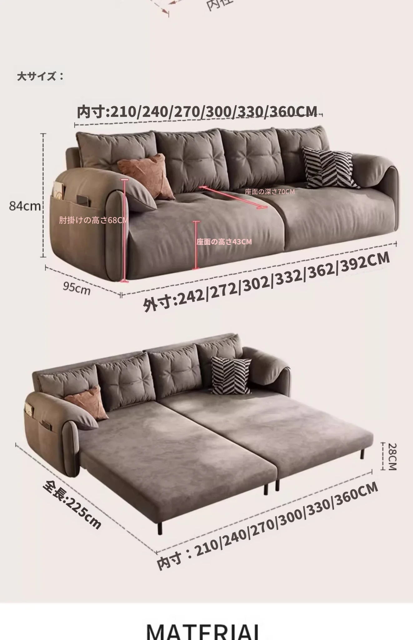 イタリアンスタイルのキャットクロー皮革ソファベッド、折りたたみ式・伸縮可能な多機能デザイン、シングル&ダブル対応、小型アパートやリビングに最適な人気商品!