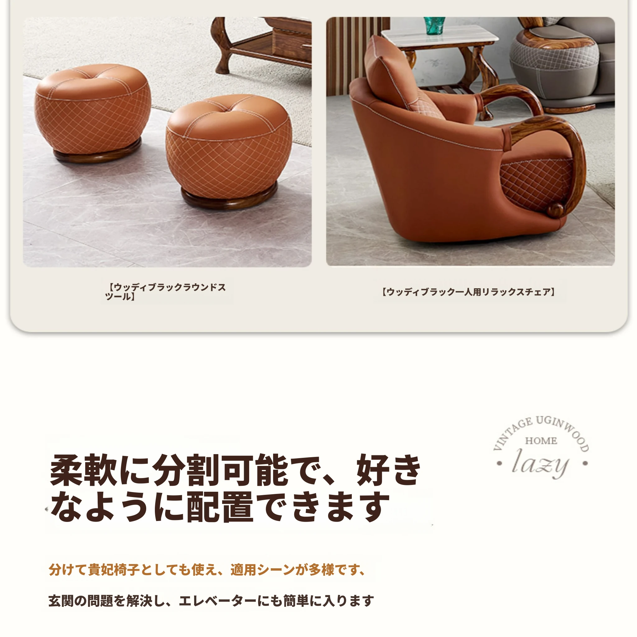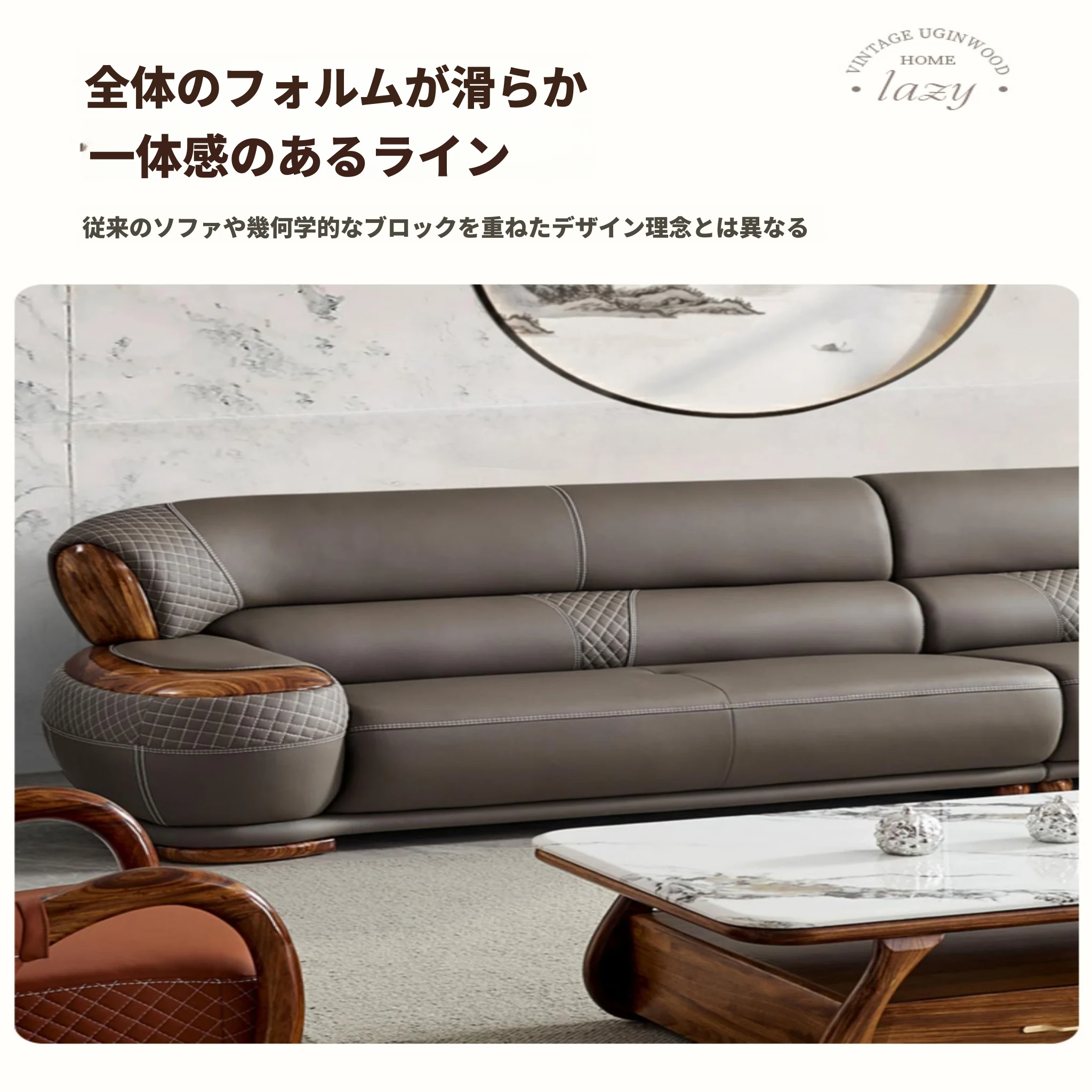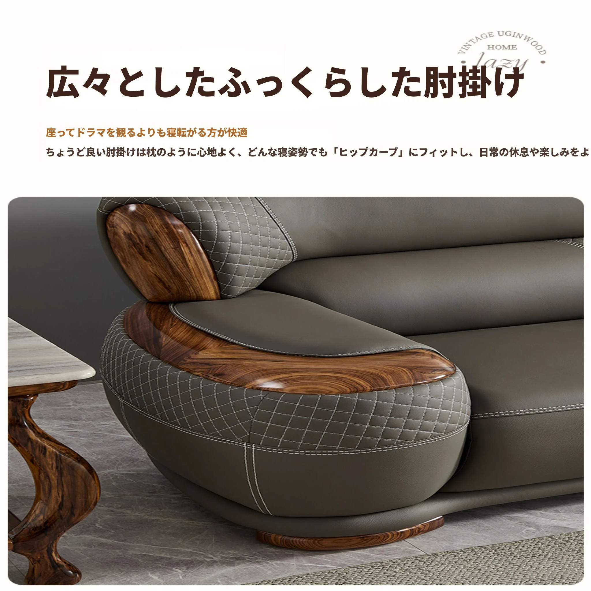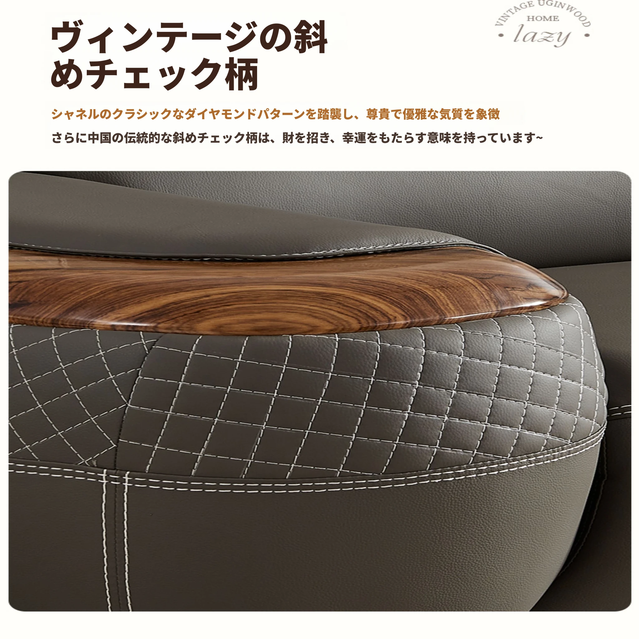 ウーキンウッド本革ソファ 新中式デザイン 高級フルグレイン牛革使用 リビングルームに最適 大型・小型対応 欧風無垢木製レザーソファで、贅沢なひとときをお楽しみください!