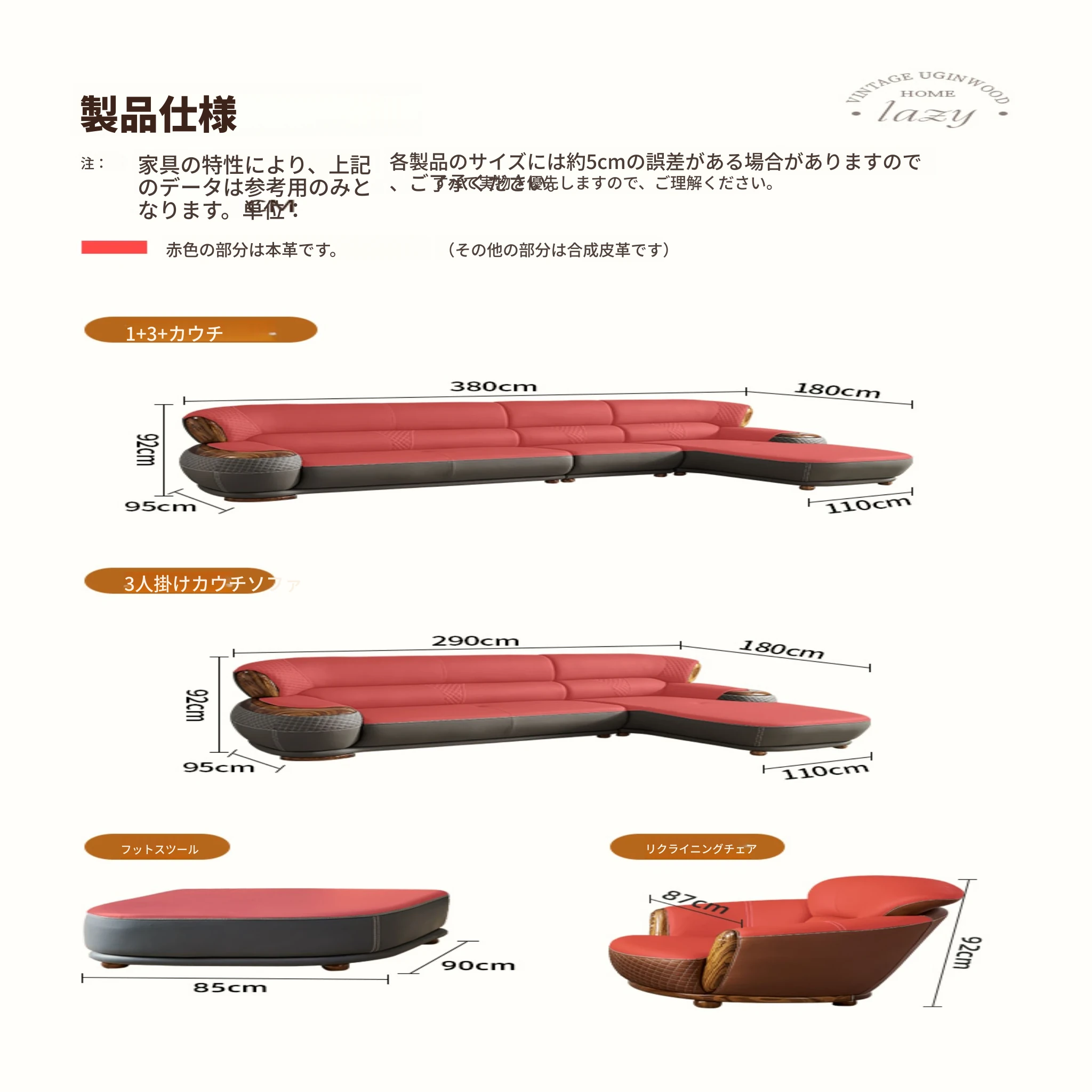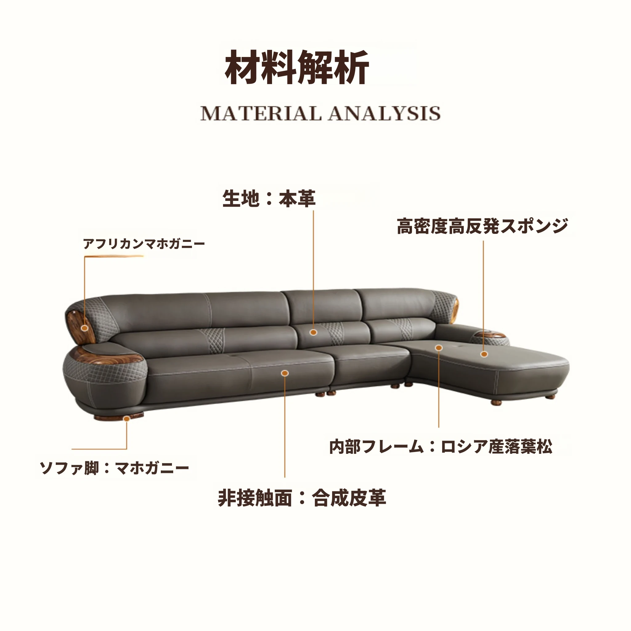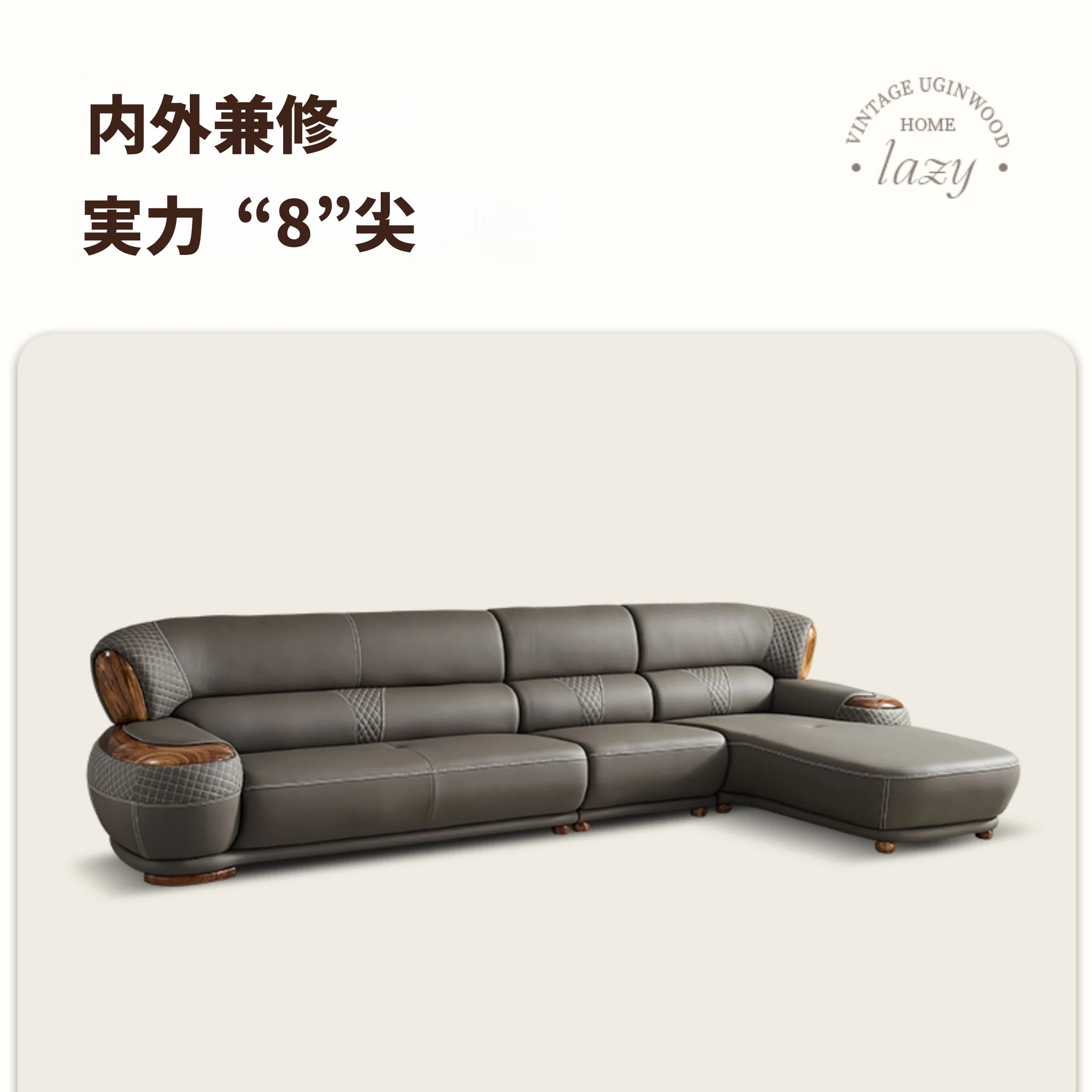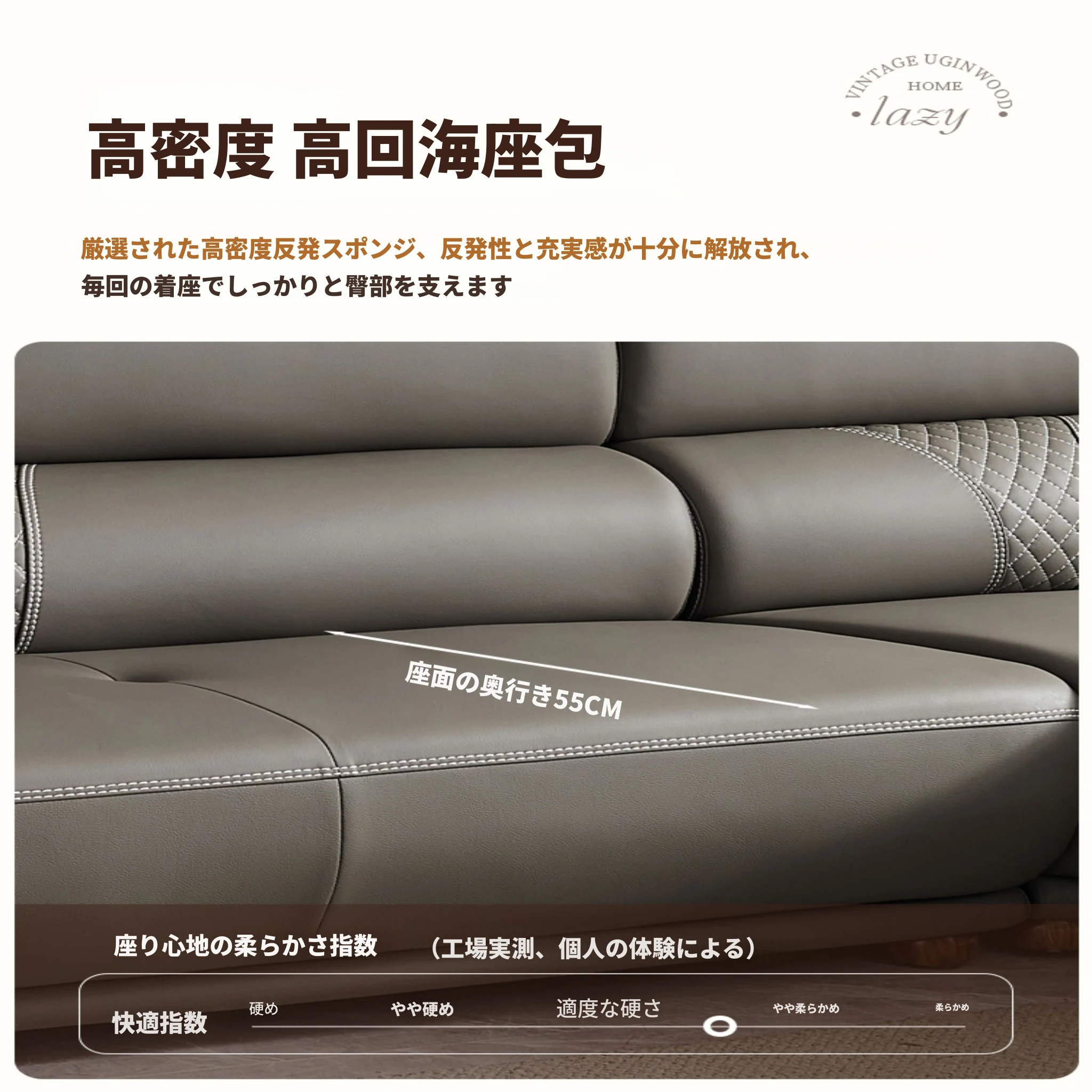 ウーキンウッド本革ソファ 新中式デザイン 高級フルグレイン牛革使用 リビングルームに最適 大型・小型対応 欧風無垢木製レザーソファで、贅沢なひとときをお楽しみください!