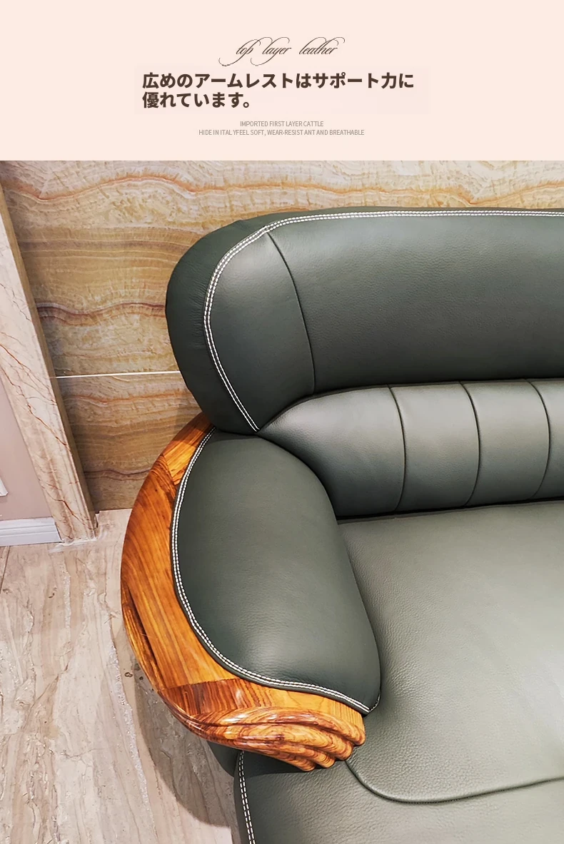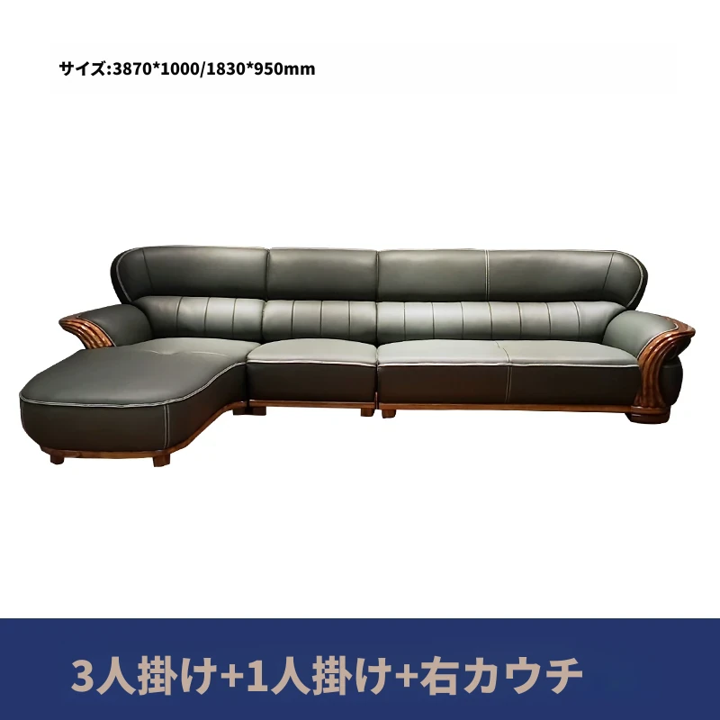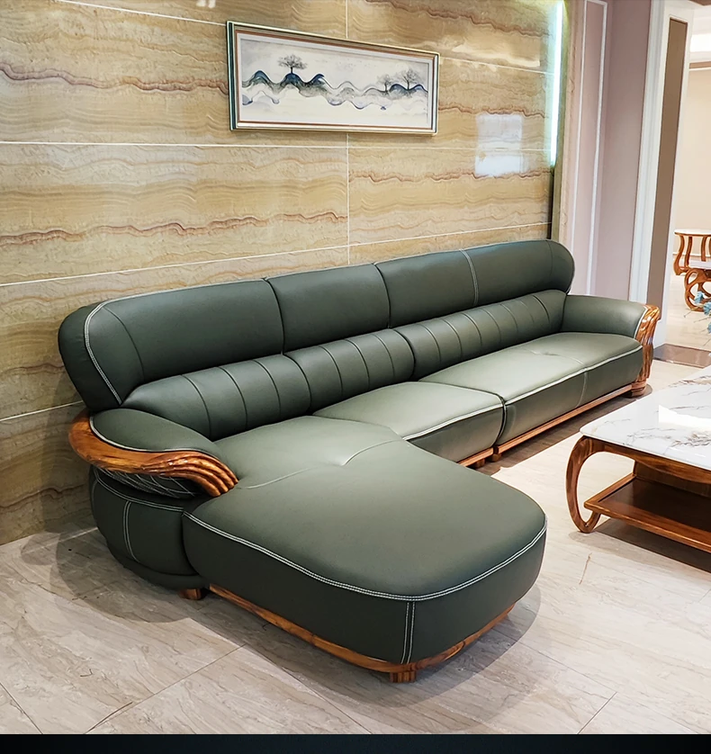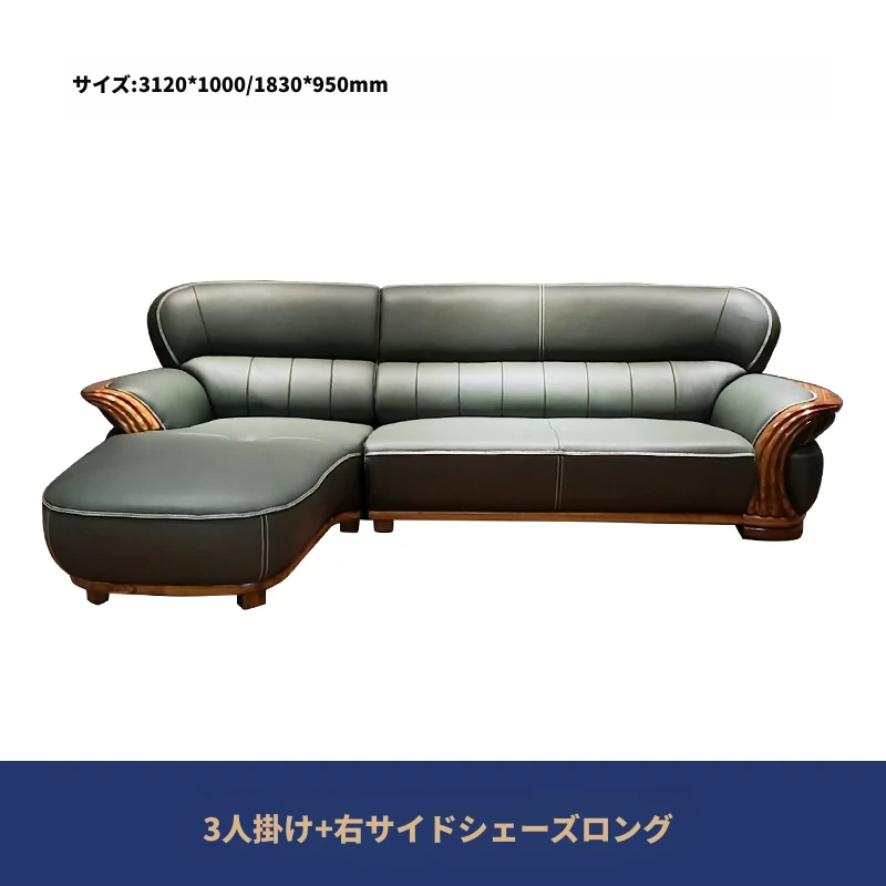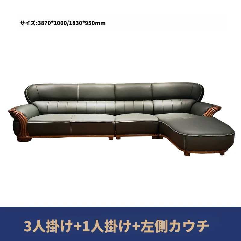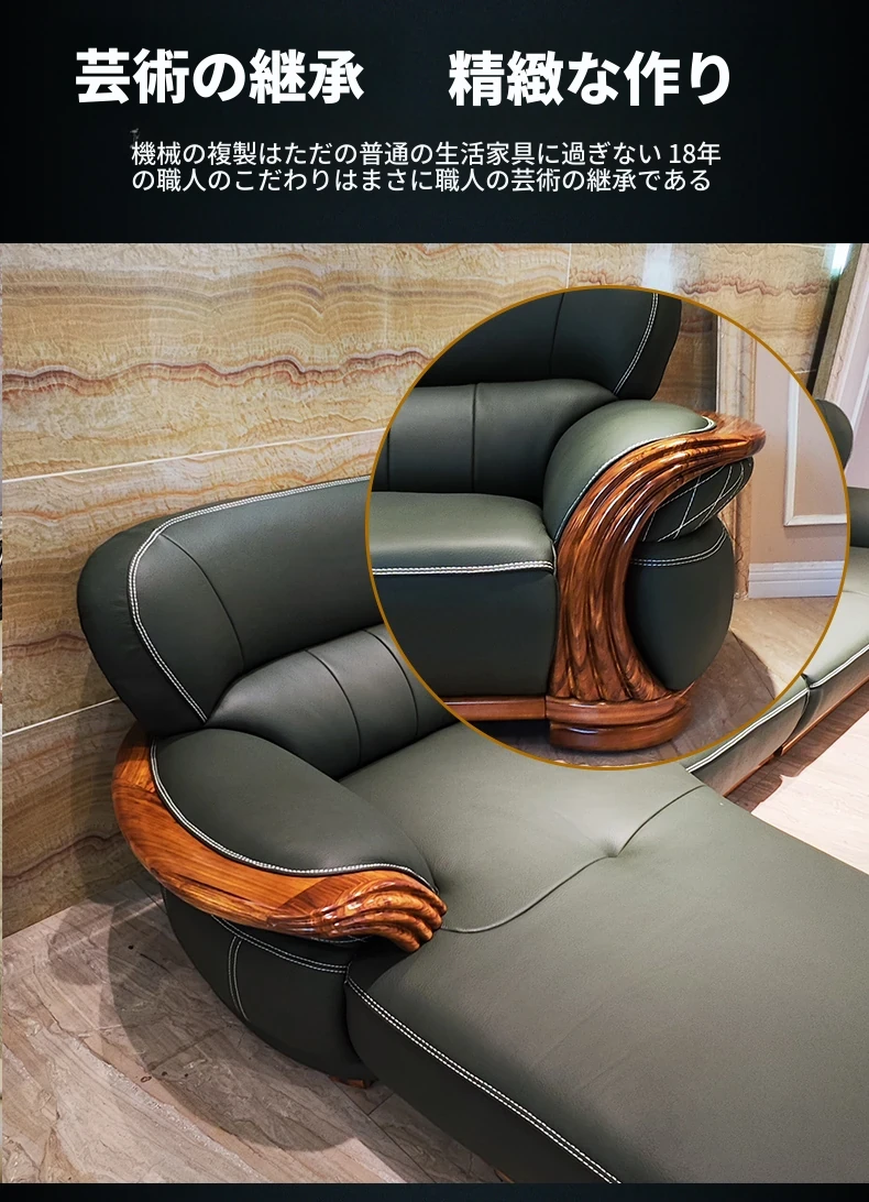 新作!中式ウッドウールコーナーソファー - 高級本革と天然木のコンビネーション、リビングルームにぴったりの豪華デザイン。大きな空間にも小さな空間にも対応。あなたの家にスタイルと快適さをプラス!