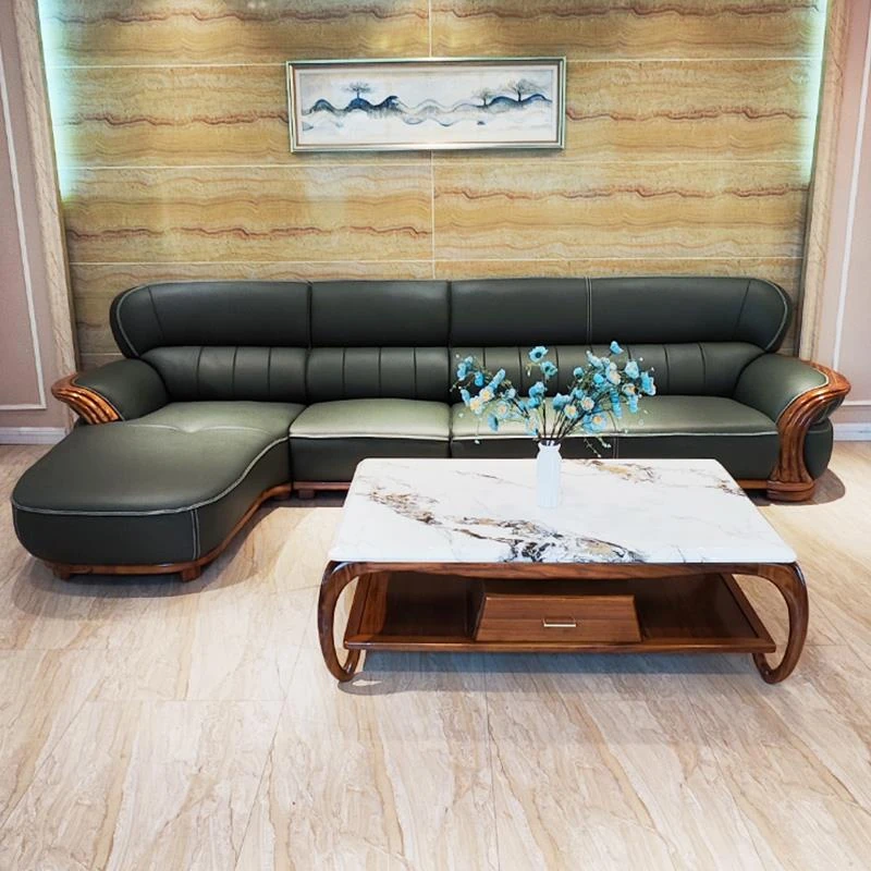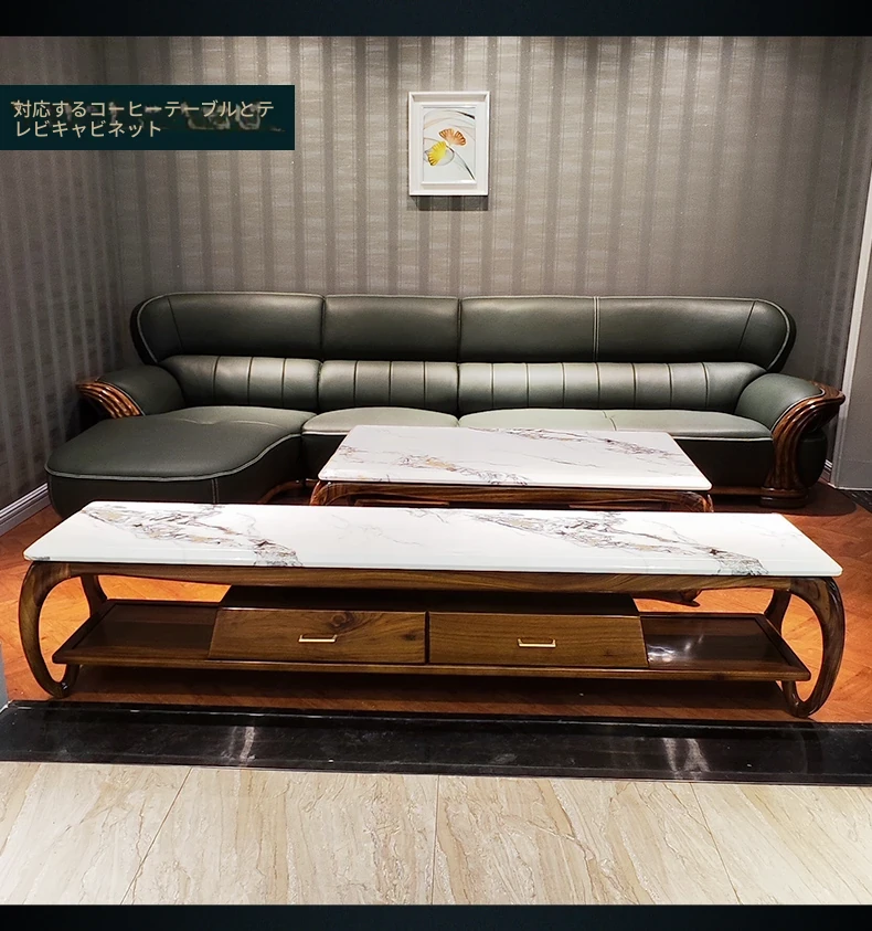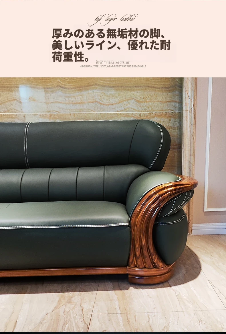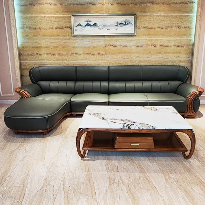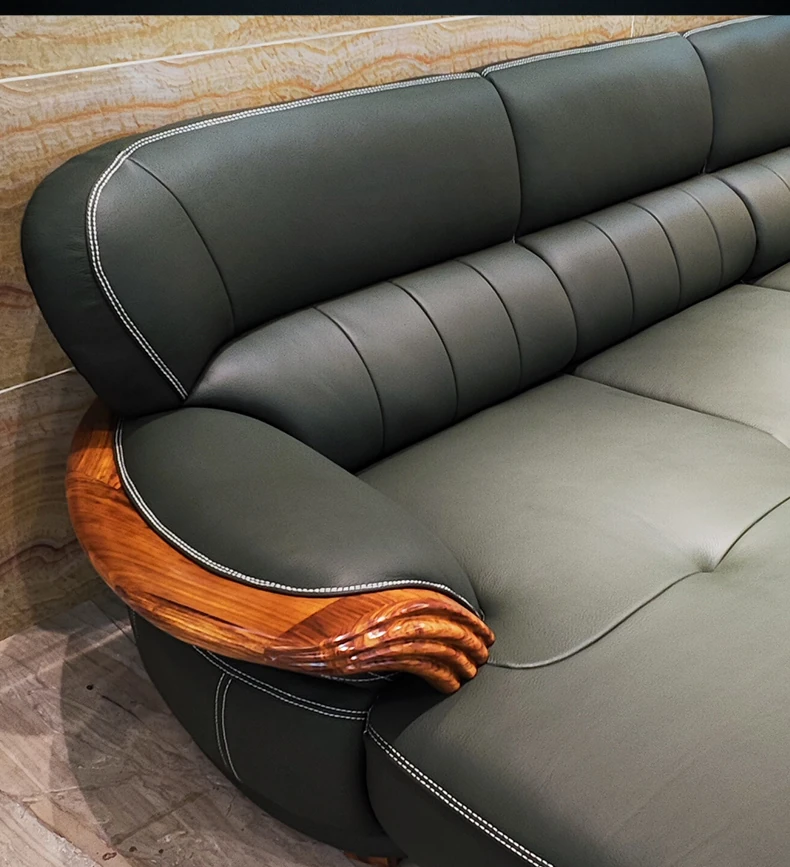新作!中式ウッドウールコーナーソファー - 高級本革と天然木のコンビネーション、リビングルームにぴったりの豪華デザイン。大きな空間にも小さな空間にも対応。あなたの家にスタイルと快適さをプラス!