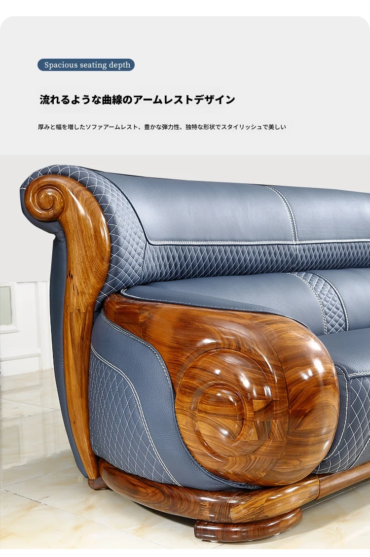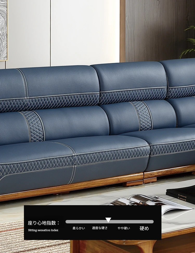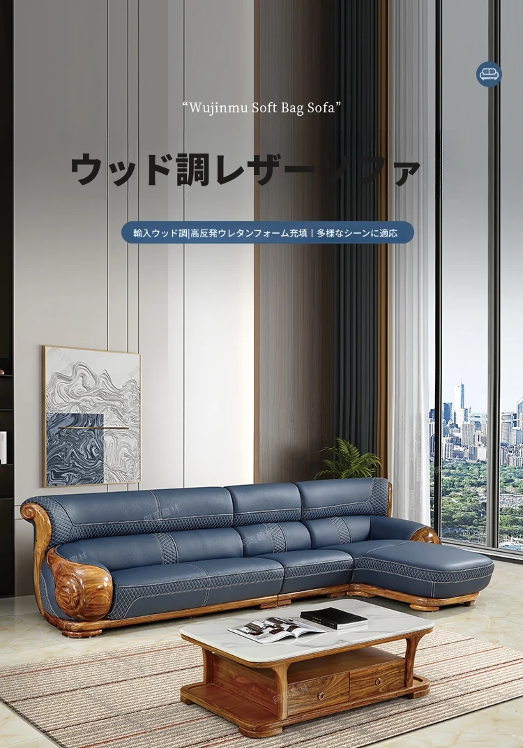 新中式高級ウッドブラックソファー コーナー 本革使用 モダンデザイン 高品質牛革 ラグジュアリーなリビングルーム用 ヴィラソファー