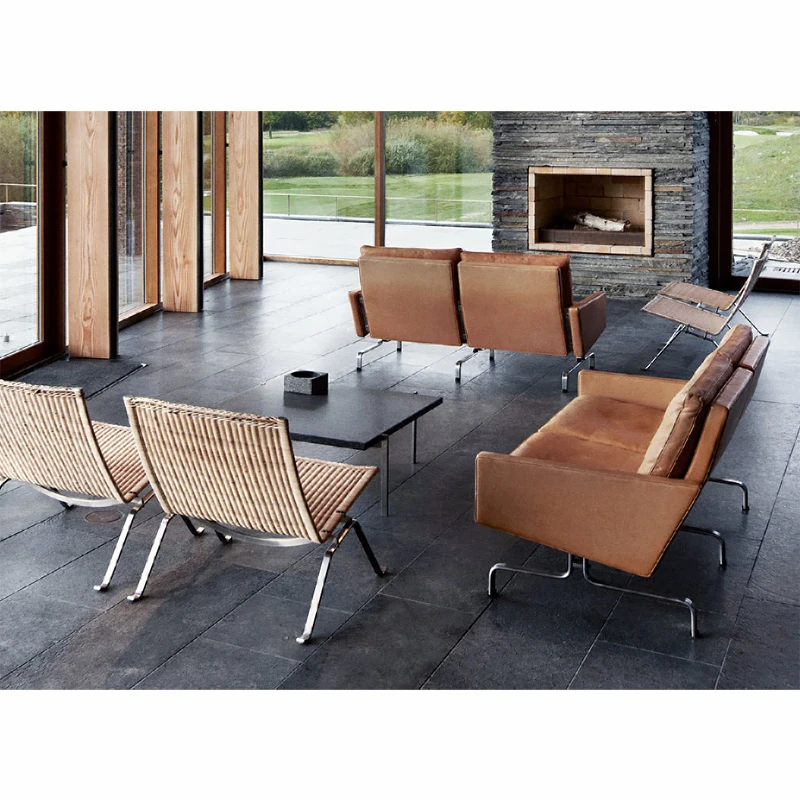 北欧風の高級感あふれる本革ソファ - シンプルでモダンなデザイン、オフィスやビジネスミーティングにも最適なPK31ソファ。快適さとスタイルを兼ね備えたリビングにぴったりのアイテム!