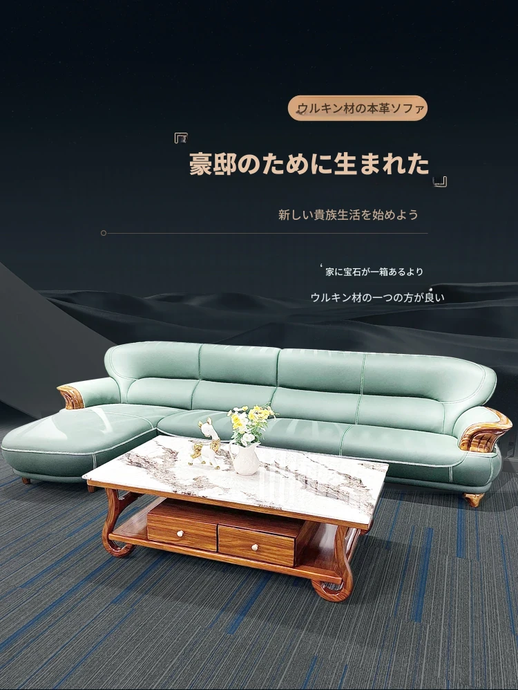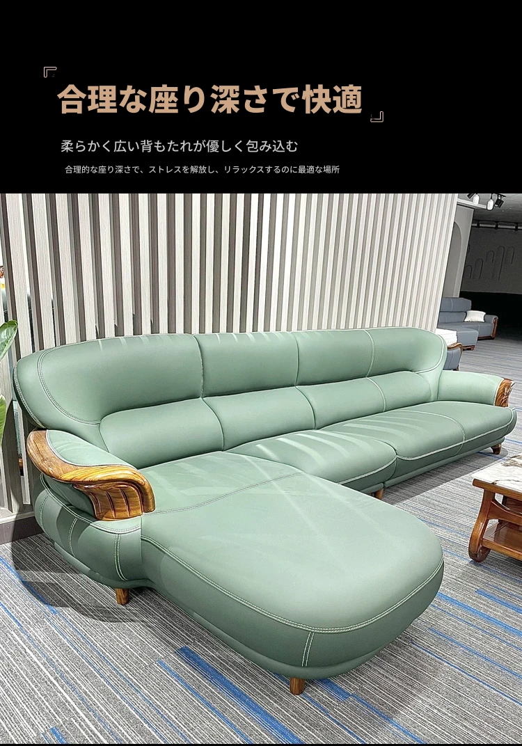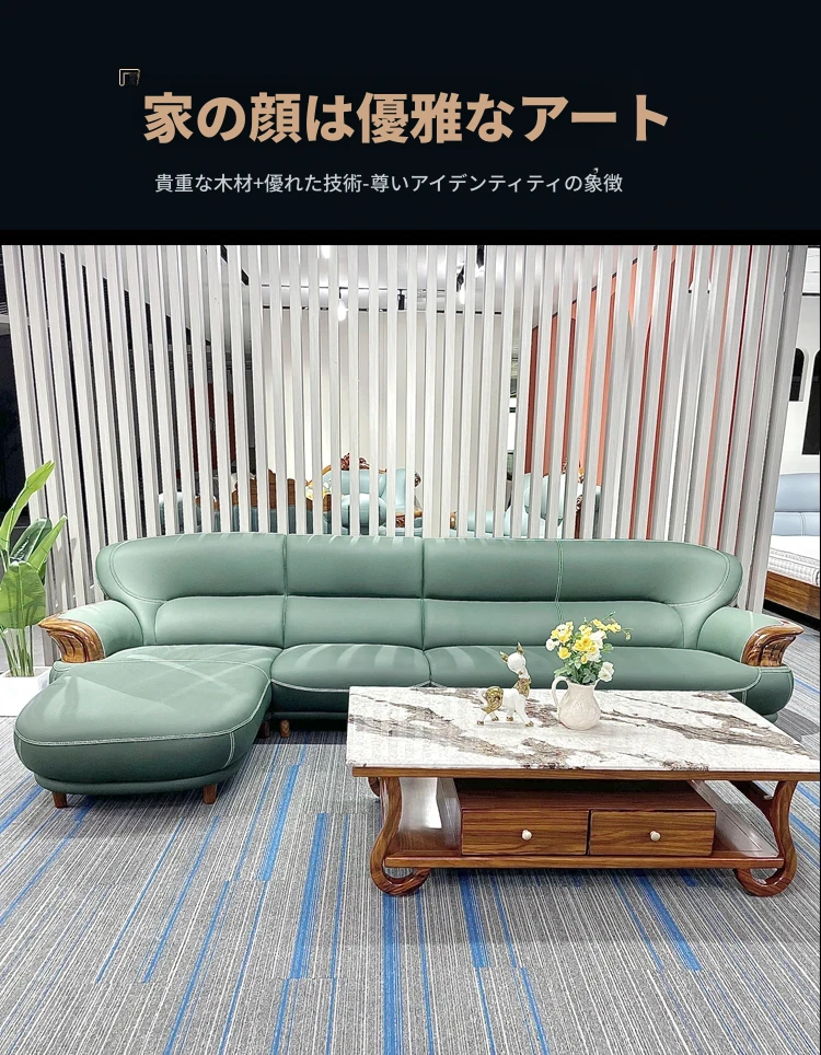 新中式スタイルのウッディなウッドと高級レザーを使用したモダンなL字型ソファ。コンパクトなリビングにも最適で、優雅な貴妃スタイルを演出。シンプルで洗練されたデザインで、あなたの居住空間を格上げします!