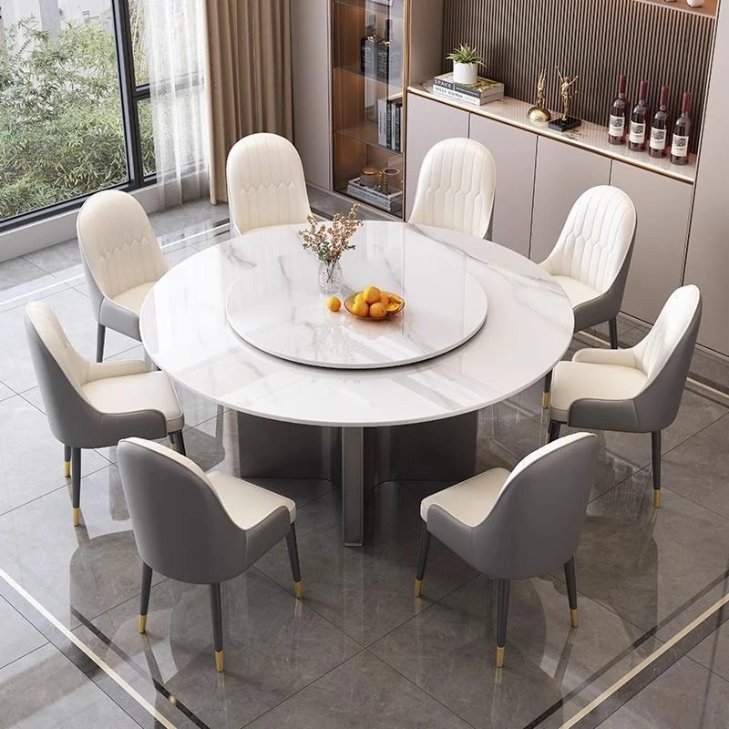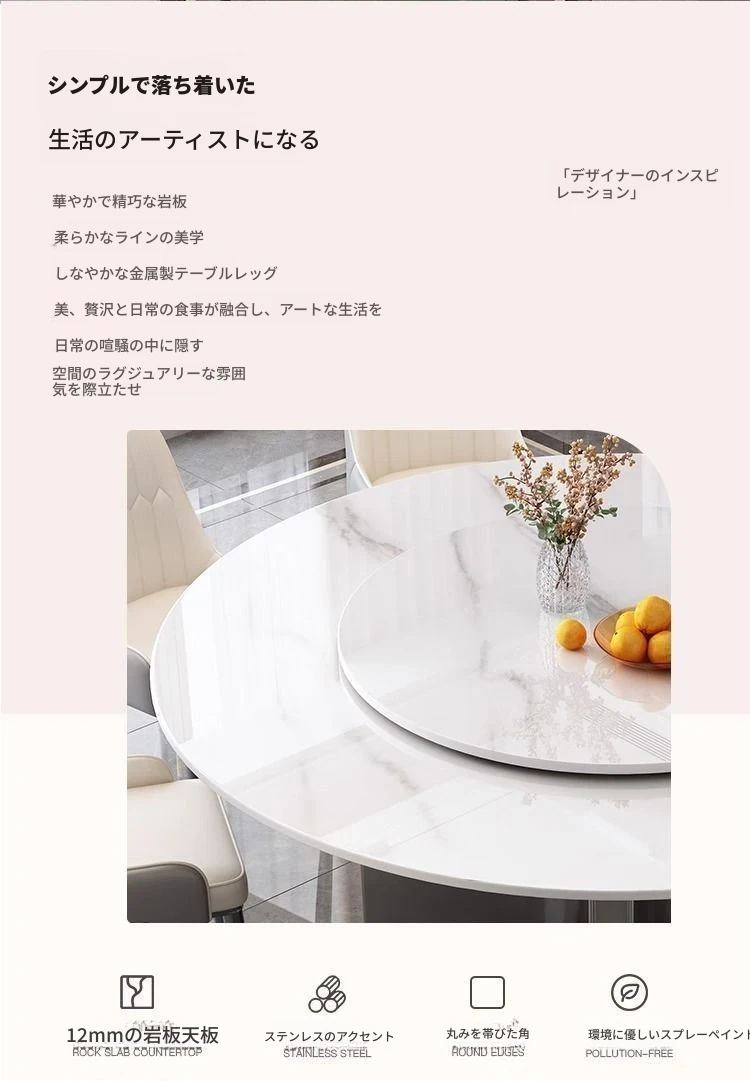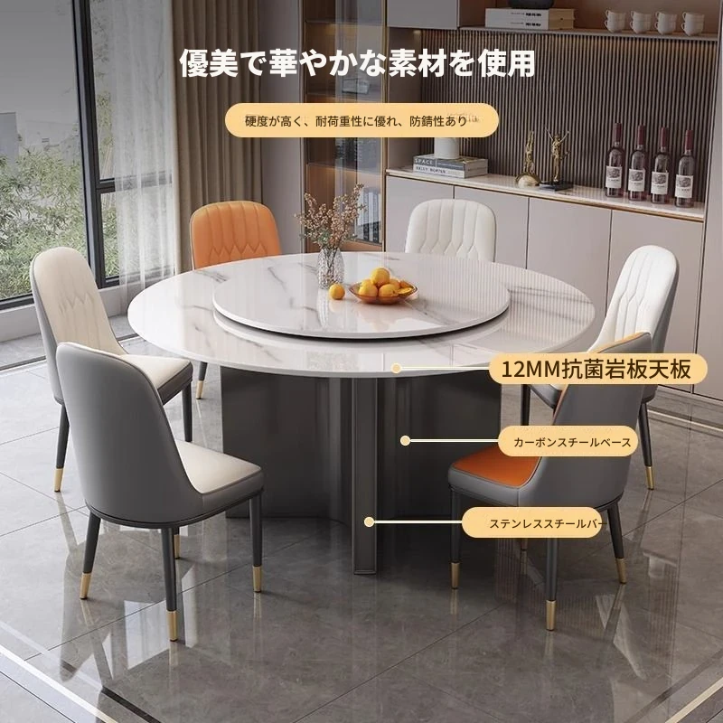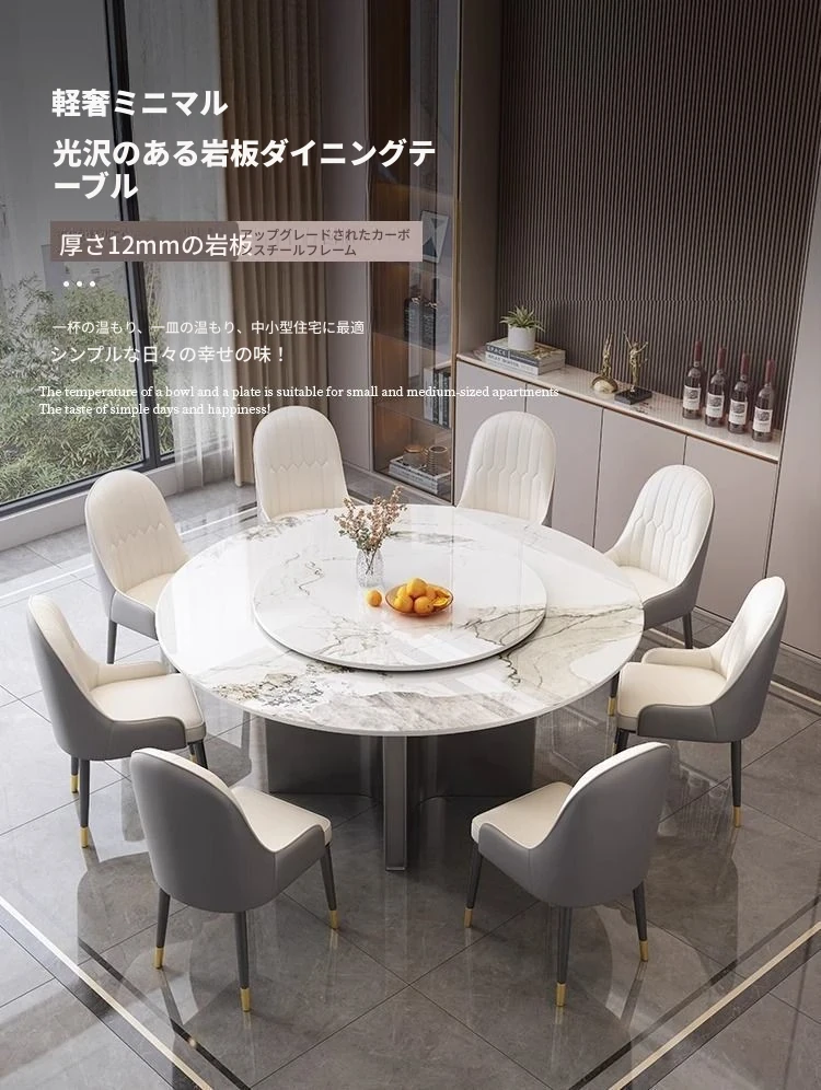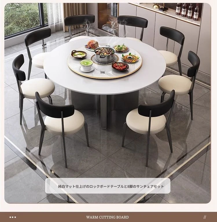 モダンな家庭用岩板ヒーター付きイタリアン軽奢華円形テーブル - シンプルでおしゃれな小型アパートに最適なダイニングテーブルとチェアセット!温かみのあるデザインで、心地よい食卓を演出します。