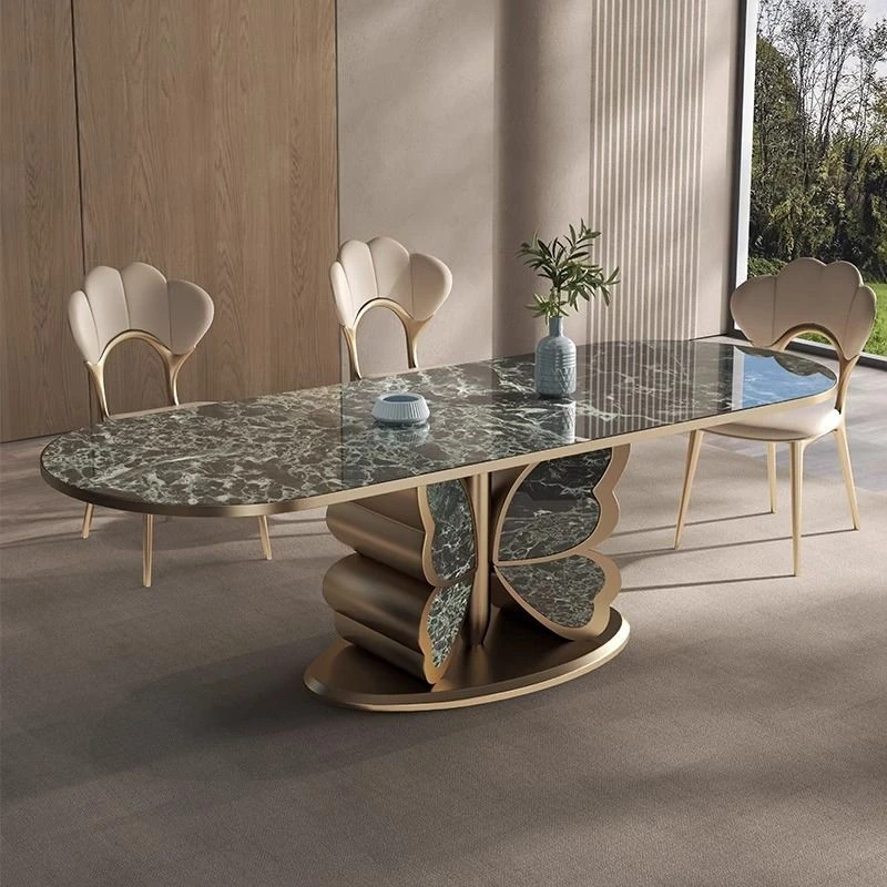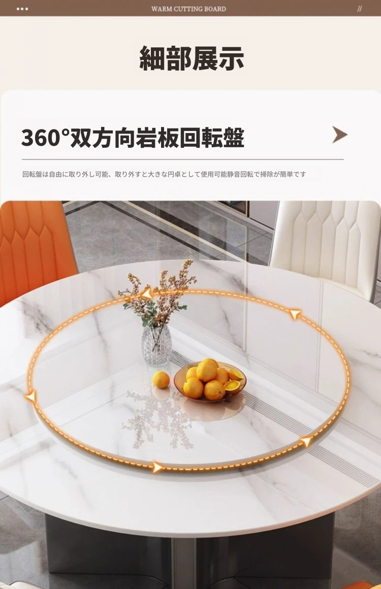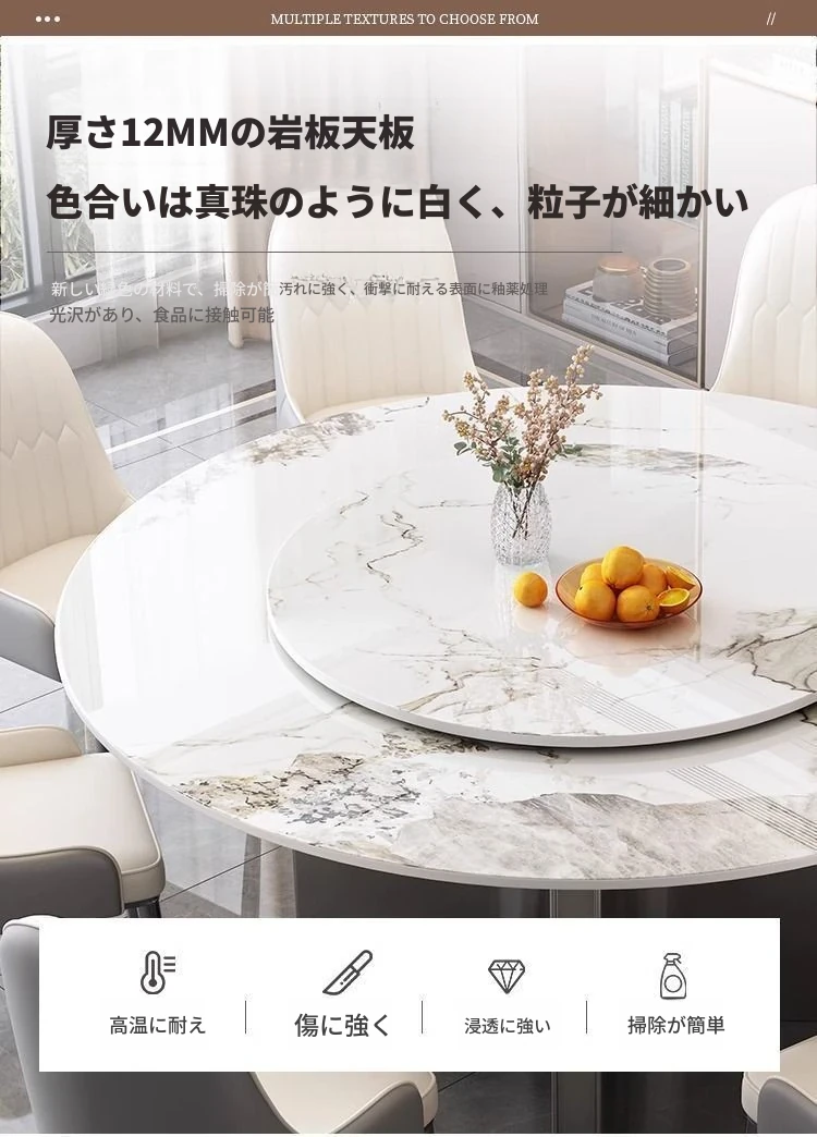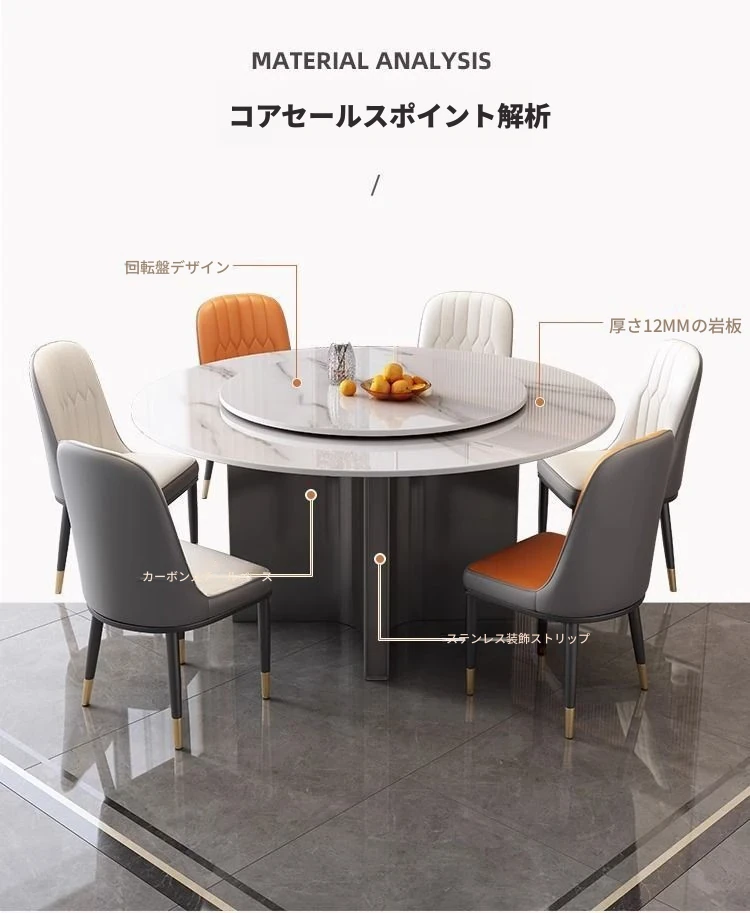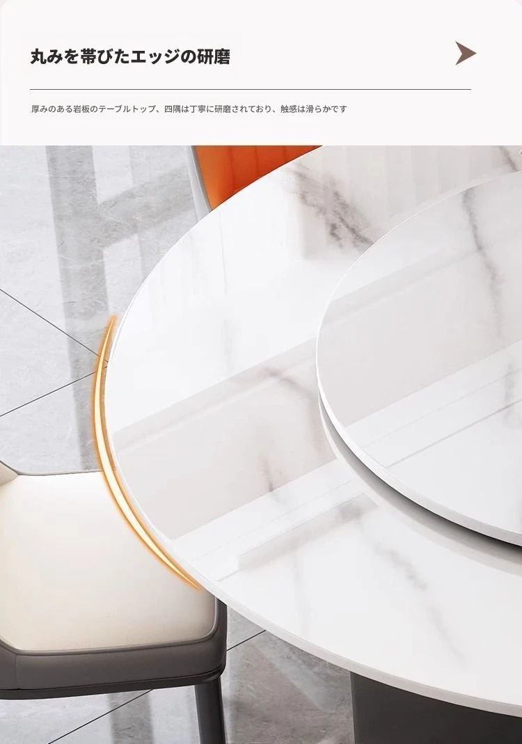 モダンな家庭用岩板ヒーター付きイタリアン軽奢華円形テーブル - シンプルでおしゃれな小型アパートに最適なダイニングテーブルとチェアセット!温かみのあるデザインで、心地よい食卓を演出します。