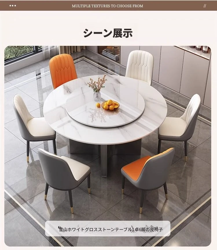 1.2メートル円卓+6ラグジュアリー椅子(注文で回転台進呈)