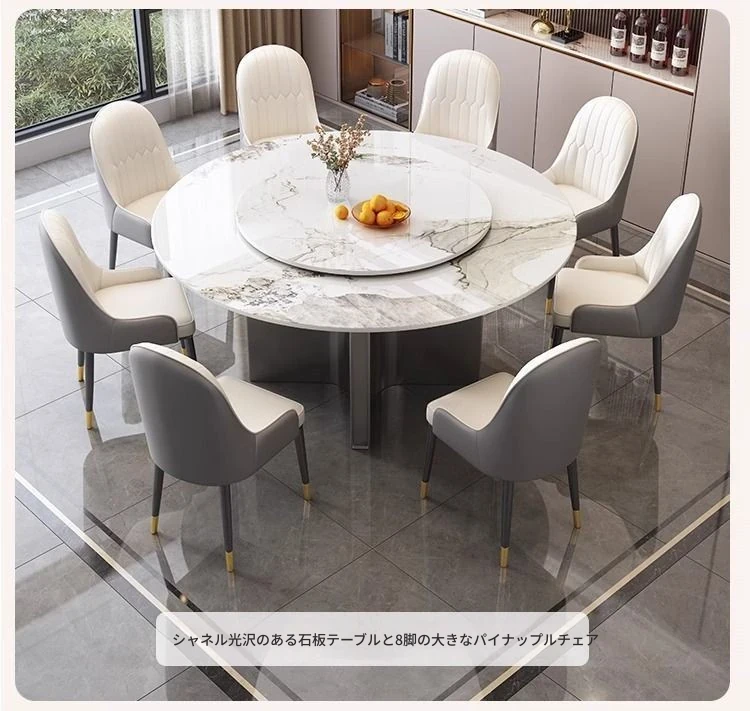 1.5メートル円卓+8ラグジュアリー椅子(注文で回転台進呈)