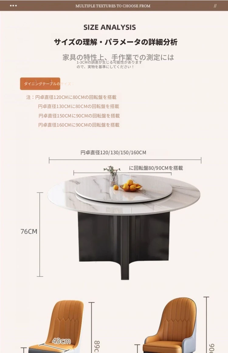 1.3メートル円卓+8大きな稲妻椅子(注文で回転台進呈)