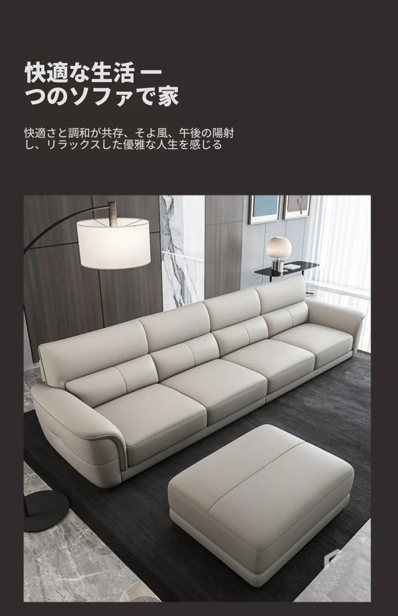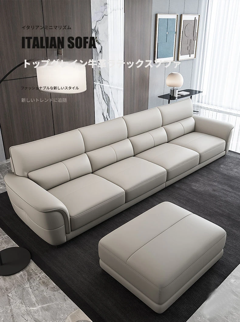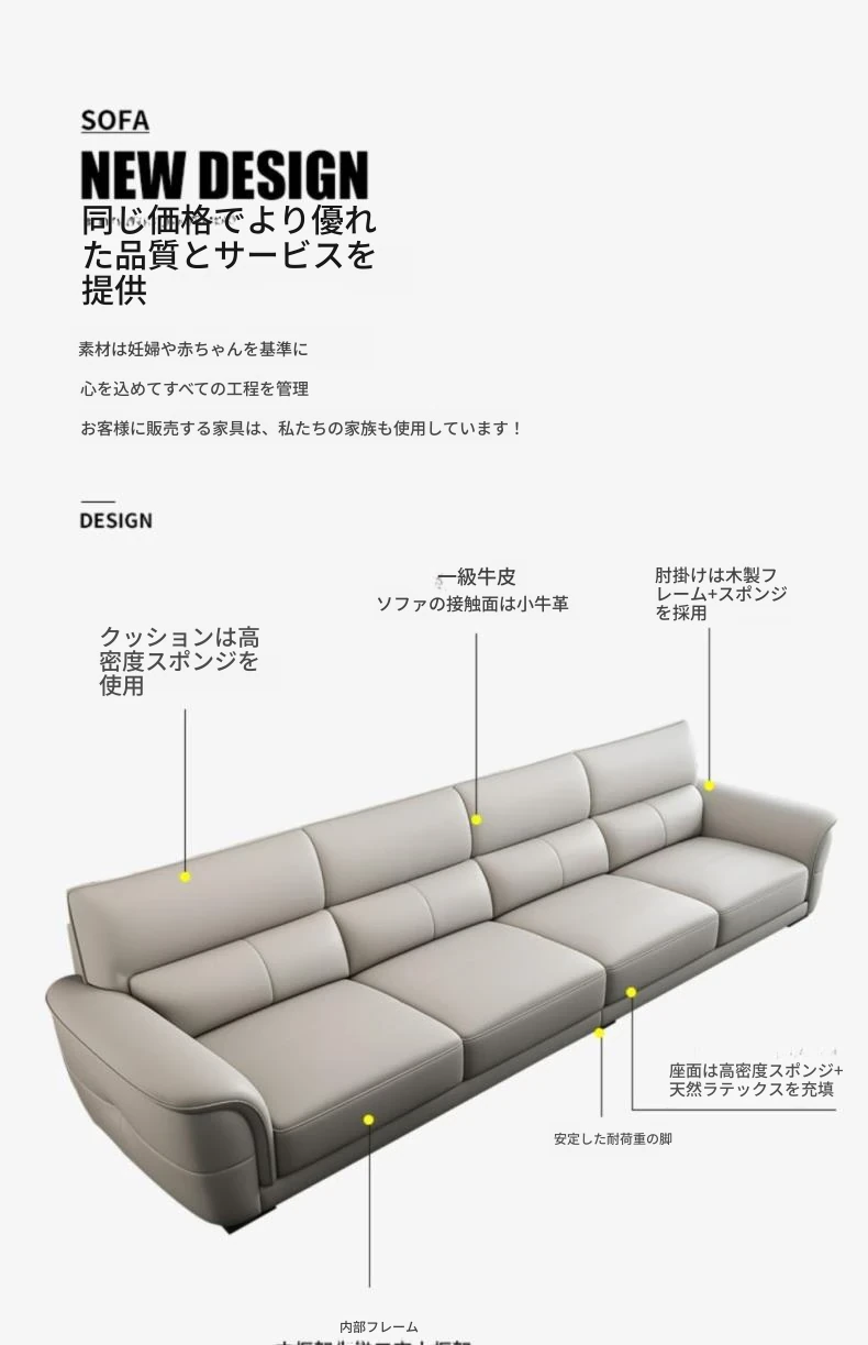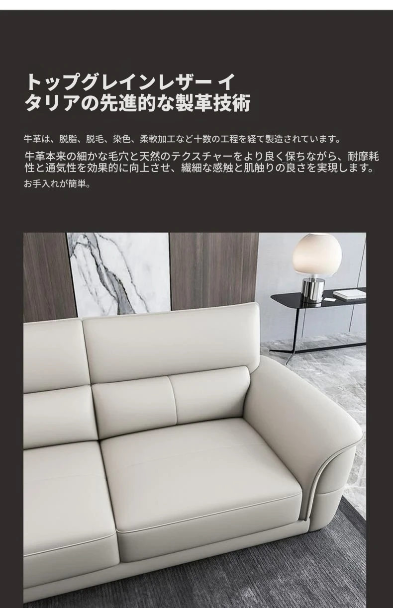 北欧スタイル本革ソファ|上質なトップグレイン牛革使用|モダンシンプルデザイン|小さなリビングにも最適|イタリアンミニマリズムの真髄を感じる本革ソファ