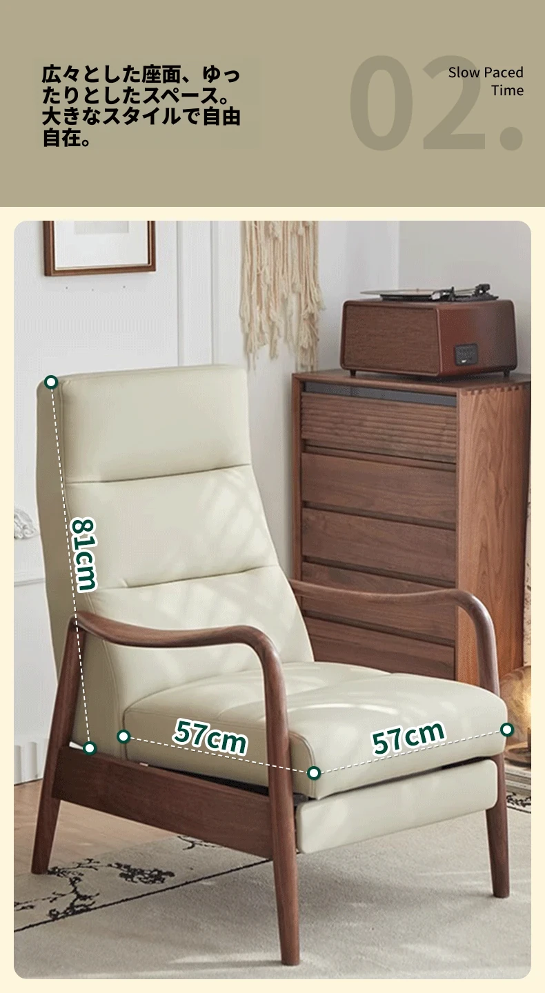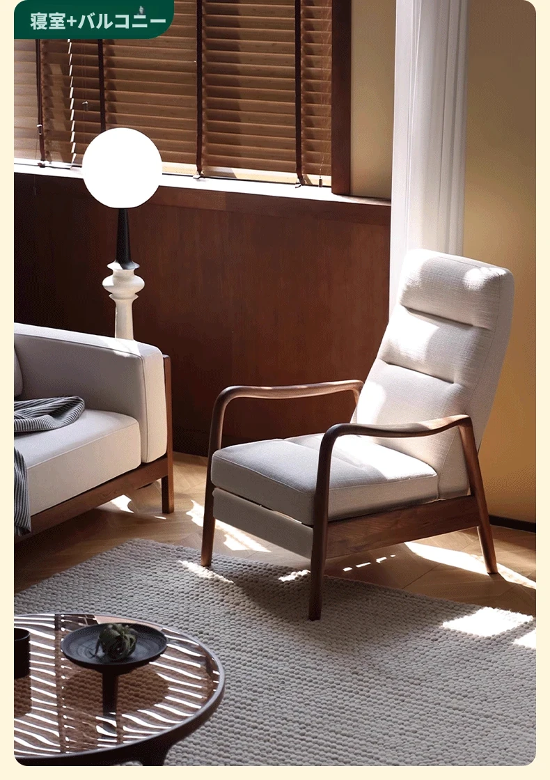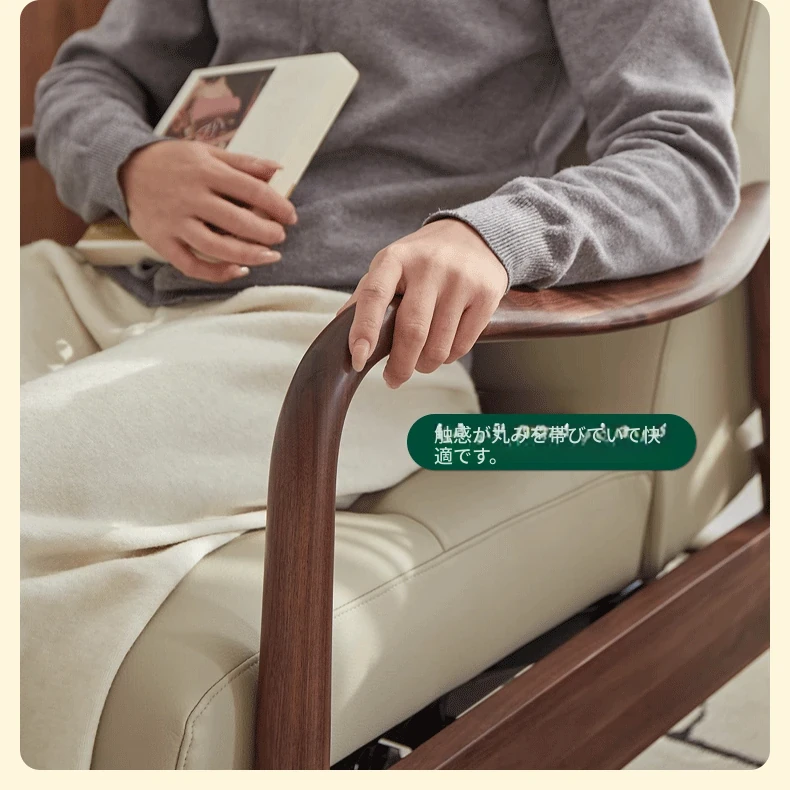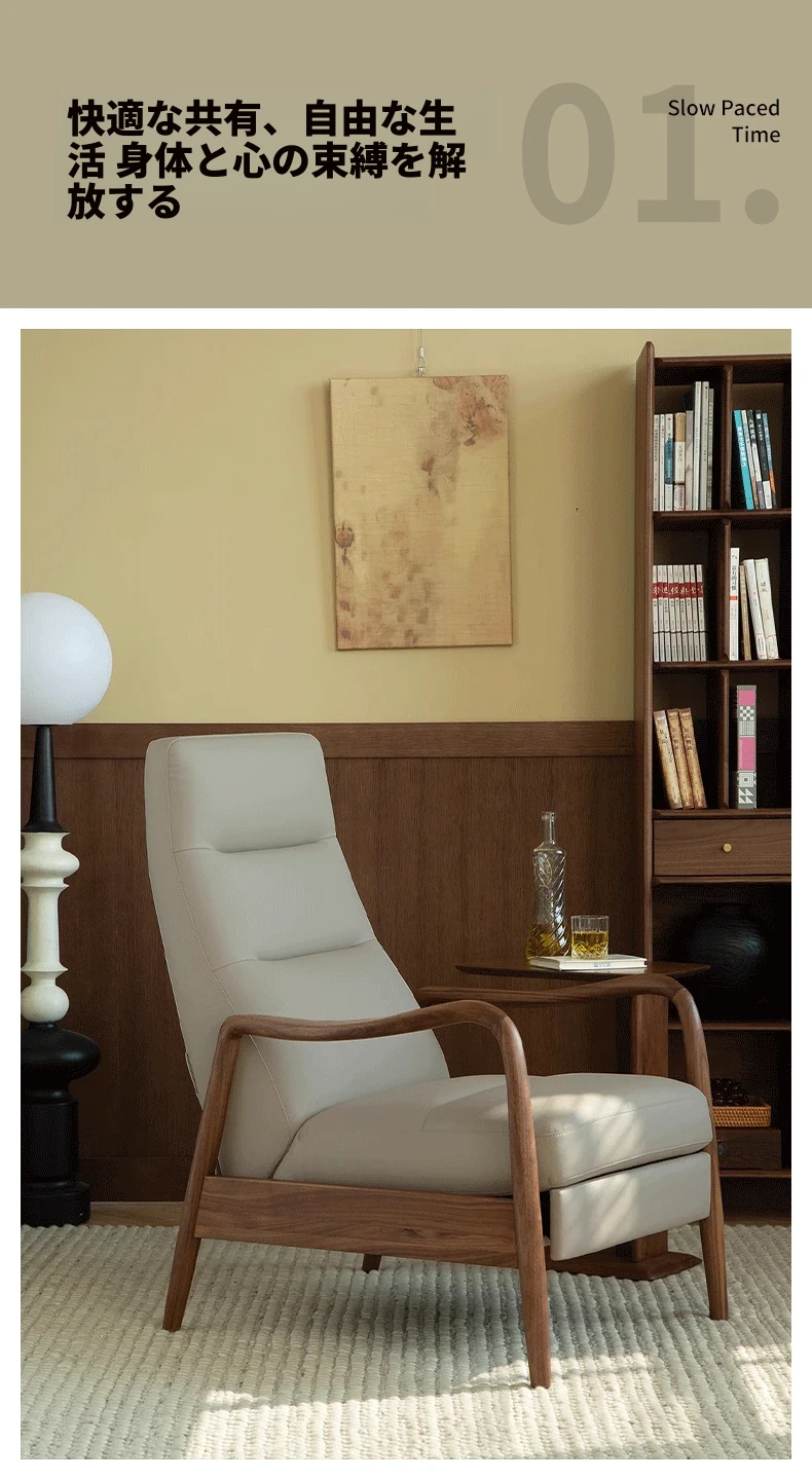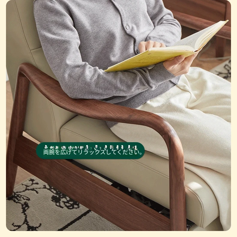 北米産ブラックウォールナットの多機能リクライニングソファチェア - リラックスできる一人用、座り心地抜群の調整可能なウッドアームチェア!快適なひとときをあなたに。