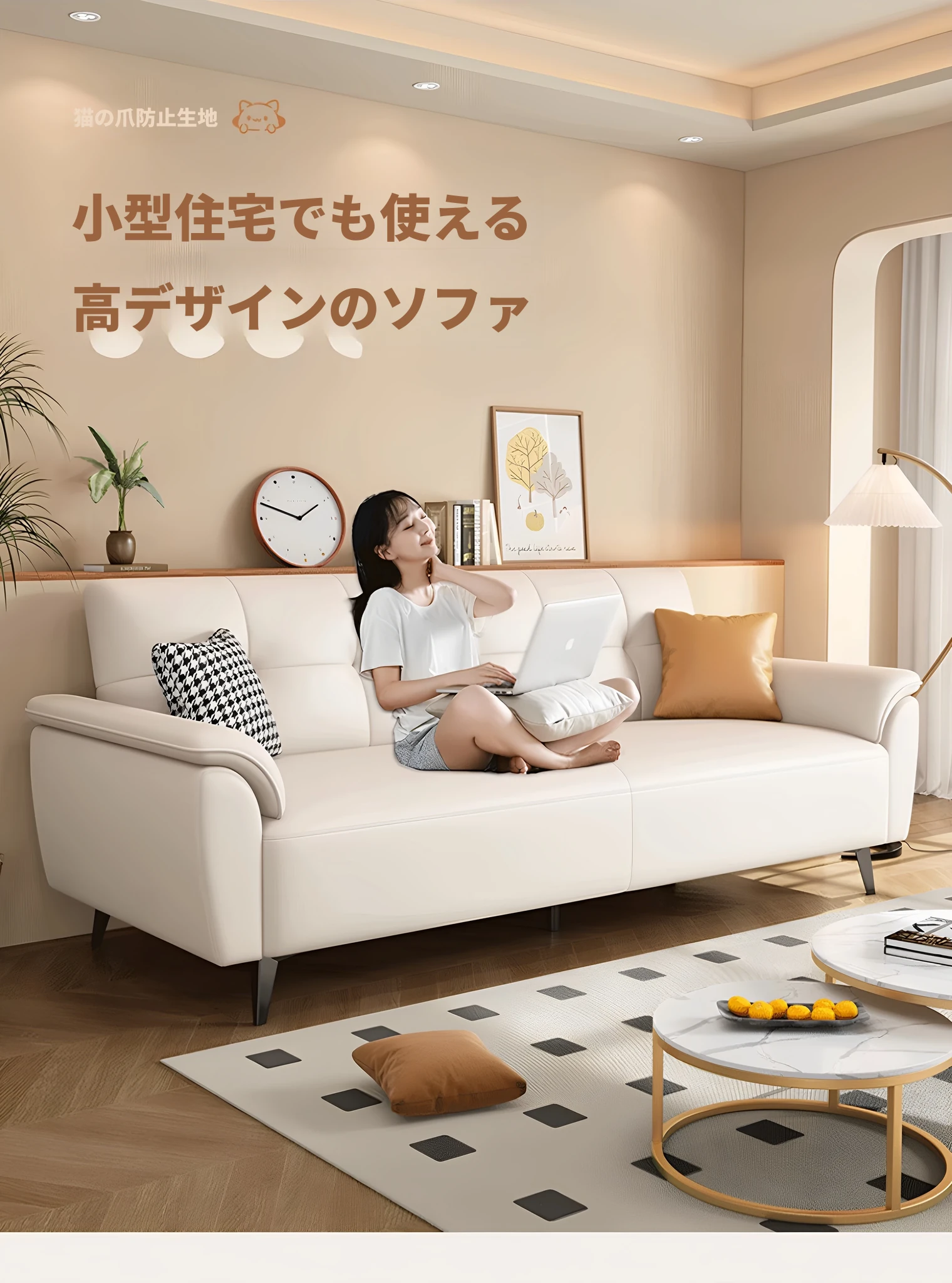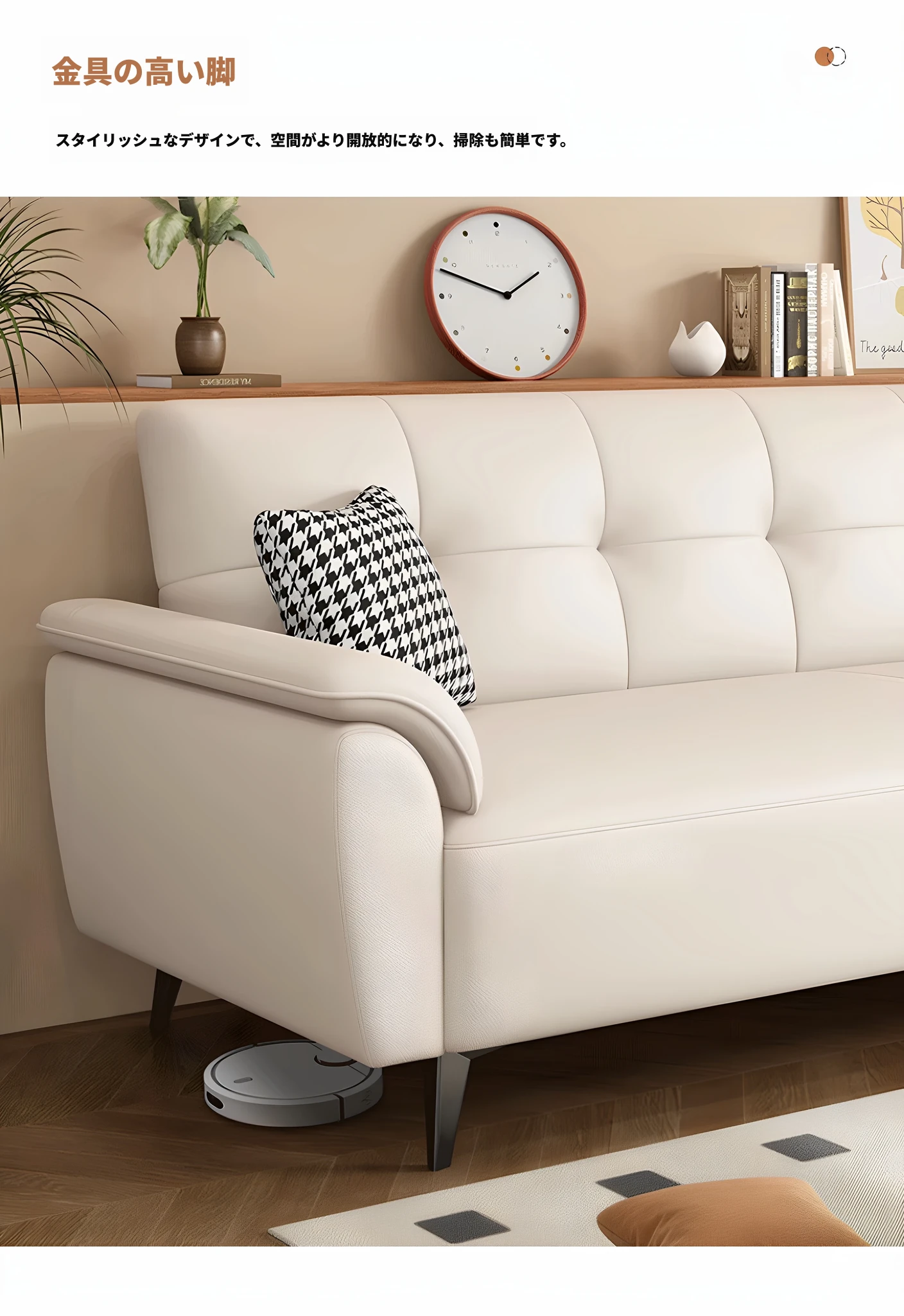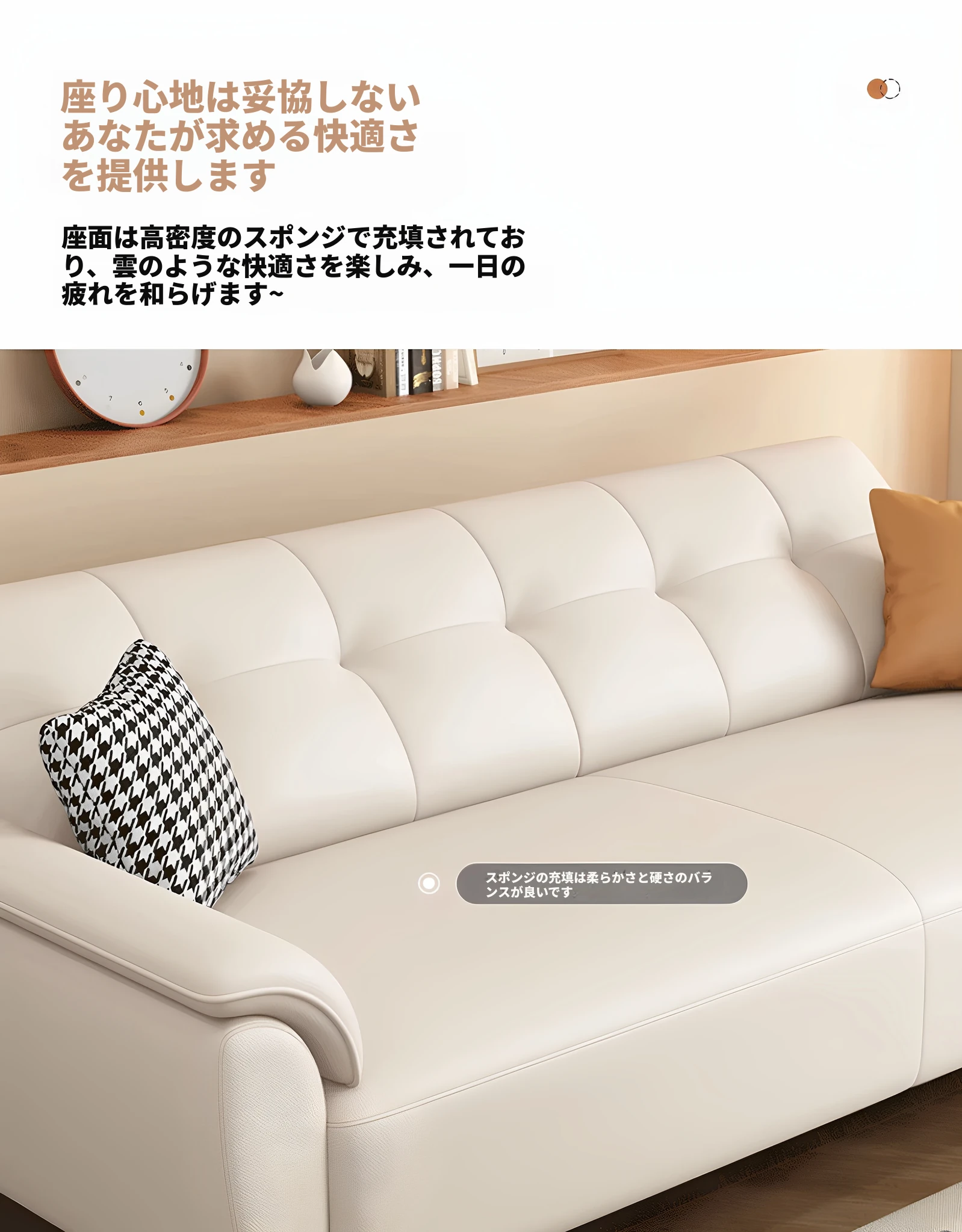 三人掛け 1.7メートル アイボリー【防水・猫の爪対策レザー】水洗いラテックスタイプ 【クッション2個付き】