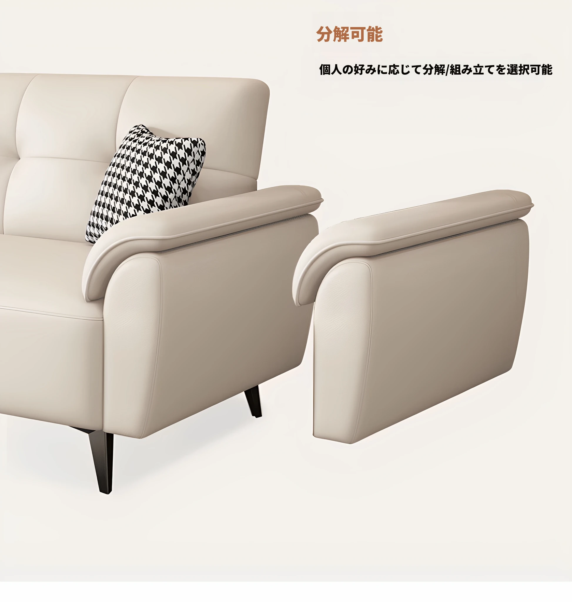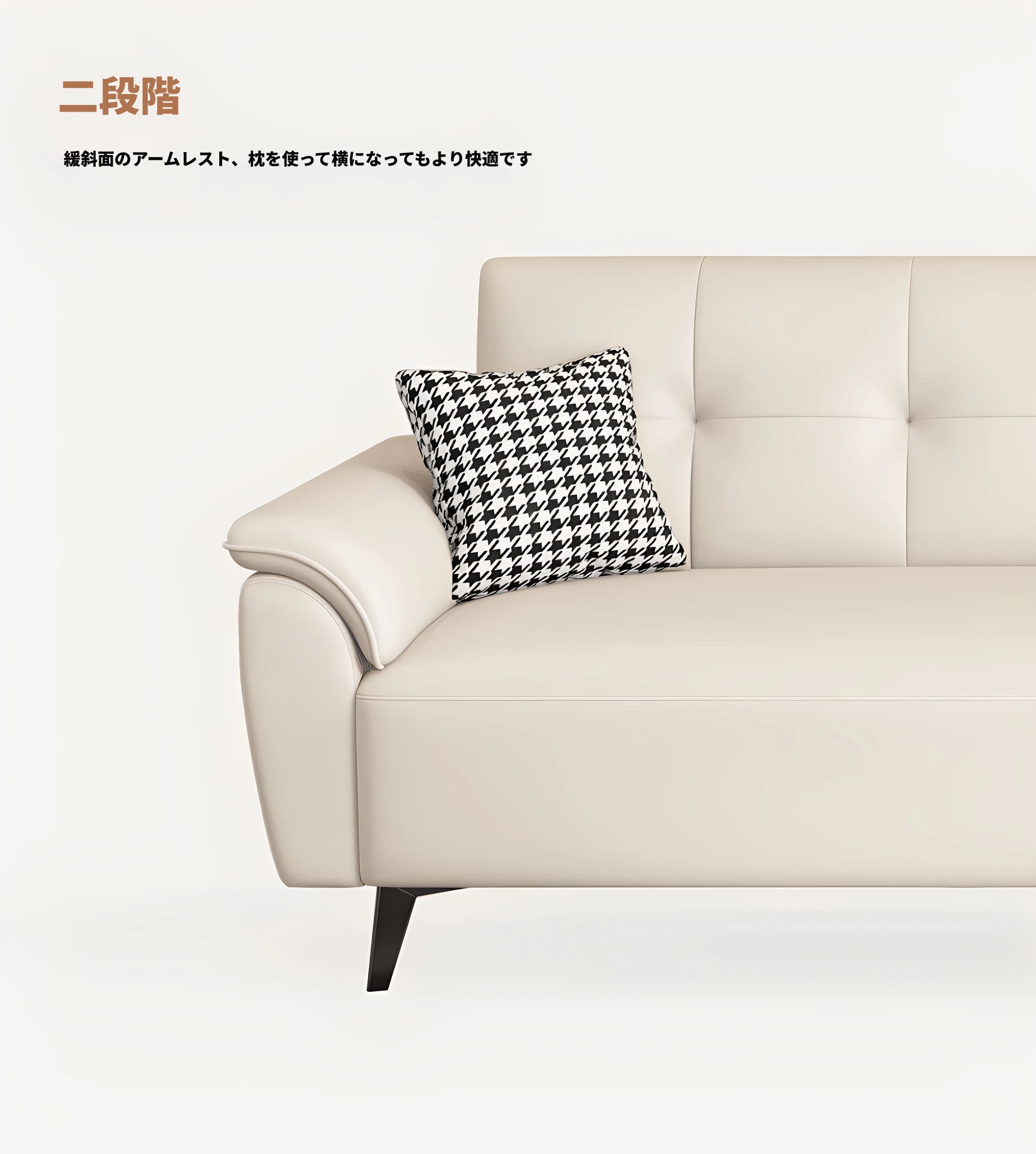 四人掛け 2.0メートル アイボリー【防水・猫の爪対策レザー】水洗いラテックスタイプ 【クッション2個付き】