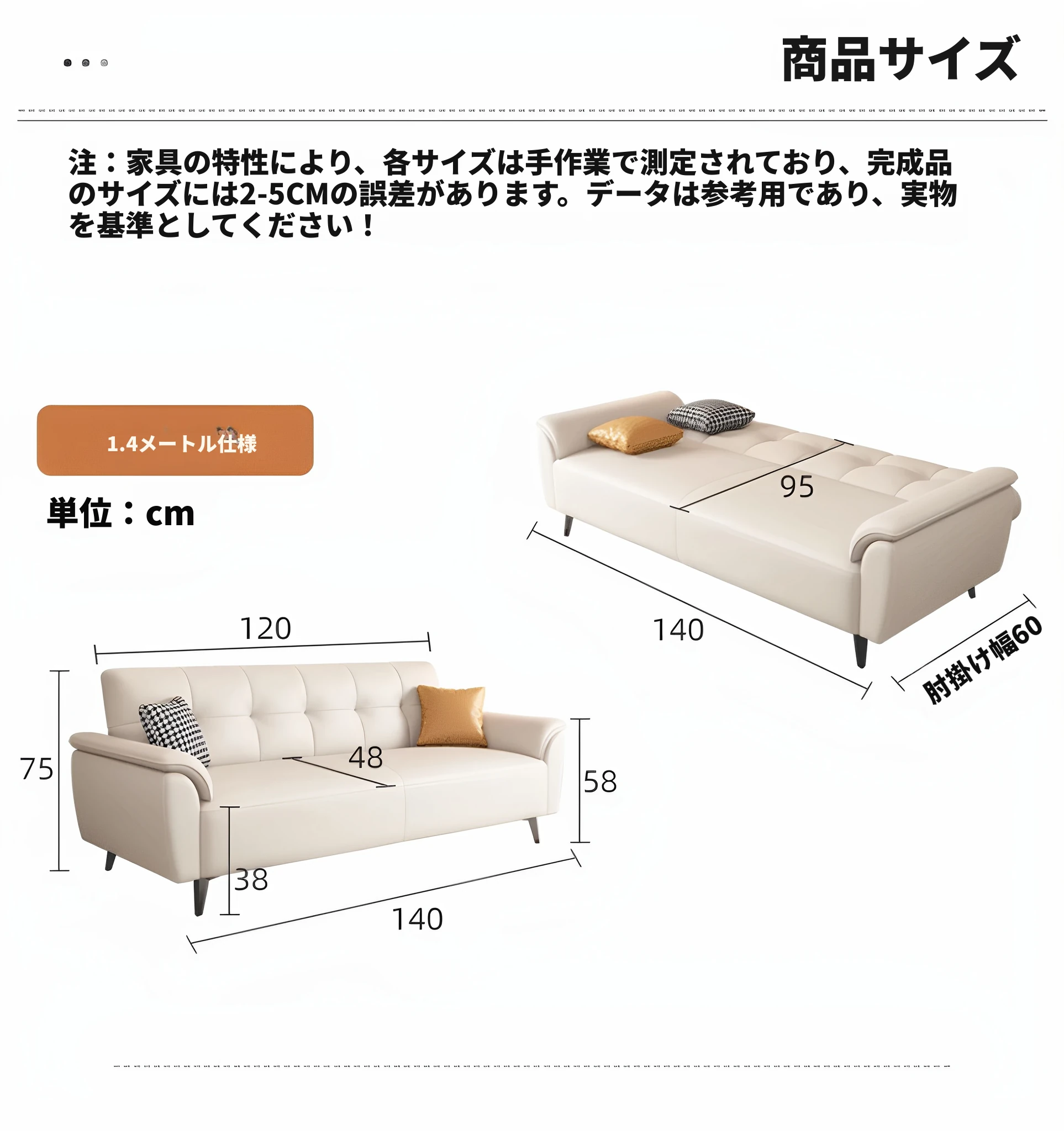 二人掛け 1.4メートル アイボリー【防水・猫の爪対策レザー】水洗いラテックスタイプ 【クッション2個付き】