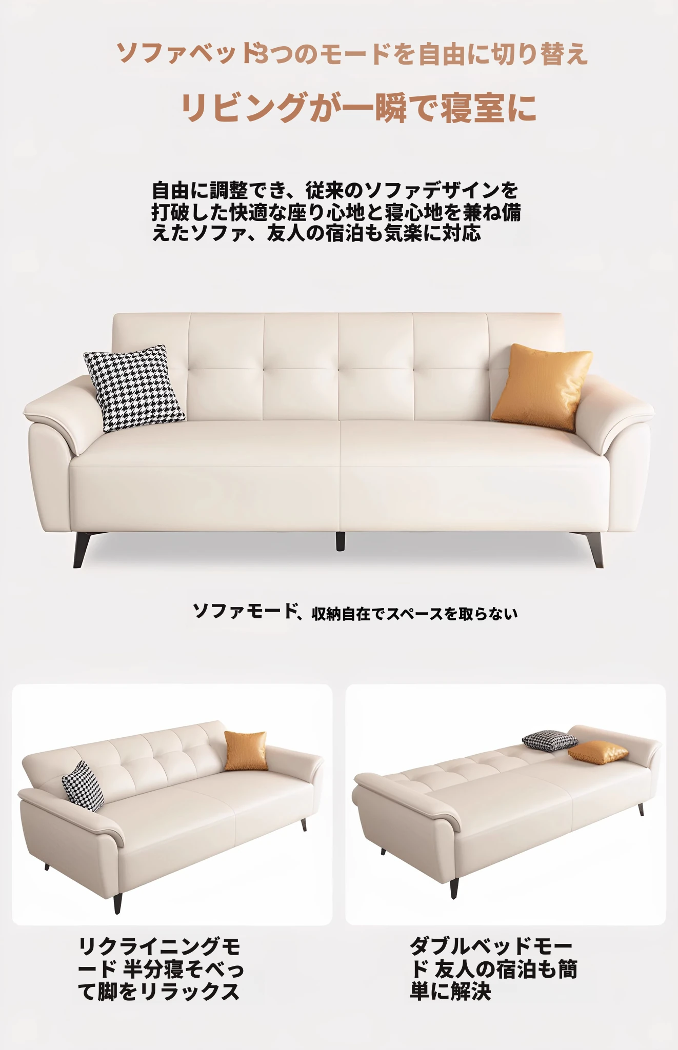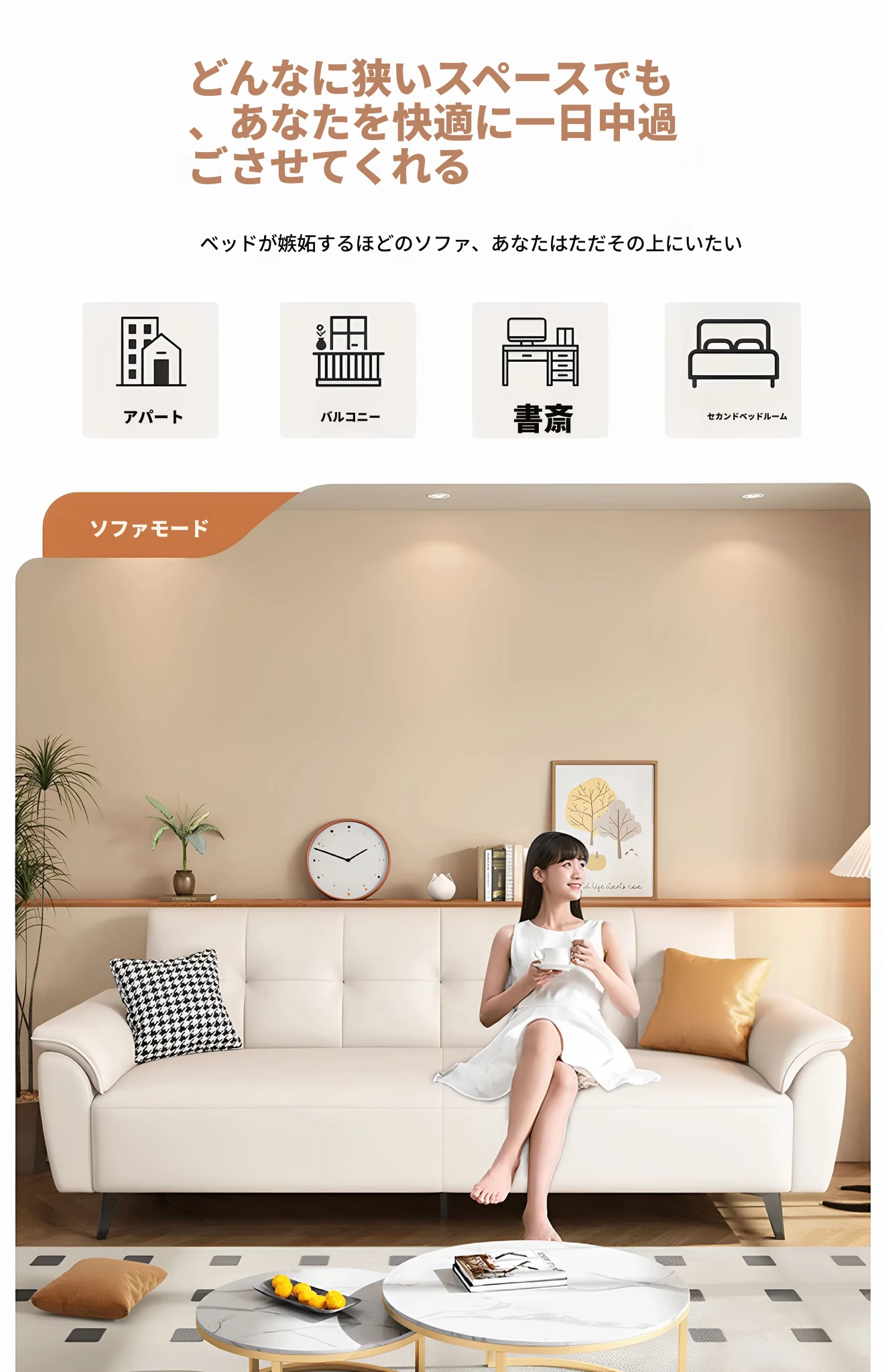 多機能コンパクトソファベッド|折りたたみ式二人用新型隠れ型ベッド|省スペースでおしゃれな2in1デザイン!お部屋を広く使える!