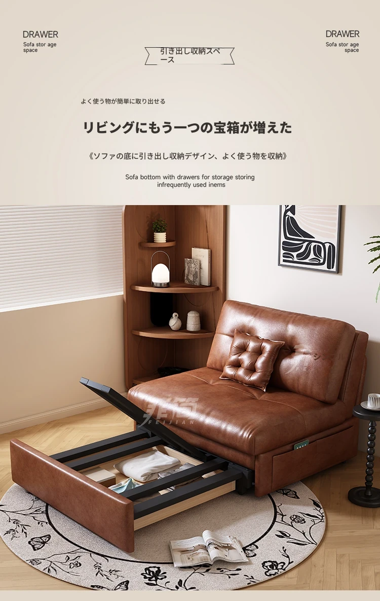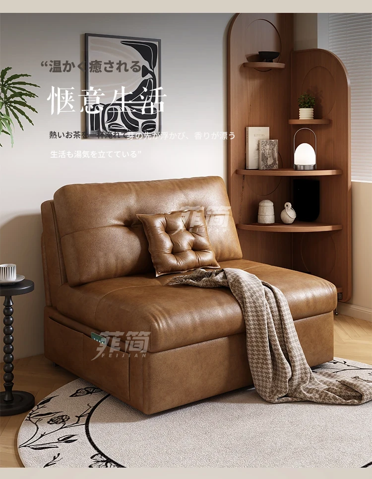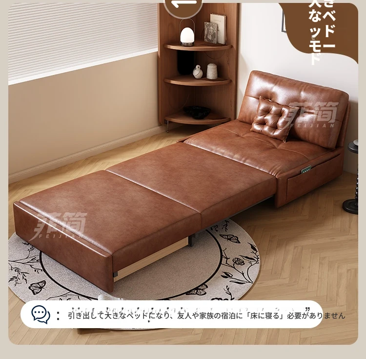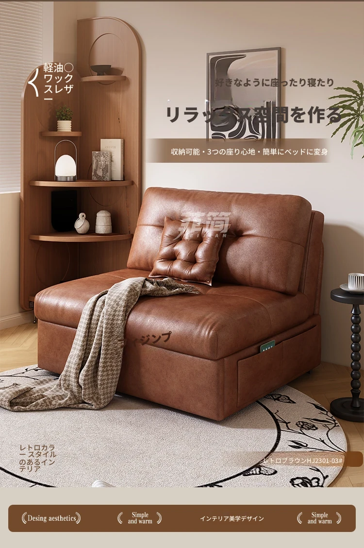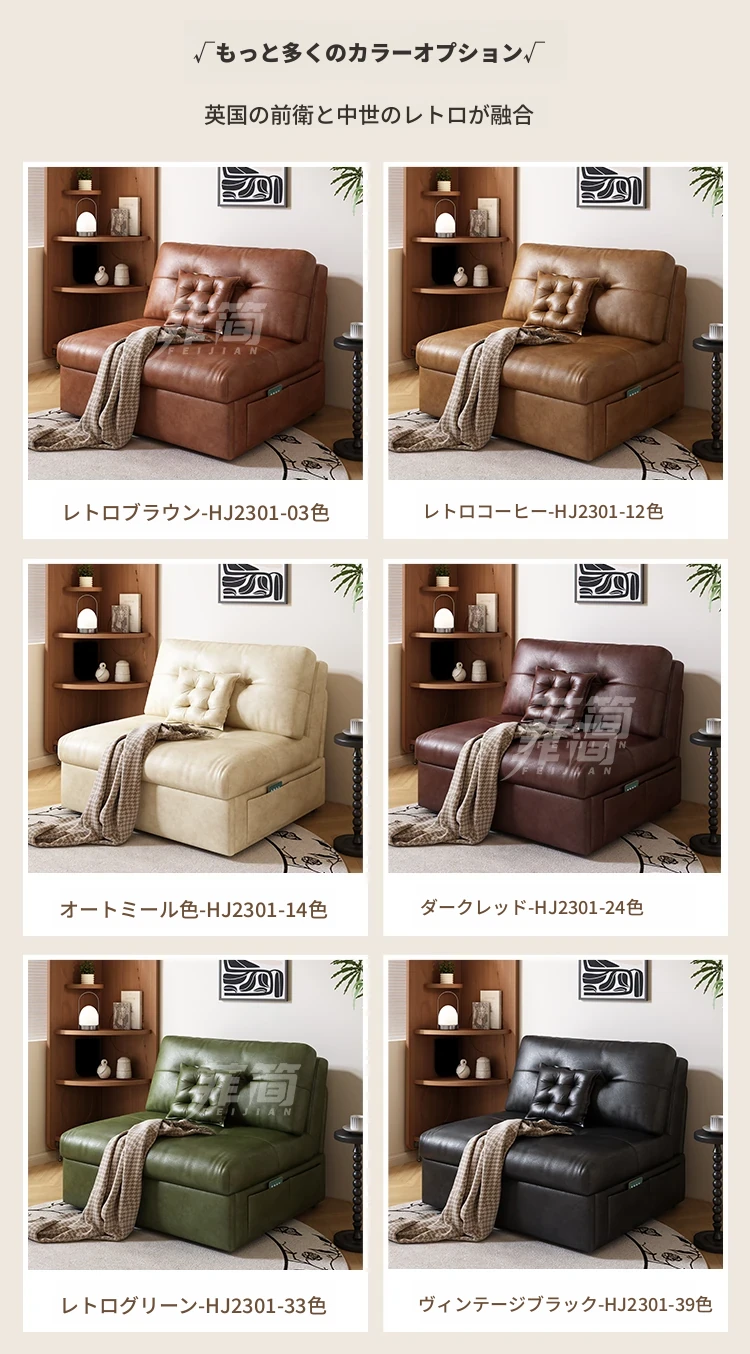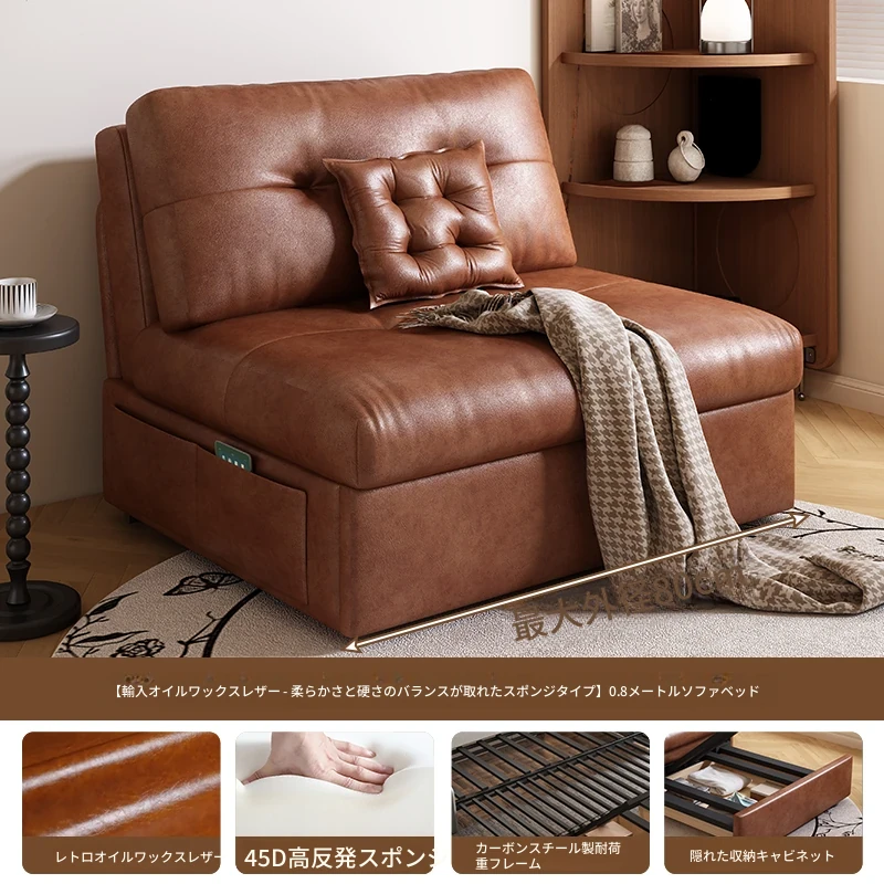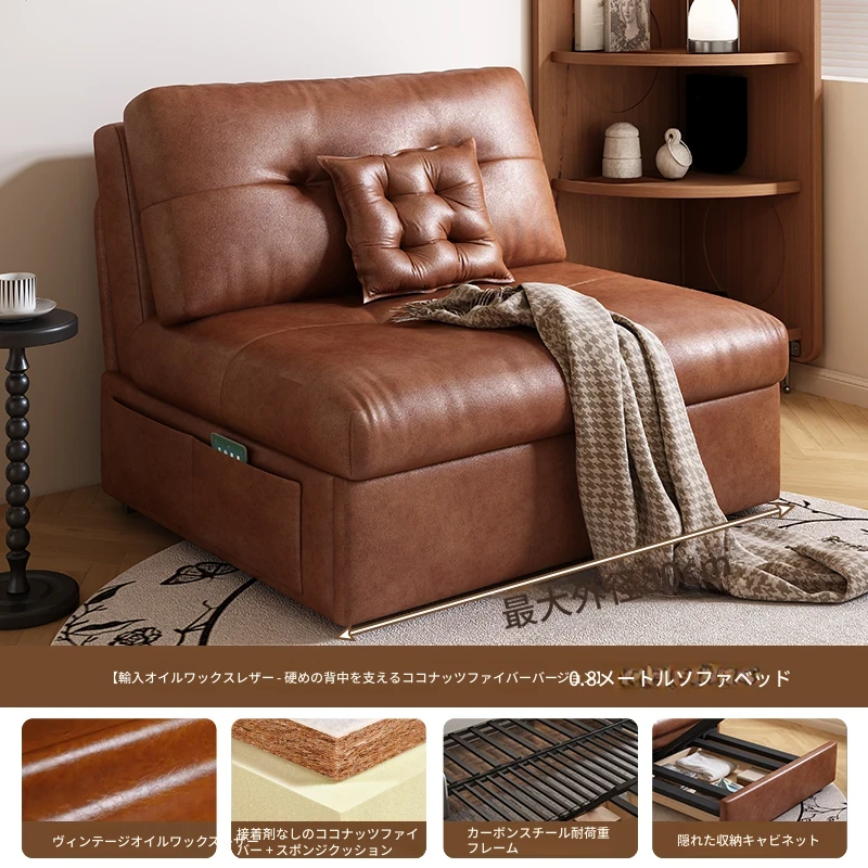 2025年新作!折りたたみ可能なレトロ風ソファベッド。ミニマリスト向けの一人用オイルワックスレザーソファベッド。ヴィンテージデザインでお部屋をおしゃれに演出し、快適な眠りを提供します!
