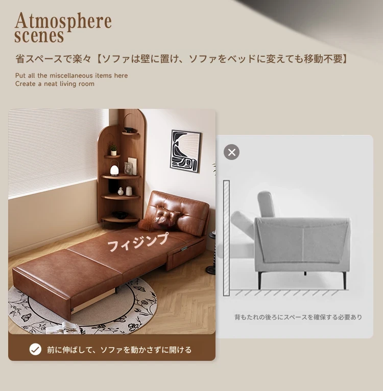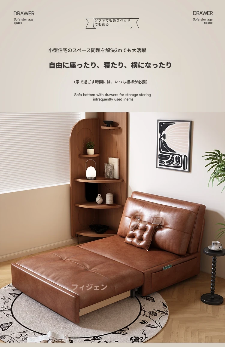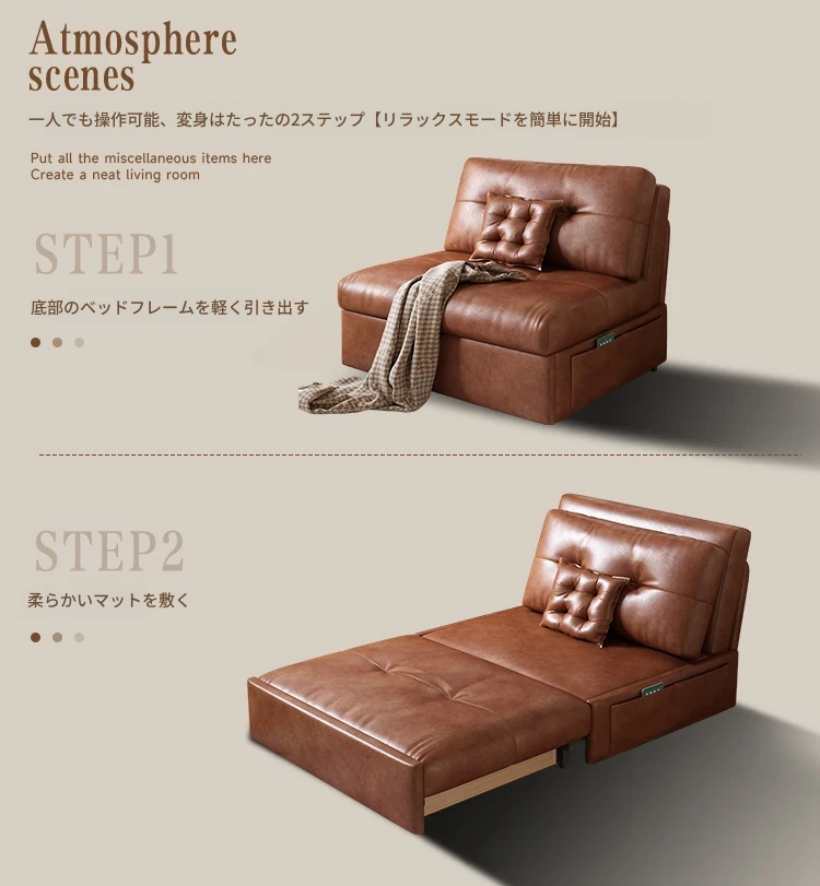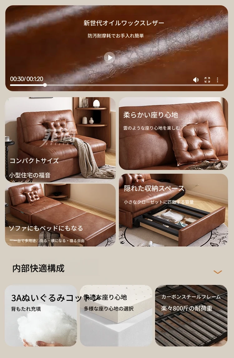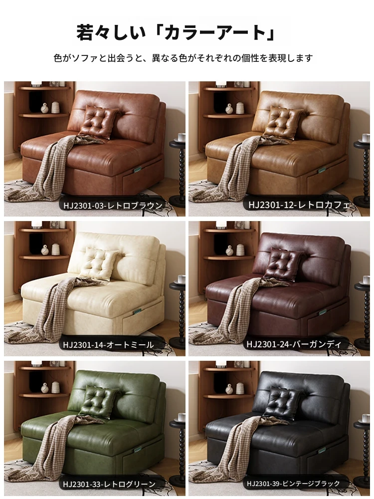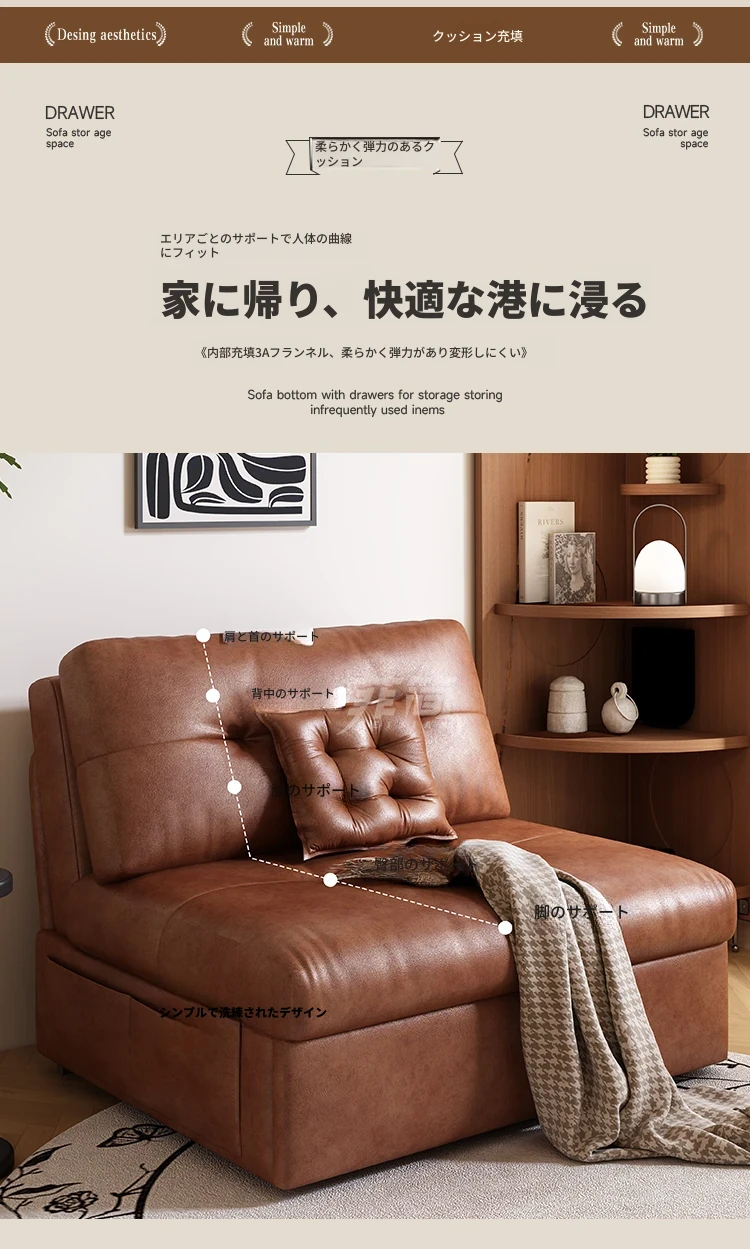 2025年新作!折りたたみ可能なレトロ風ソファベッド。ミニマリスト向けの一人用オイルワックスレザーソファベッド。ヴィンテージデザインでお部屋をおしゃれに演出し、快適な眠りを提供します!