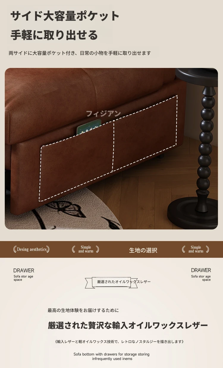 (脊椎を守る効果)1.0mソファベッド【環境保護ココナッツファイバータイプ|レトロオイルワックス本革】