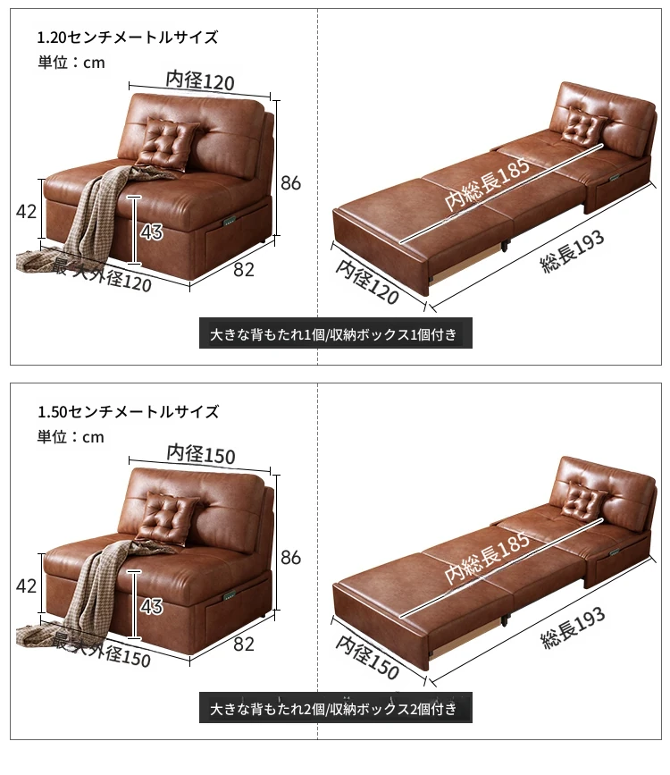 (クッション感)1.2mソファベッド【天然ラテックスタイプ|レトロオイルワックス本革】
