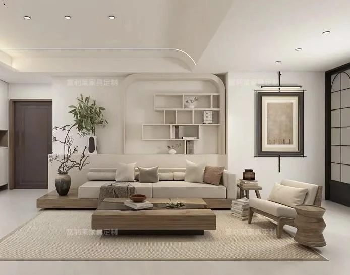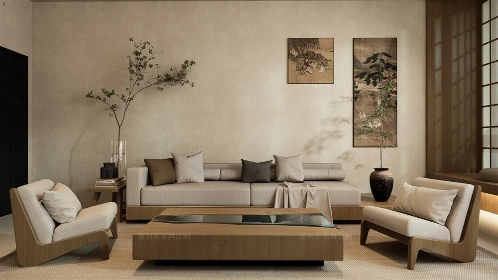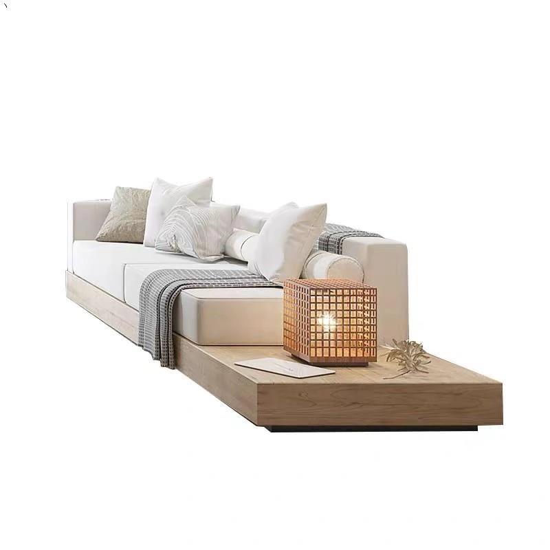侘寂スタイルの無垢材リビングフロアソファ - 和風民宿のモデルルームに最適な、宋氏美学の美しいカウンターベンチ。自然の温もりを感じるデザインで、心地よい空間を演出します。