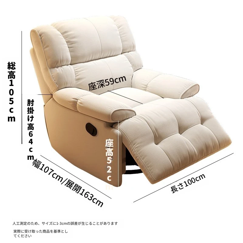 多機能シングルソファチェア - クリーム色、リクライニング&スリープ可能!客間や寝室に最適なロッキングチェア、まるで宇宙にいるかのような快適さを実現したリラックスソファ!