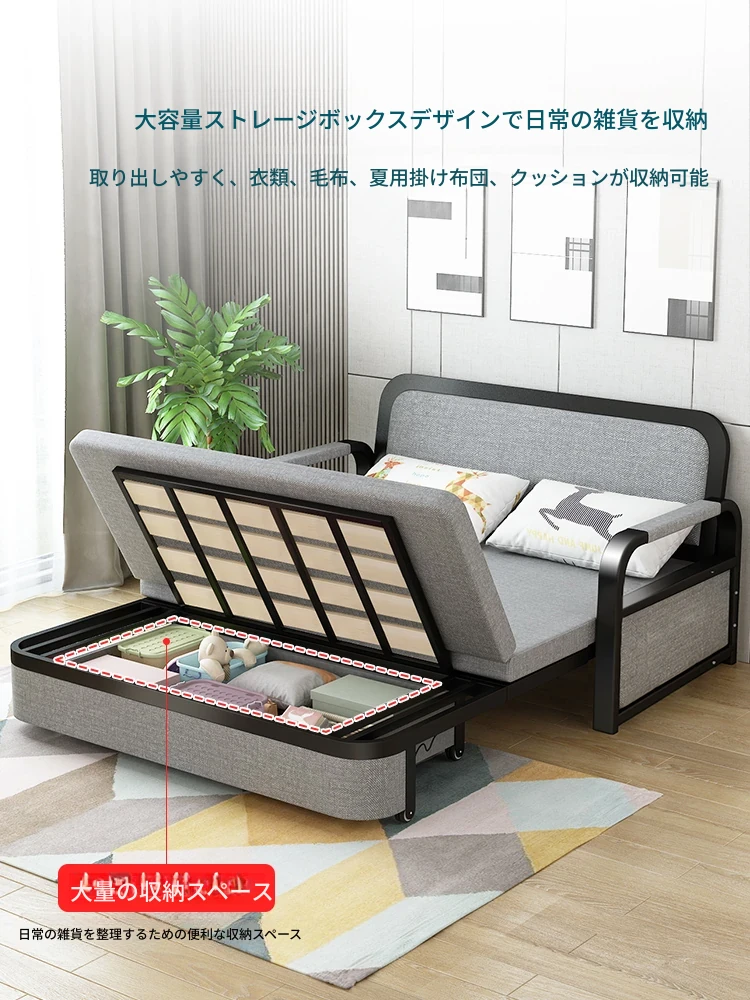 インフルエンサーおすすめ!2025年新作マルチファンクション折りたたみソファベッド - 小型リビングに最適な収納付き2人用ソファで、快適さとスタイルを両立。あなたの空間をおしゃれに彩ります!