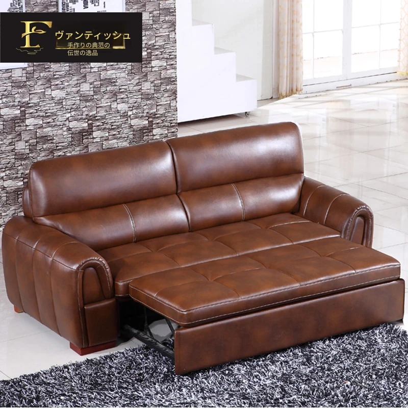 本革ソファベッド 折りたたみ式 リビング・アパート用 二人用 多機能 三人掛け 小型住宅に最適 フェイスタイプコーナー レザー仕上げ