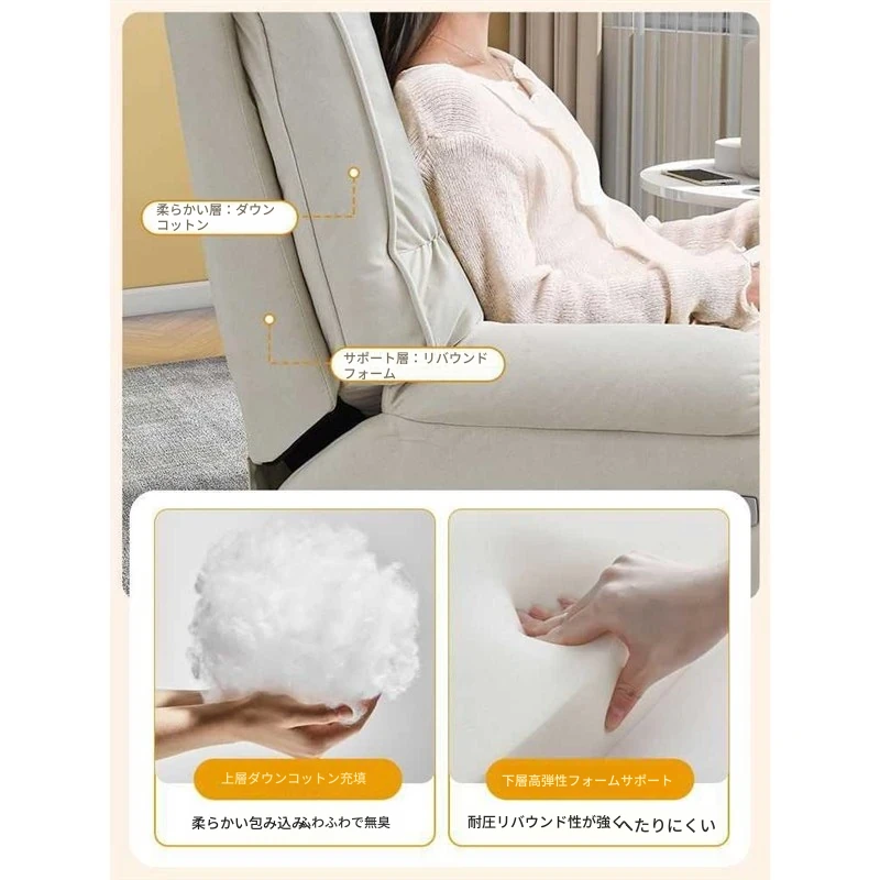 多機能一人用ソファチェア|クリーミーなデザインでリラックス!寝転びもできる快適なロッキングチェア|リビングや寝室に最適な宇宙型ラウンジソファ。あなたのくつろぎ空間を演出します!